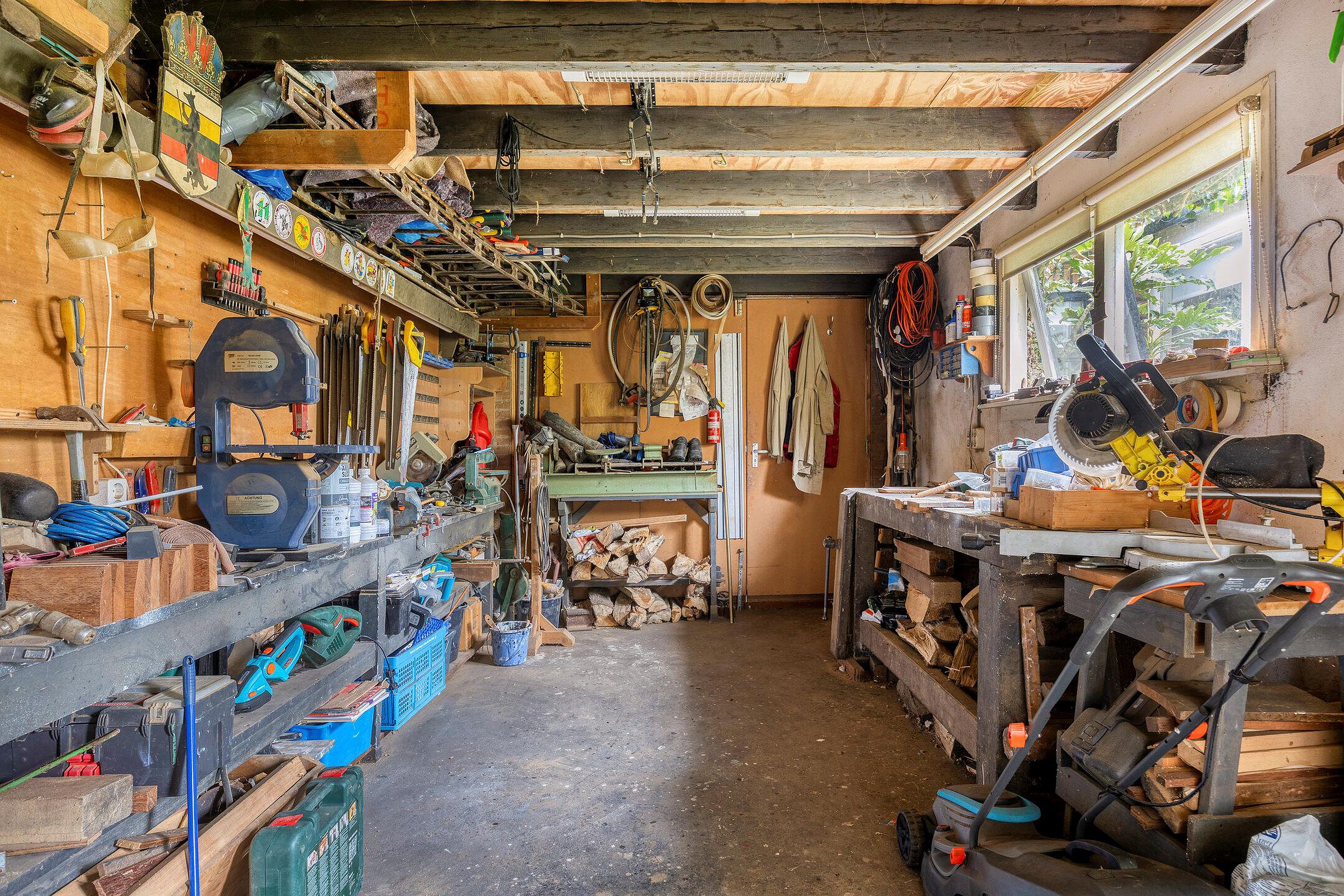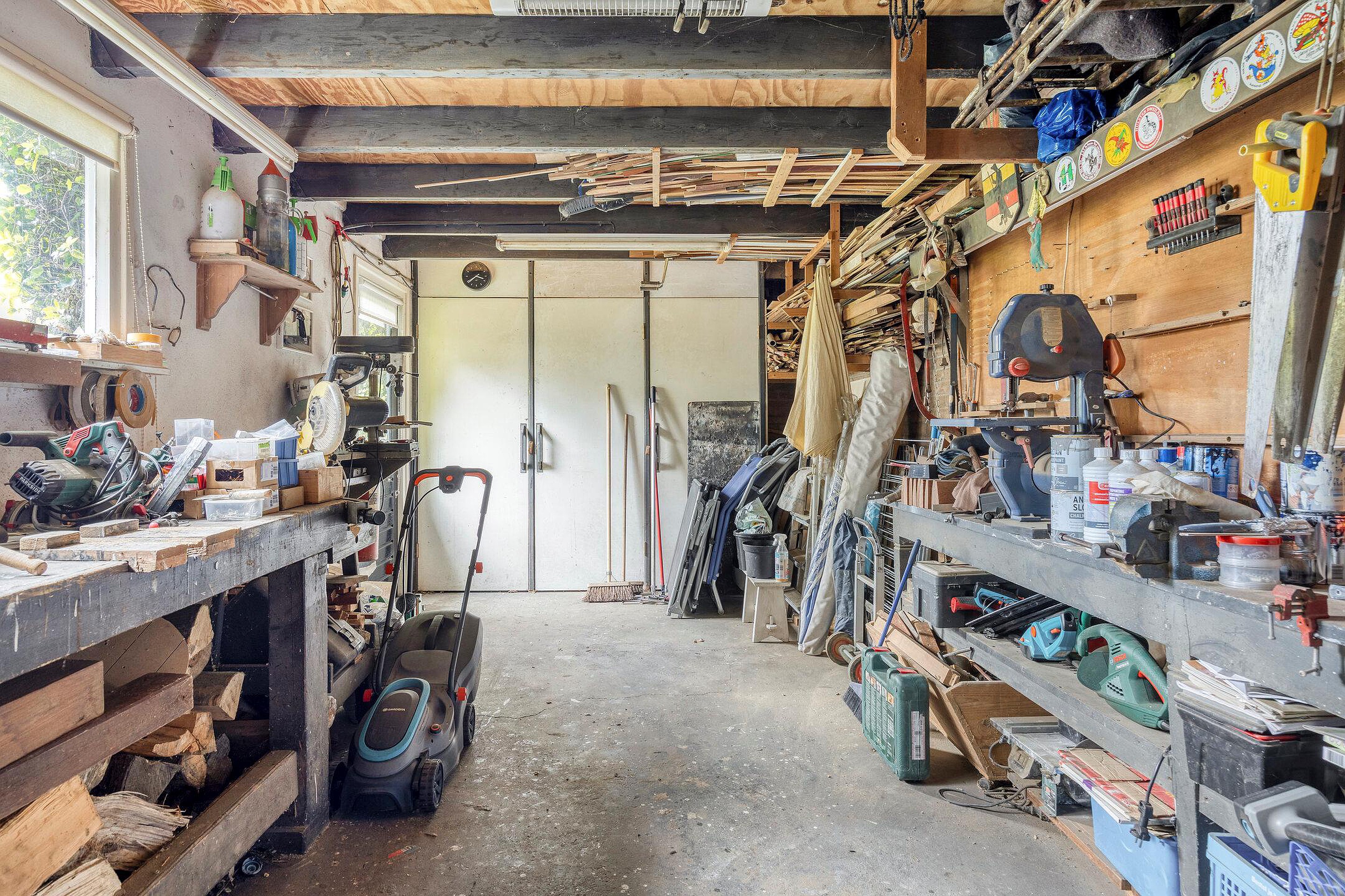 Het gemak van beneden stopt hier niet. Via de handige bijkeuken bereikt u de inpandige garage, die is verlengd met een royale hobbyruimte. Of u nu droomt van een eigen atelier, een werkplaats of een rustige kantoorplek aan huis, hier krijgt uw passie alle ruimte.