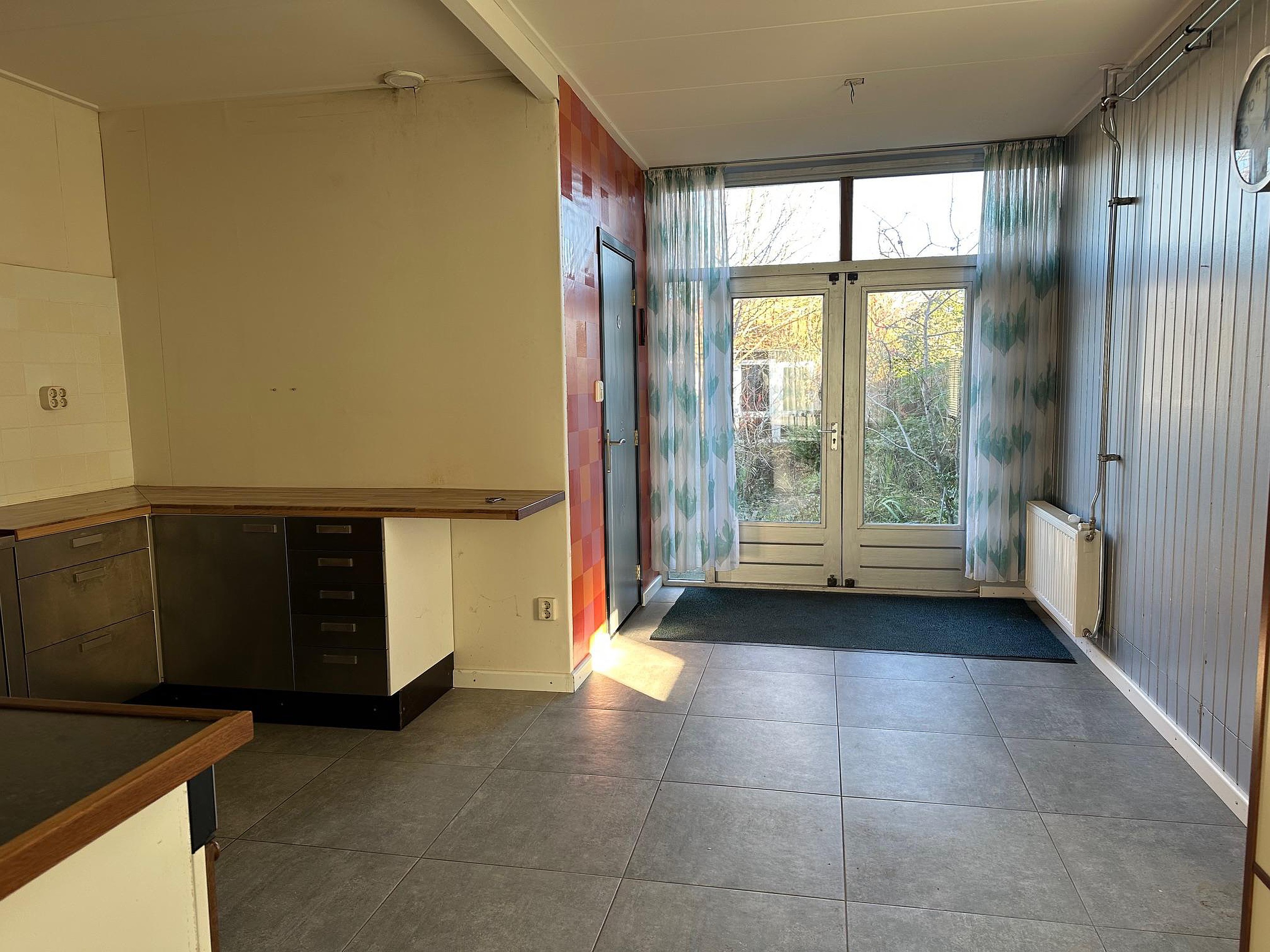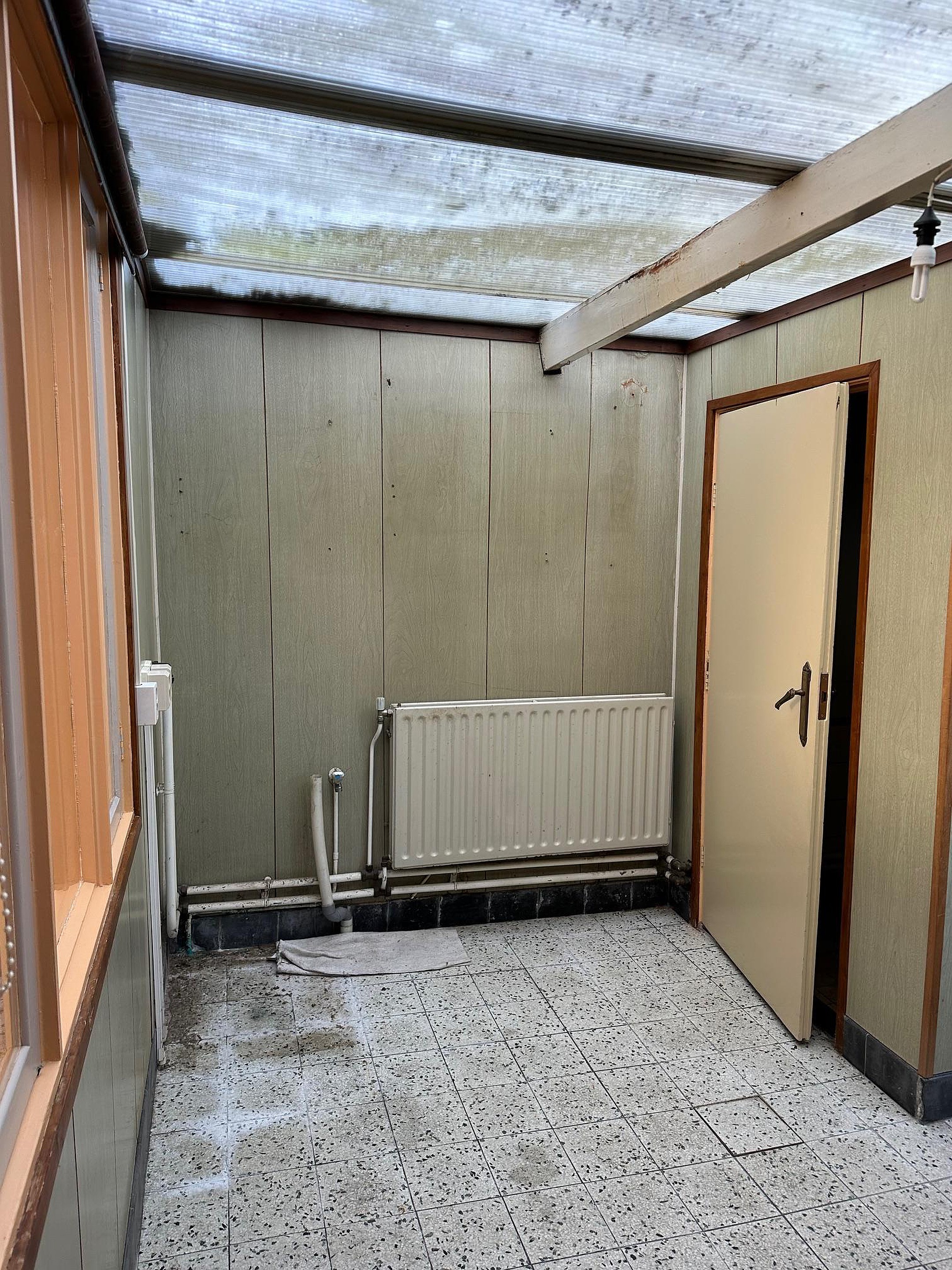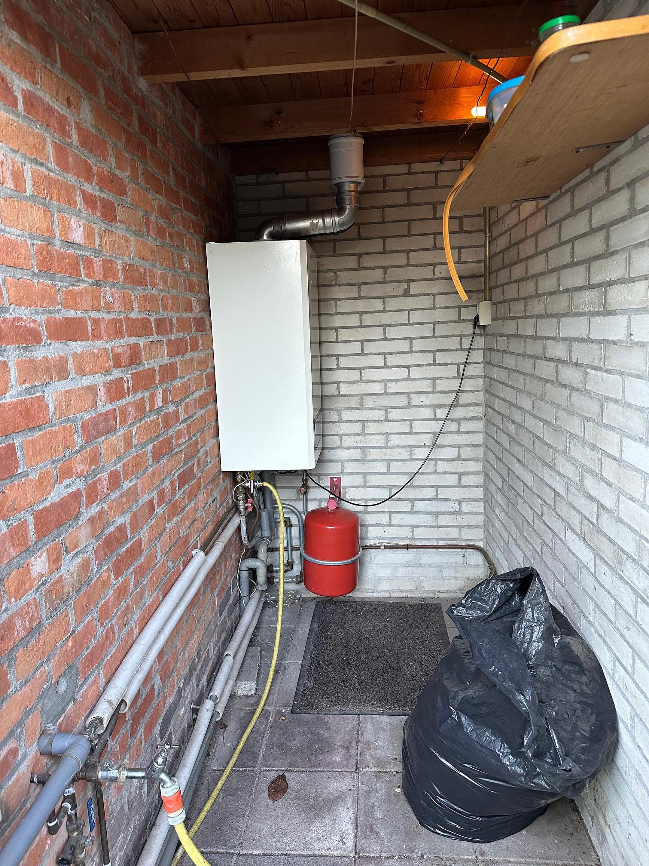Vanuit de bijkeuken is er een deur naar de tuin. Aan de achterzijde is een berging aangebouwd met de CV ketel (Nefit Smartline HR 2005).