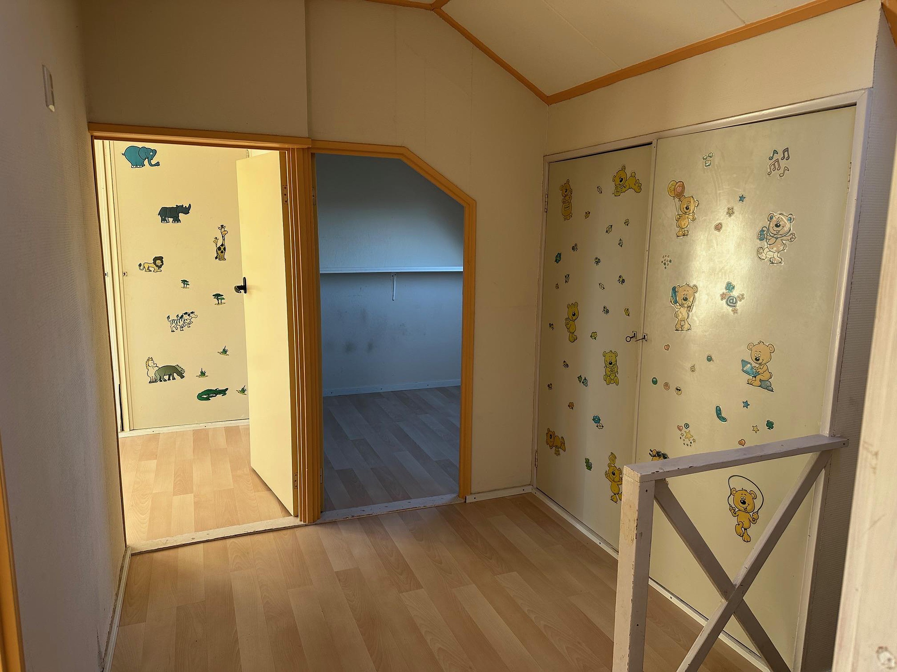 Via de linker woning is er een trap naar de verdieping. Hier is een overloop met inbouwkasten en er zijn 3 slaapkamers.