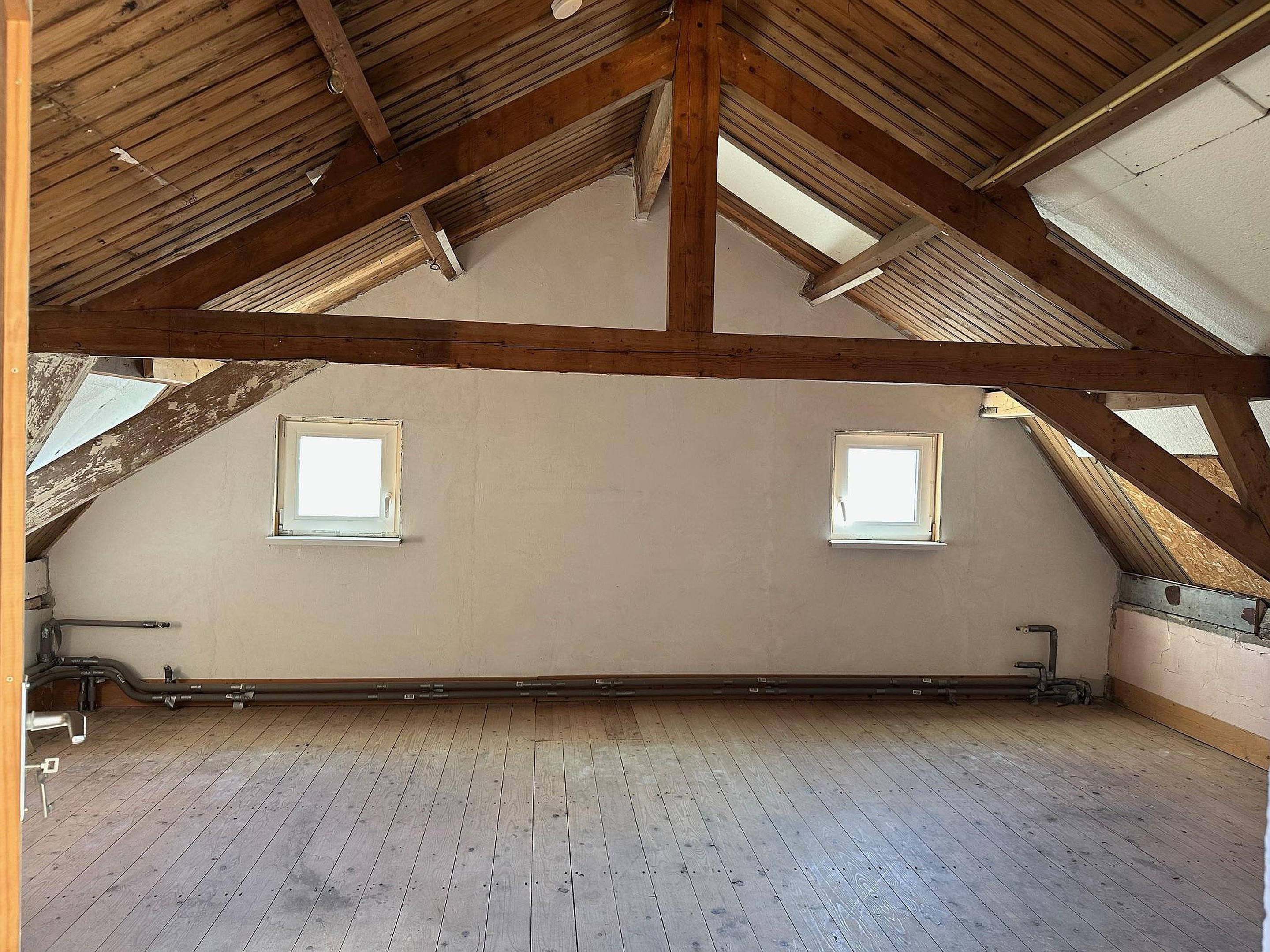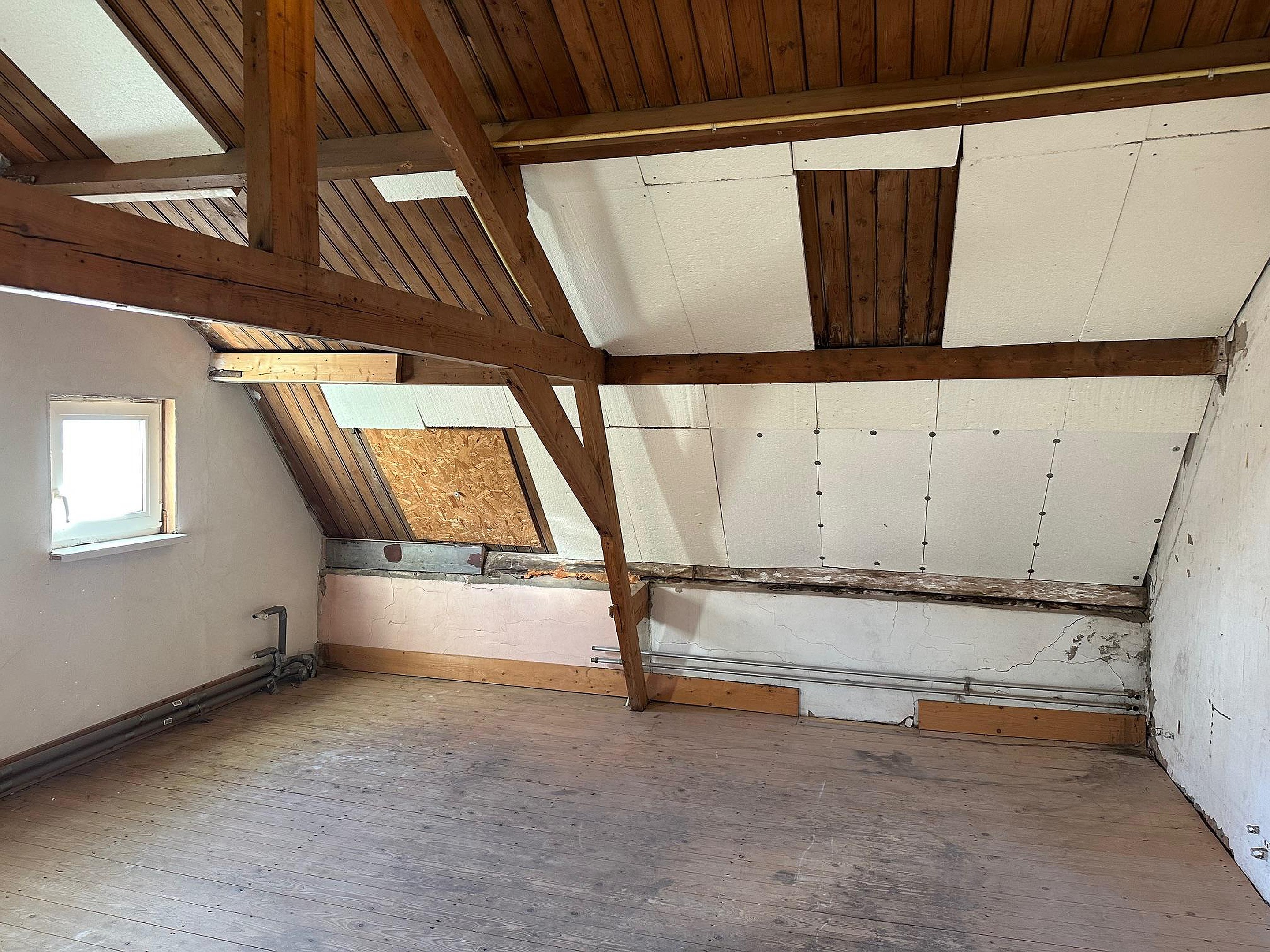 Boven de rechterwoning is een open ruimte, die nog kan worden geïsoleerd en omgebouwd tot woonruimte. Hier is een Intergas HR ketel (2024) geïnstalleerd. Ook zijn hier 2 nieuwe kunststof kozijnen geplaatst.