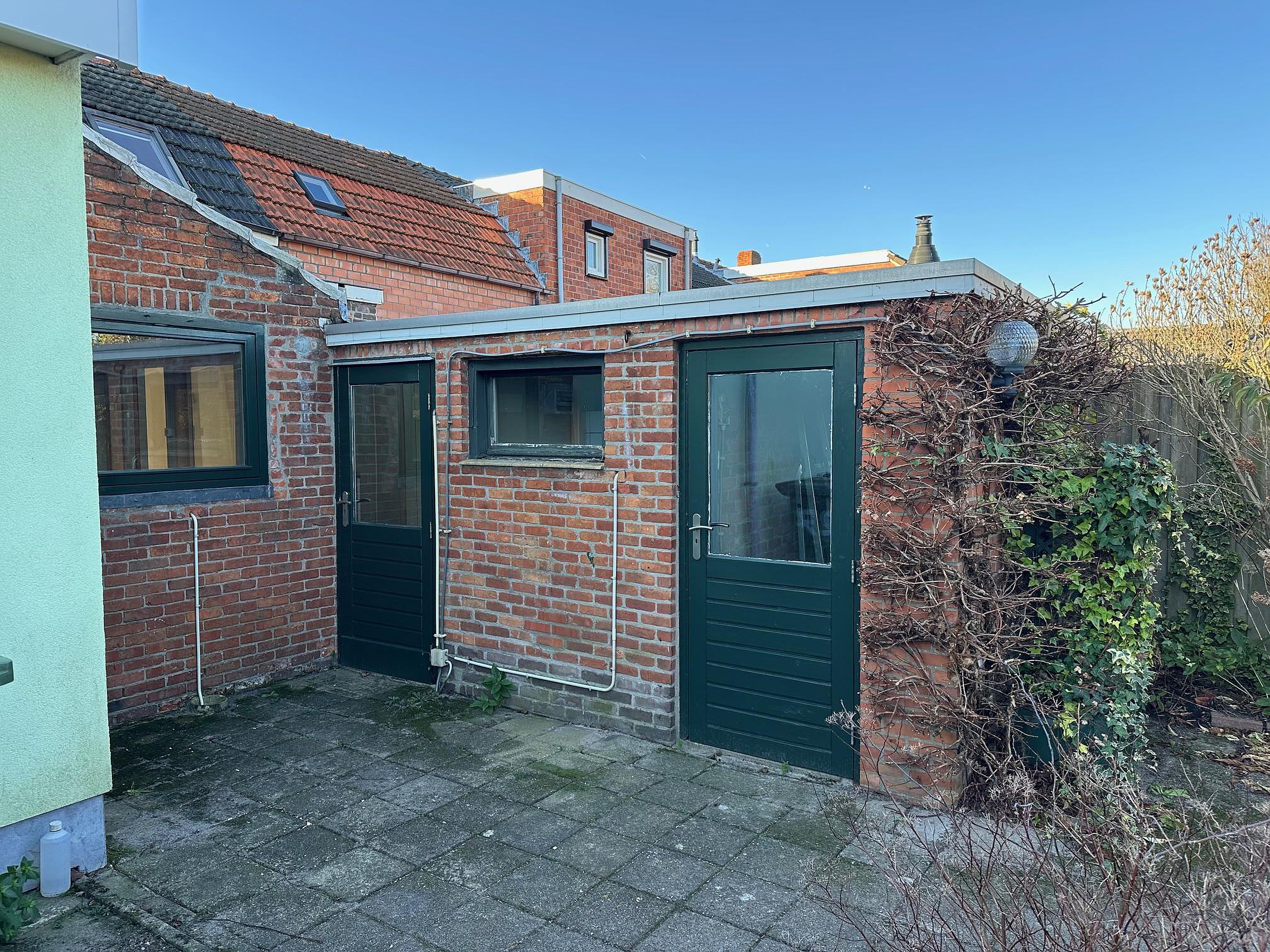 Aan de achterzijde is een dubbele tuindeur.