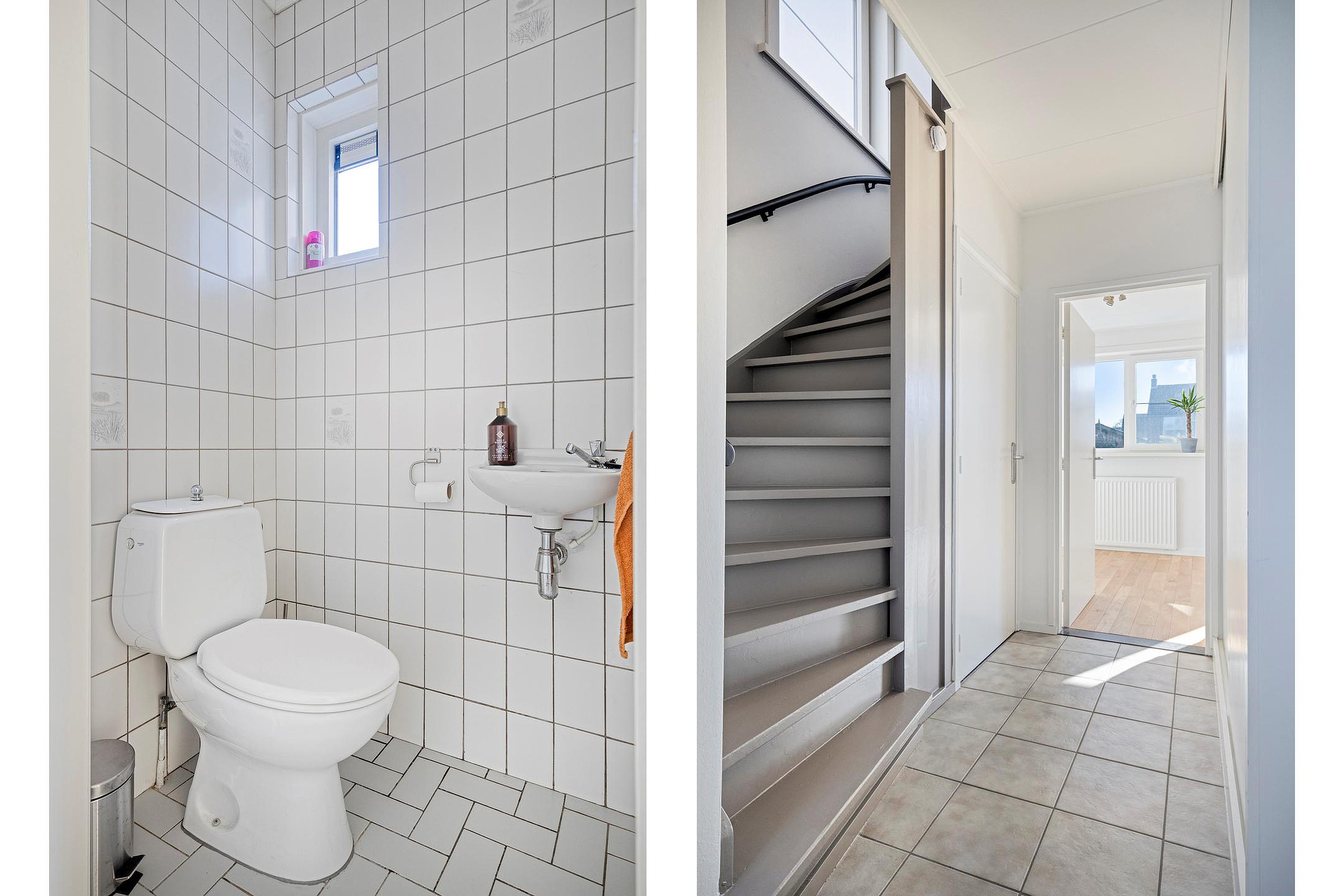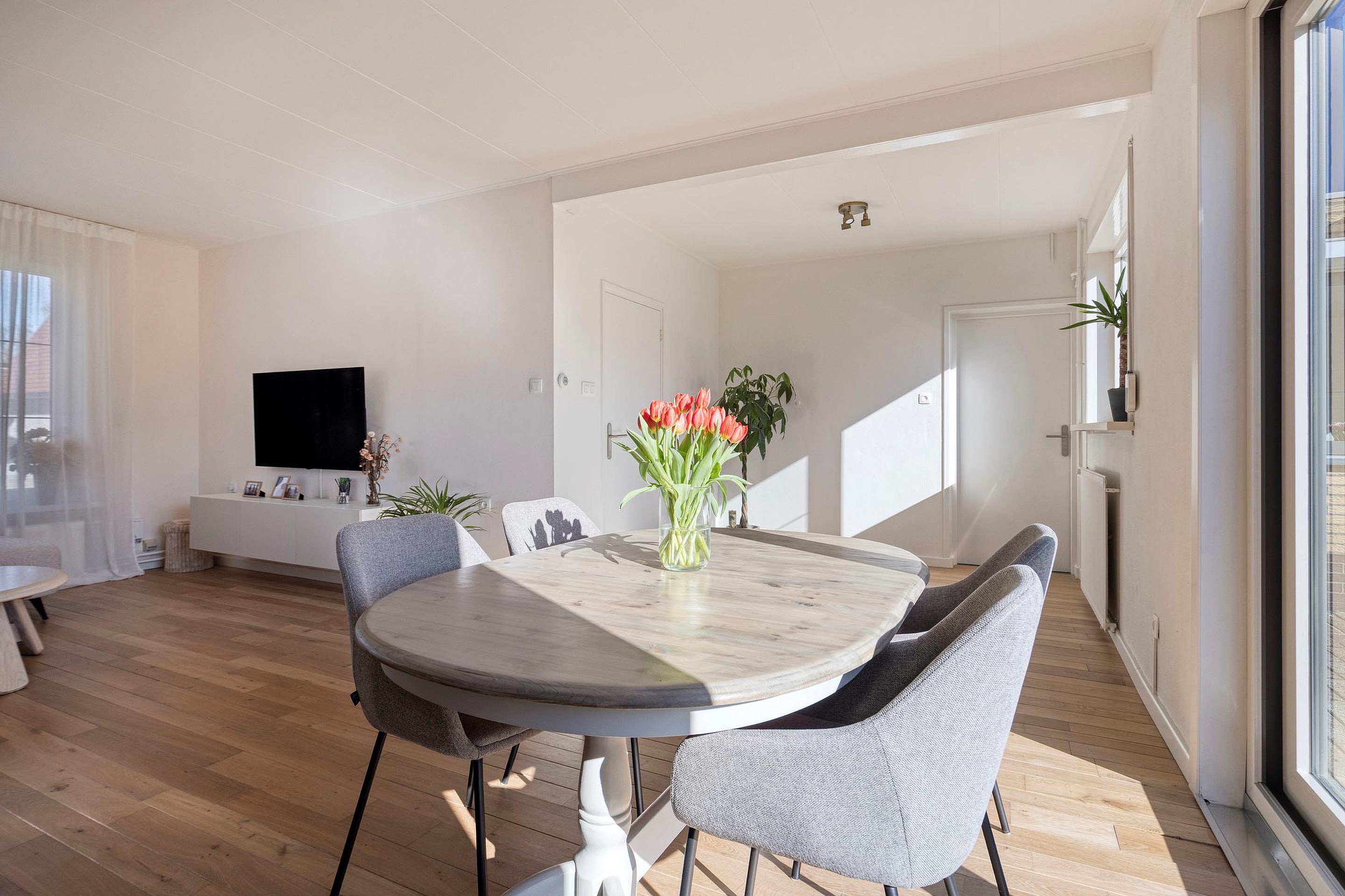 Bij binnenkomst wordt u verwelkomd in de hal met de trapopgang en een toilet. De royale L-vormige woonkamer is een ware eyecatcher; dankzij de grote raampartijen geniet u hier van een prachtige lichtinval. De parketvloer geeft de ruimte een warme uitstraling en via de schuifpui loopt u zo het zonnige terras op.