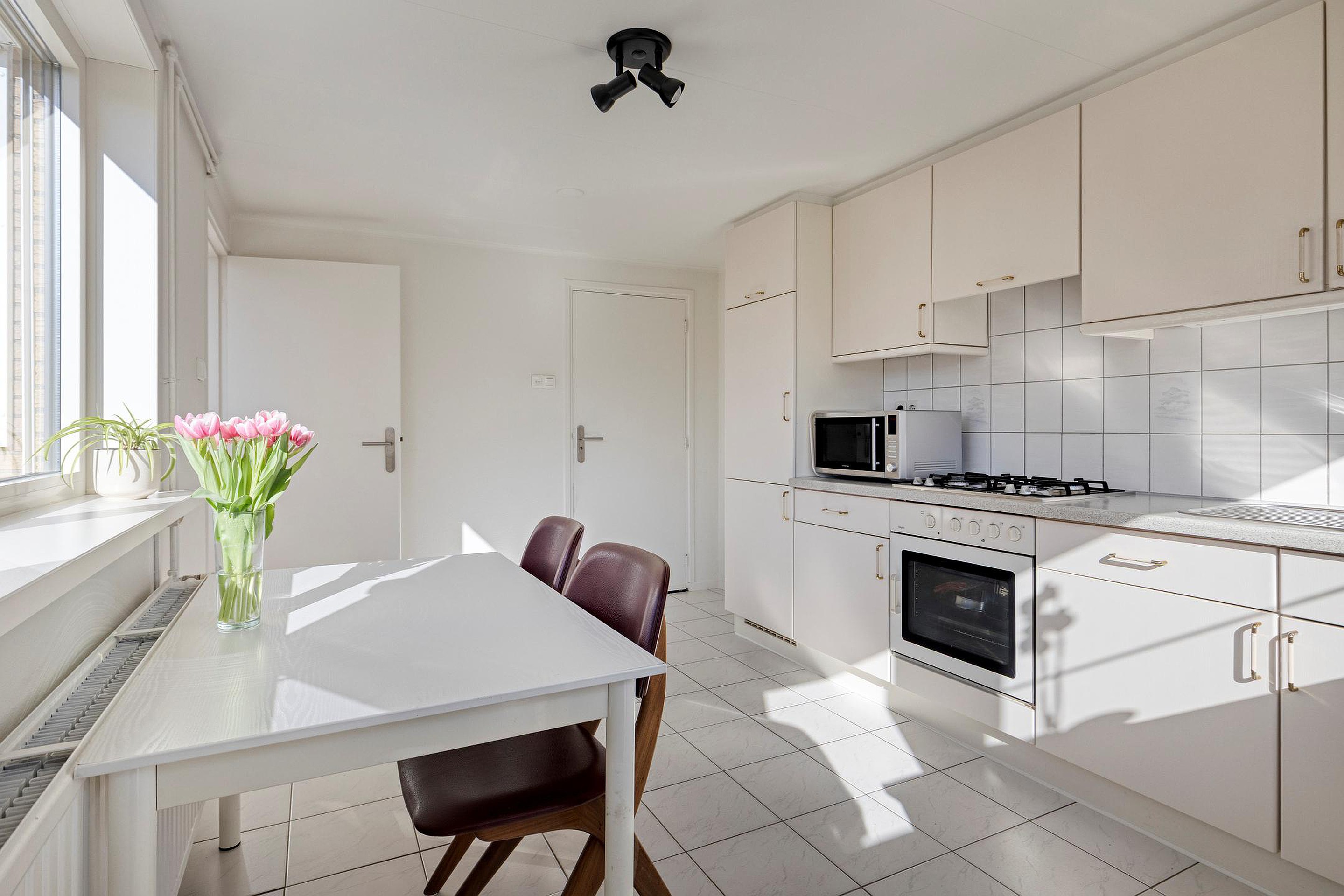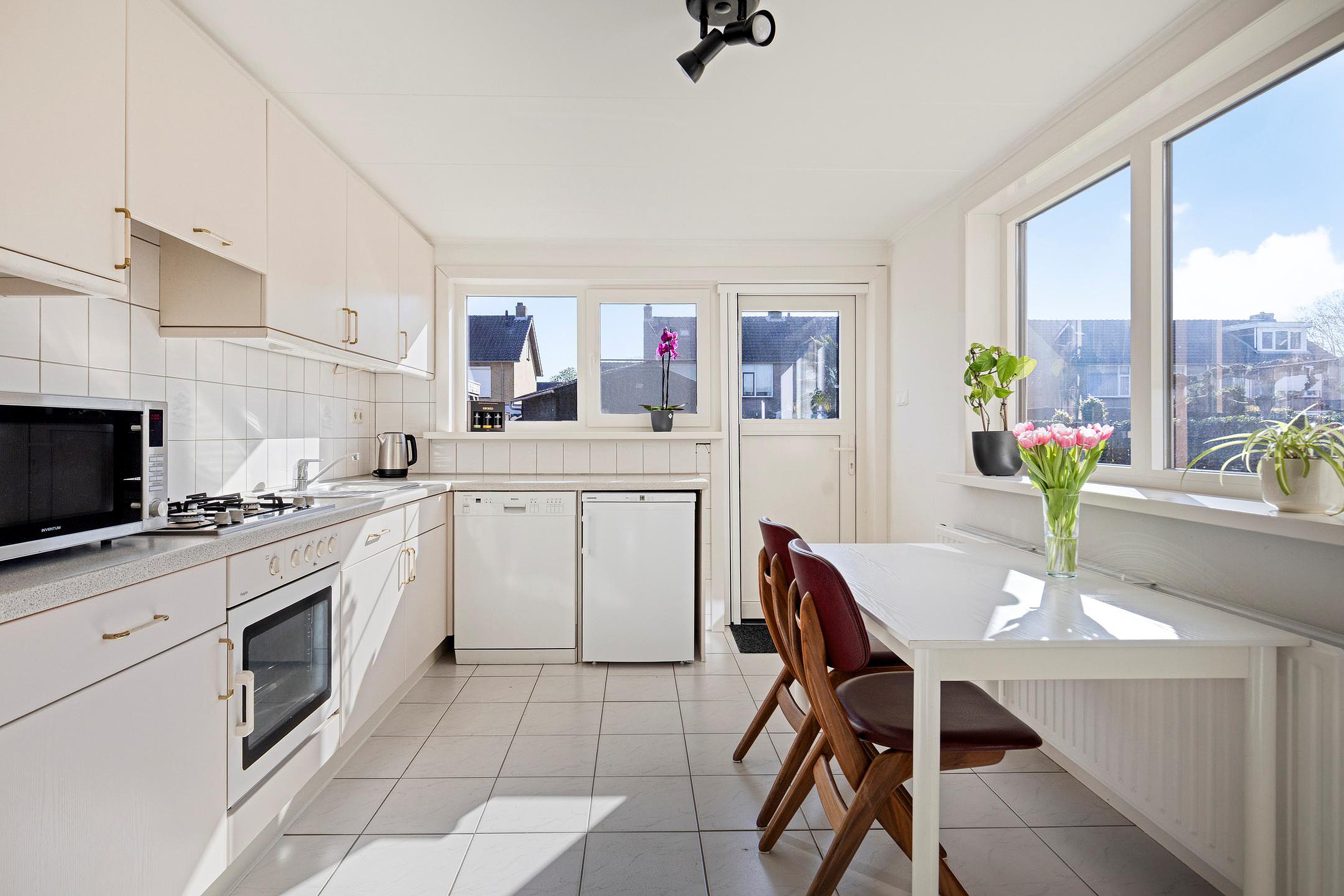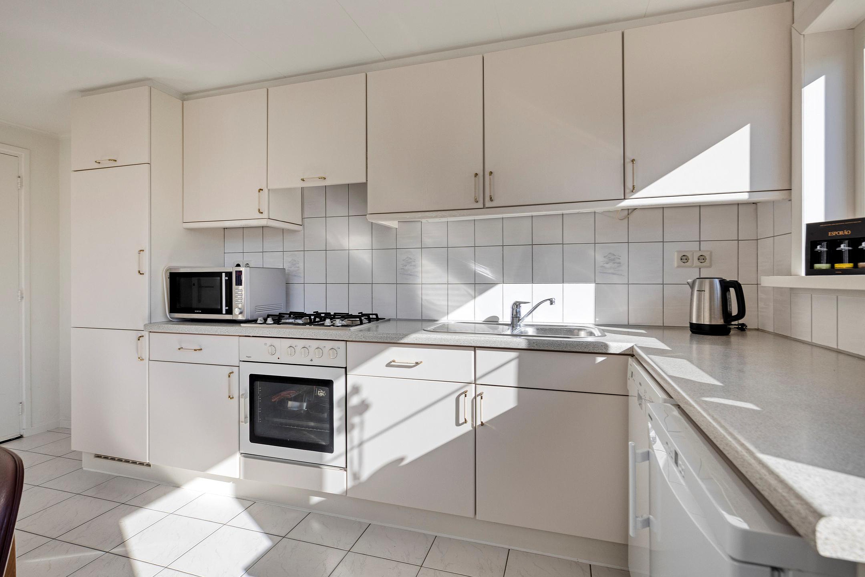 Grenzend aan de woonkamer bevindt zich de dichte keuken. De praktische indeling wordt gecompleteerd door de inpandige garage waar u de aansluitingen voor de wasmachine vindt.