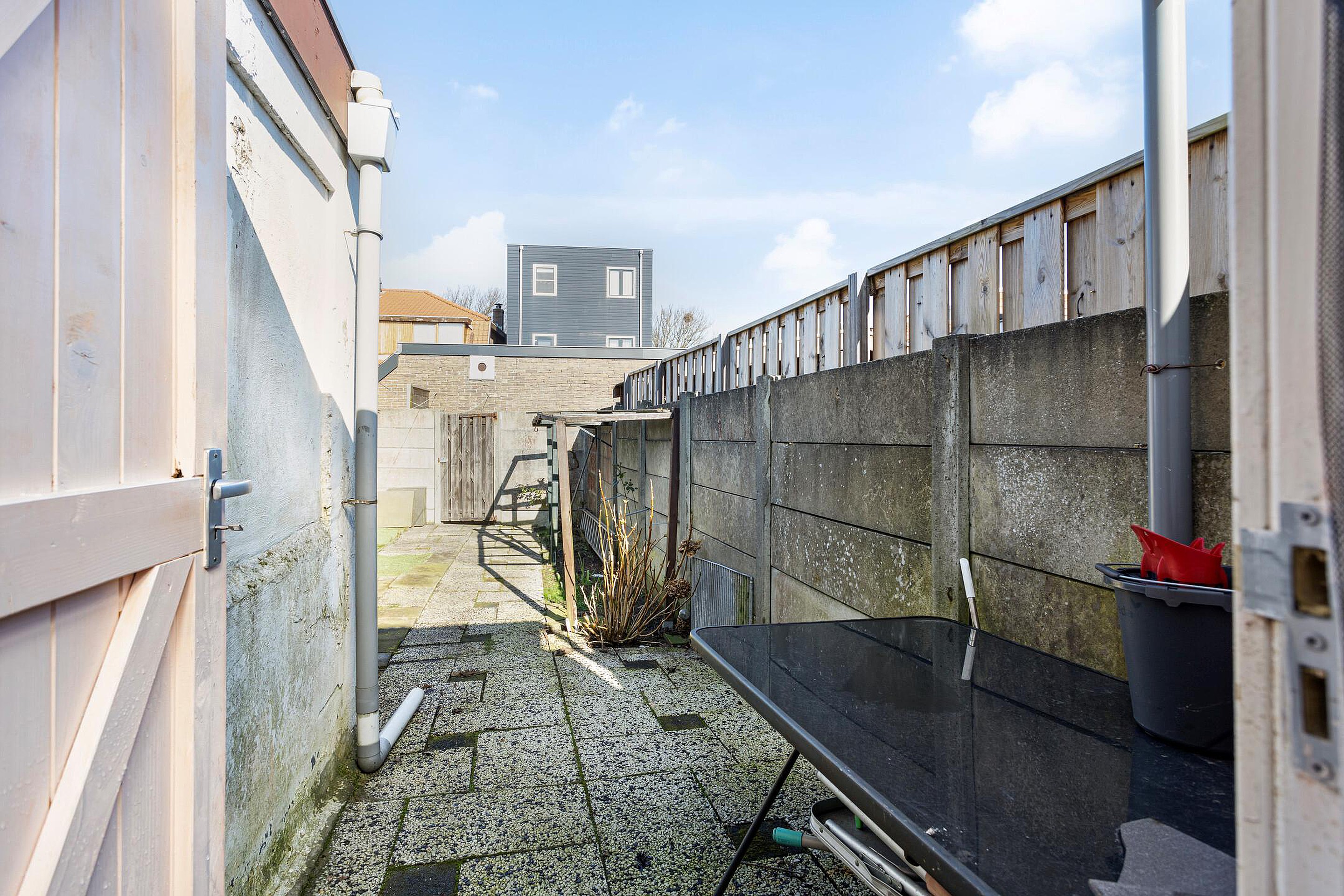 De achtertuin is diep en biedt volop mogelijkheden om naar eigen wens in te richten. Er is een berging aanwezig voor opslag en een achterom voor gemakkelijke toegang tot de achtergelegen steeg. De tuin is deels betegeld en biedt voldoende ruimte om een fijne buitenplek te creëren.