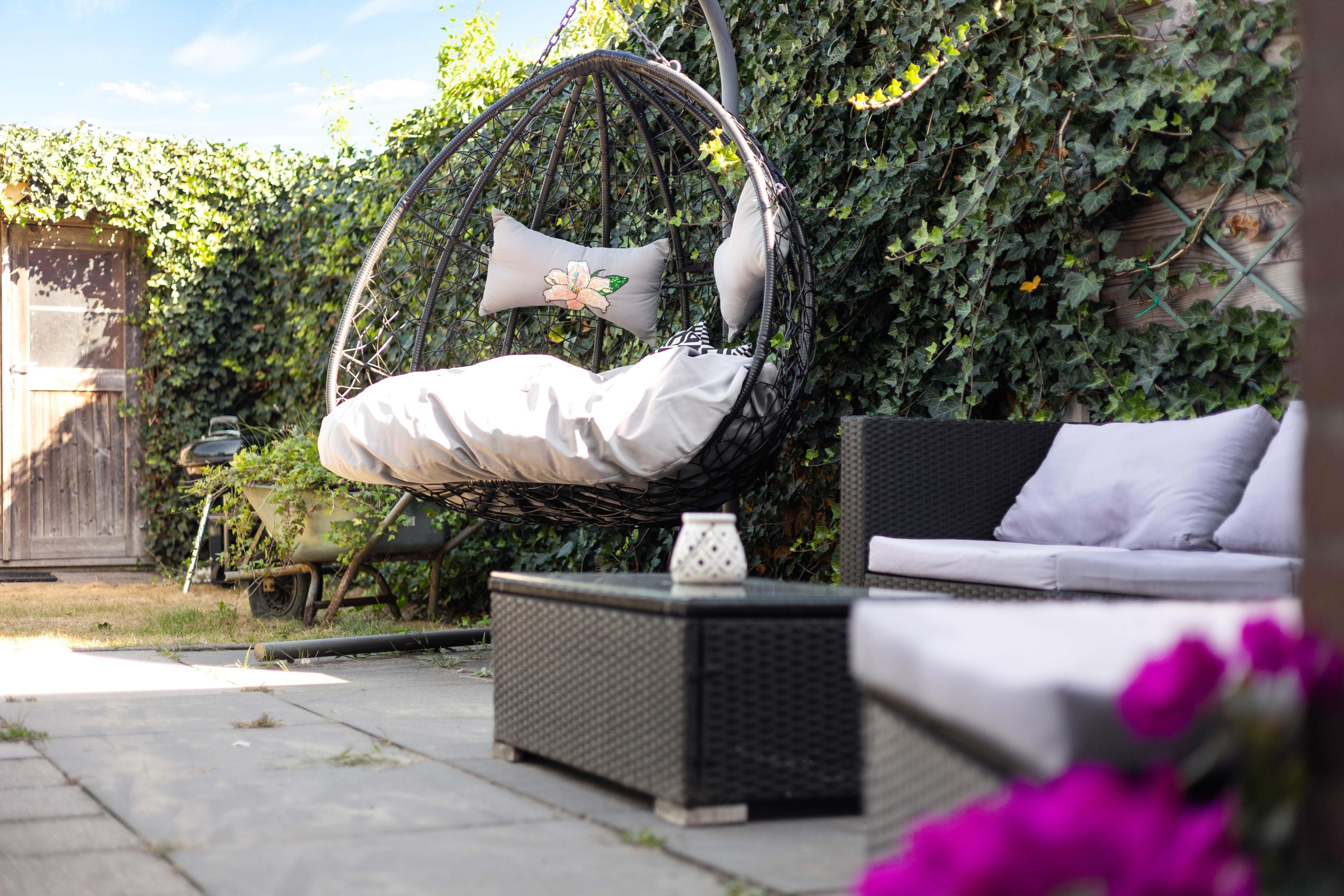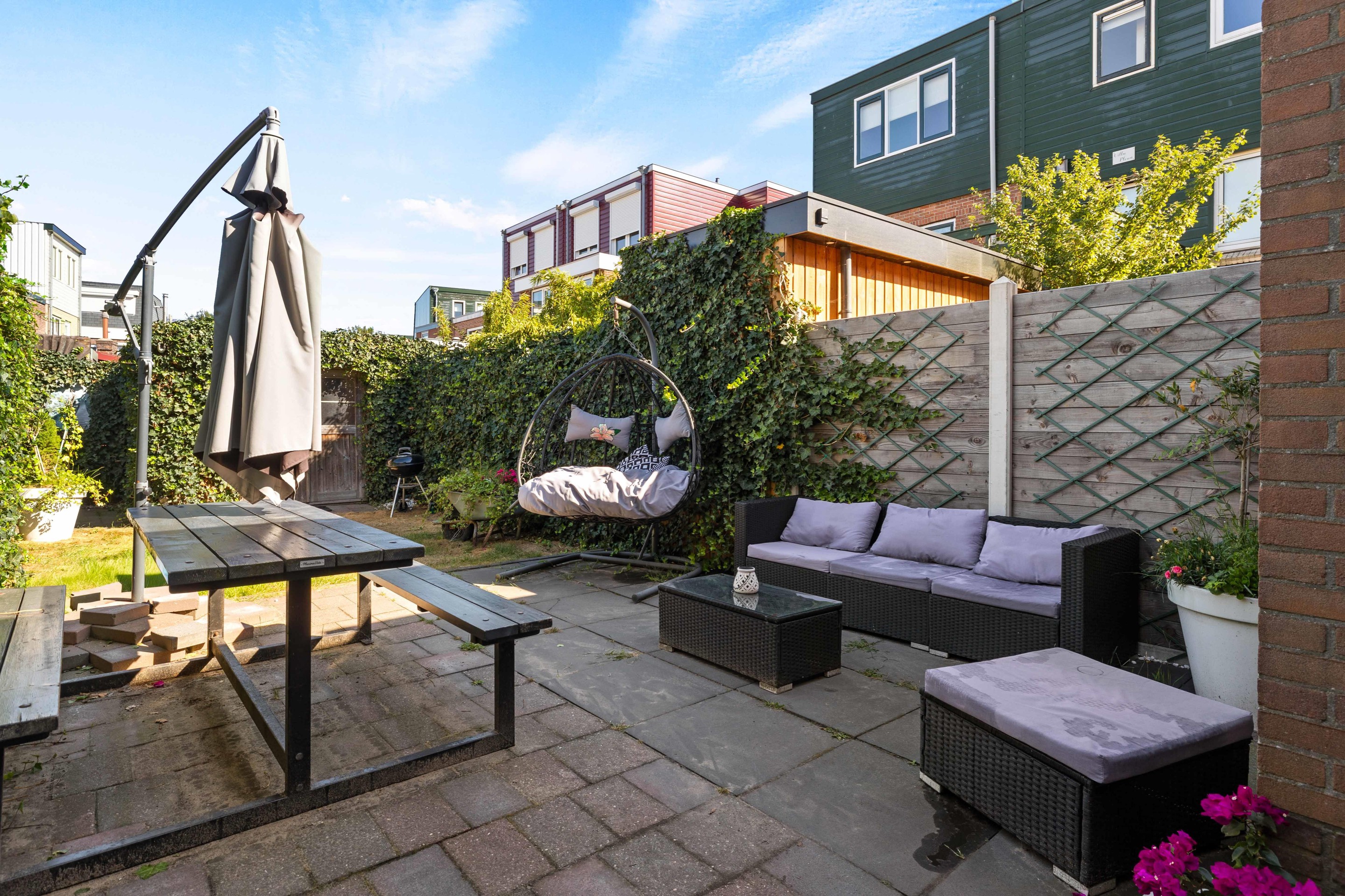 De achtertuin is betegeld en voorzien van een zitgedeelte en groenborders. Achter in de tuin staat een berging die geschikt is voor extra opslag.