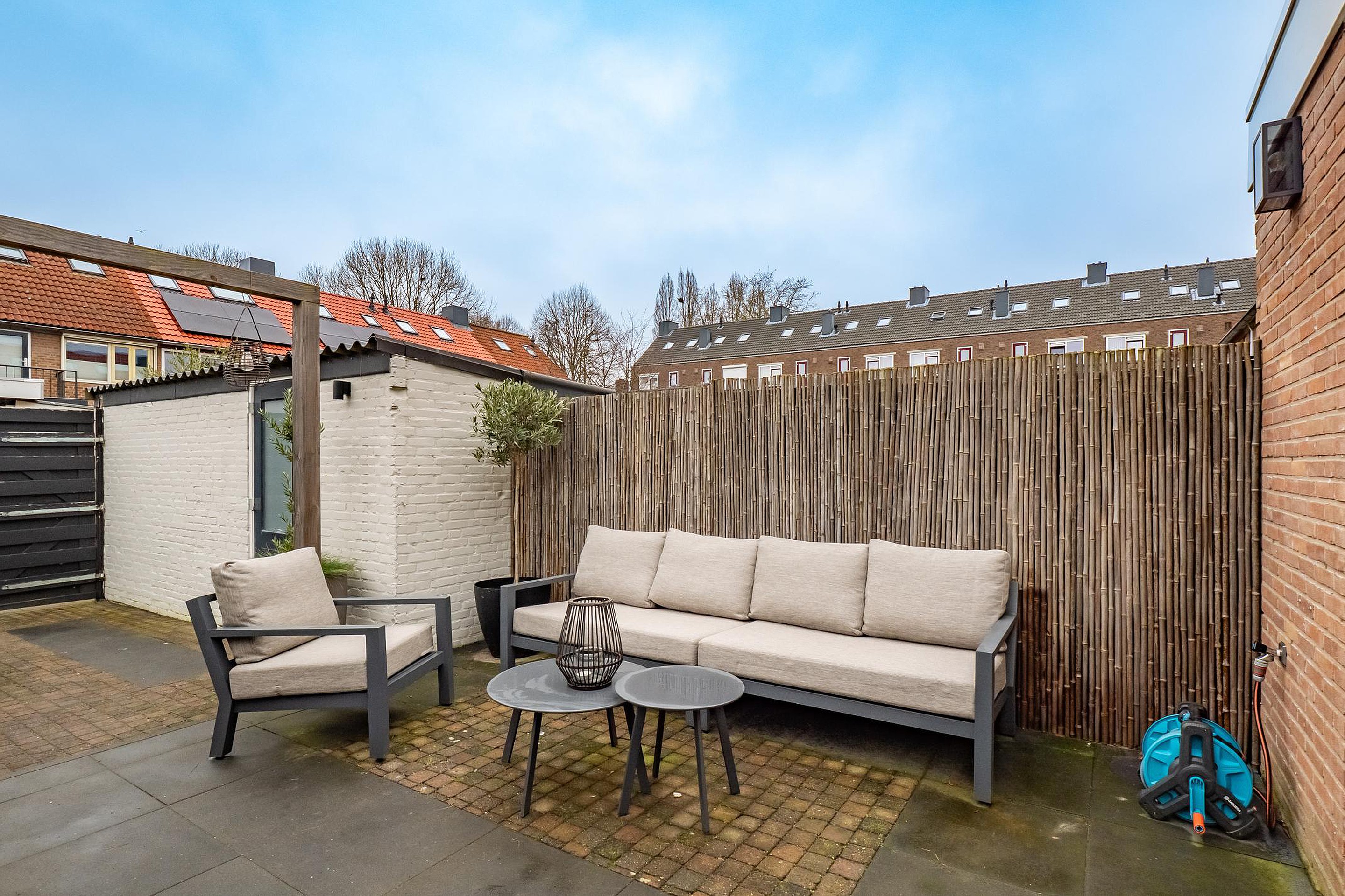 De tuin is royaal genoeg voor een loungeset, een speelplek of zelfs een kleine moestuin. Je voelt de warmte van de zon op je huid, hoort het zachte geroezemoes van de buurt en merkt hoe fijn het is om een eigen buitenplek te hebben aan de rand van de stad.