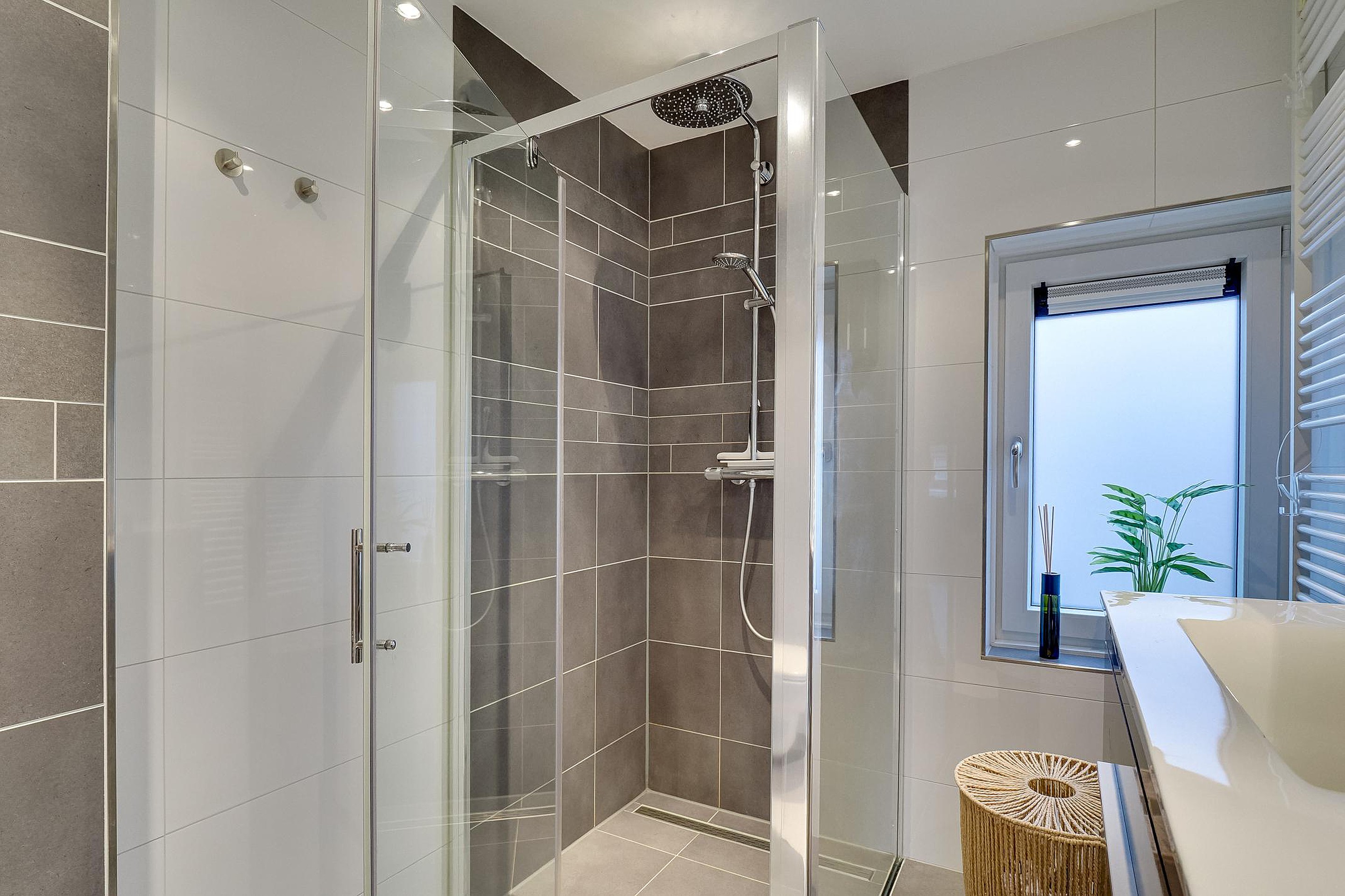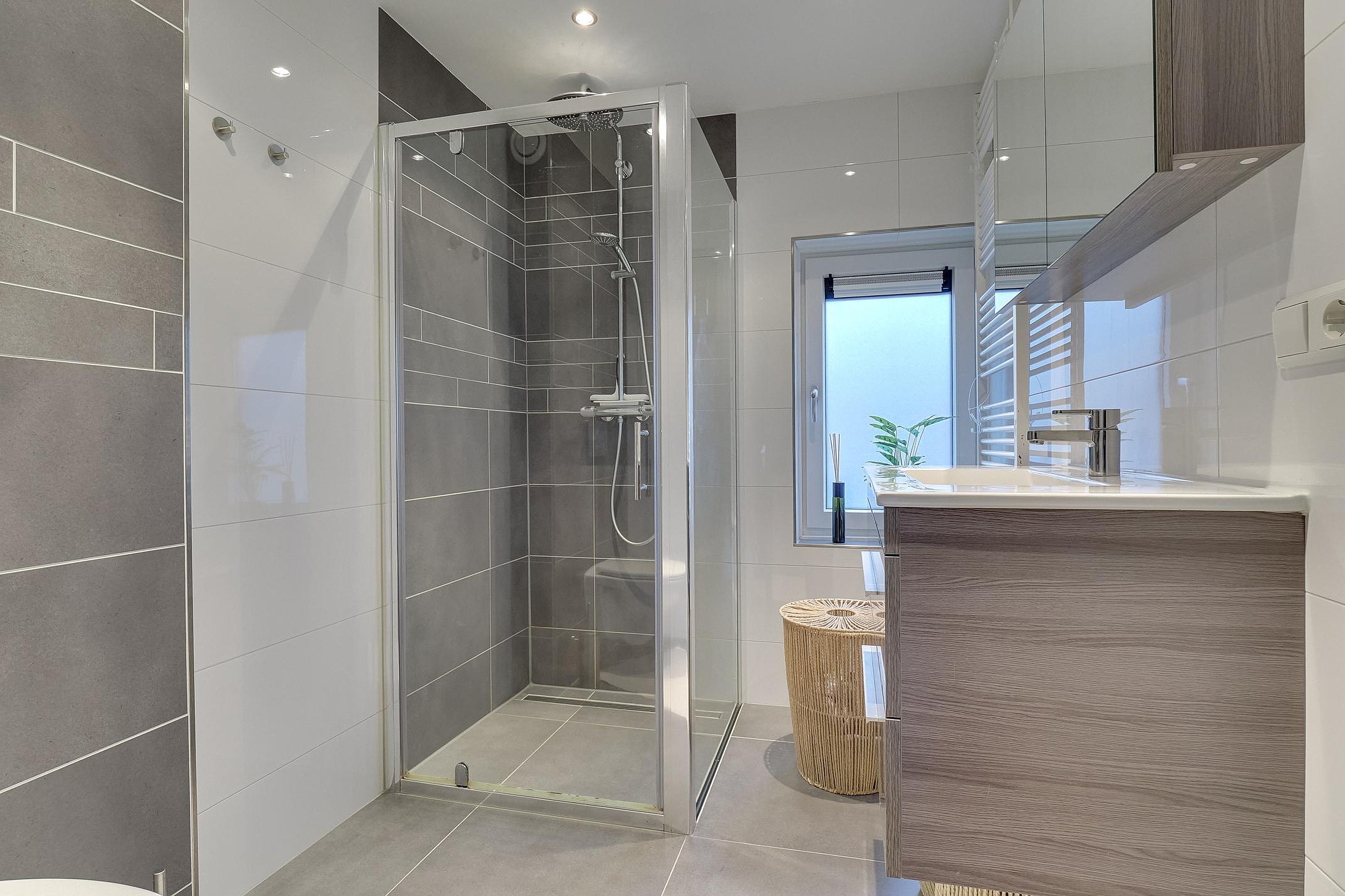 Ook de badkamer is netjes en eigentijds. Fris tegelwerk, een verzorgde afwerking en een uitstraling die rust geeft. Geen verbouwing op je to-do lijst, geen onverwachte kosten. Gewoon intrekken en leven.