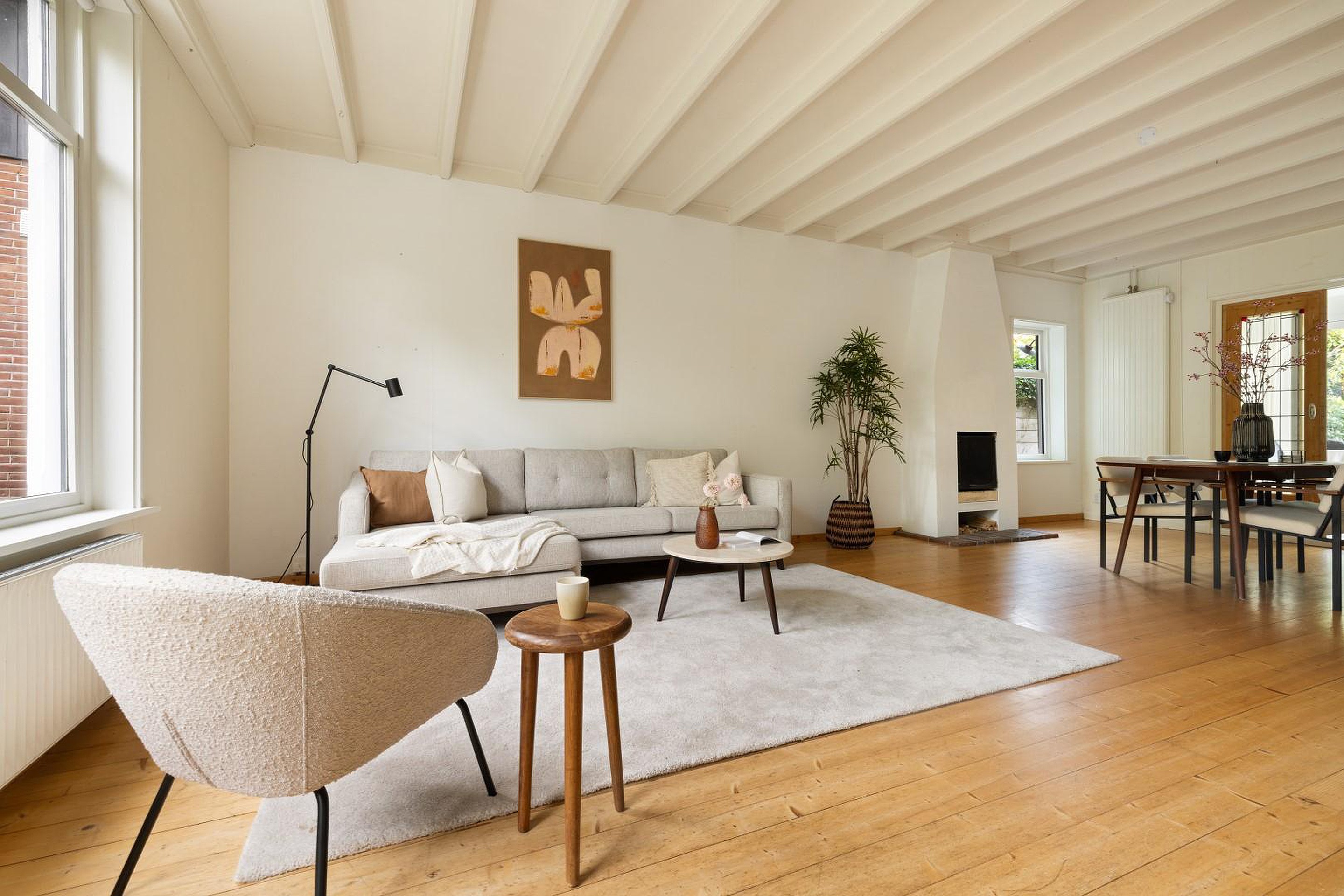 De woonkamer is voorzien van een mooie houten vloer en de wanden zijn strak en netjes afgewerkt. In de keuken ligt een karakteristieke granito vloer voorzien van vloerverwarming die perfect past bij de sfeer van de woning.