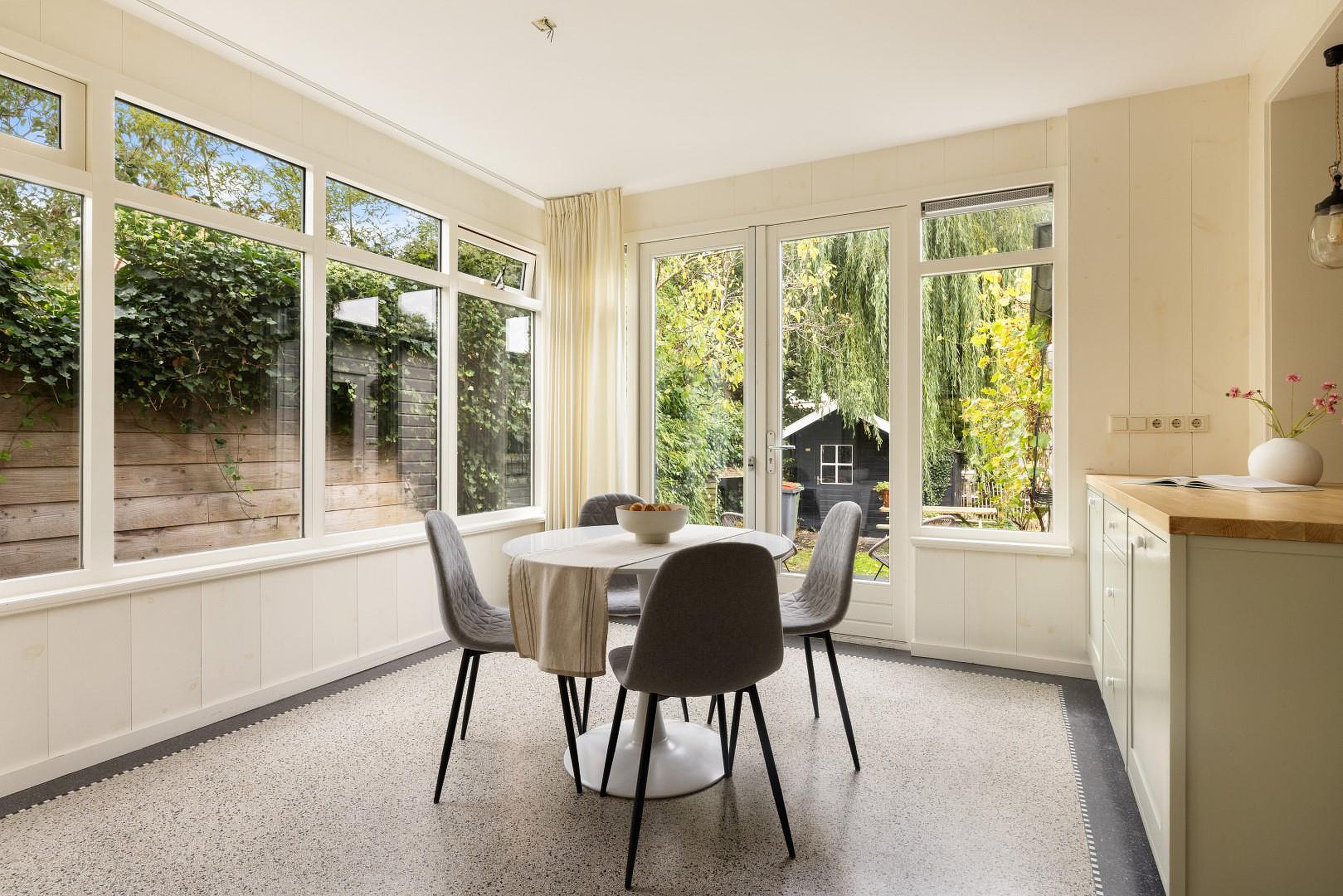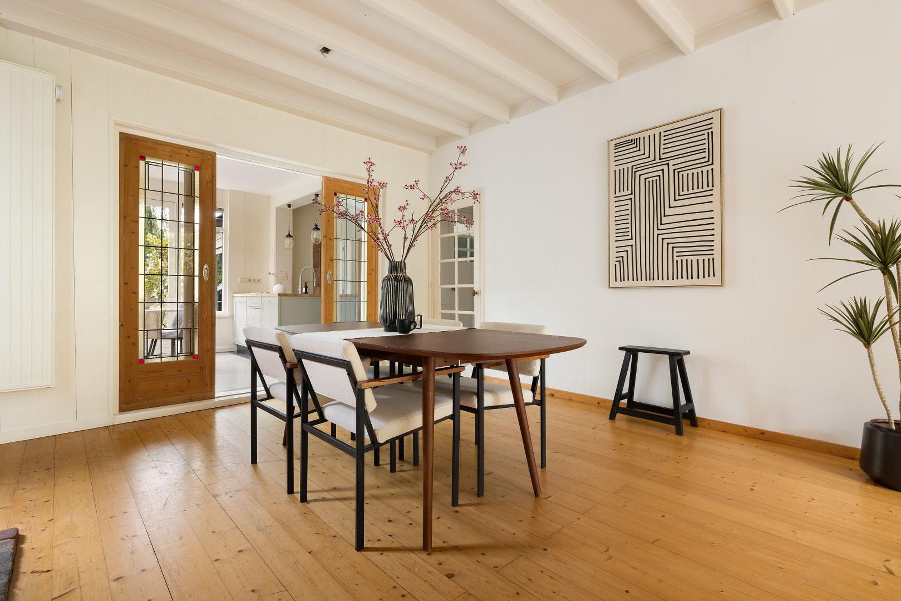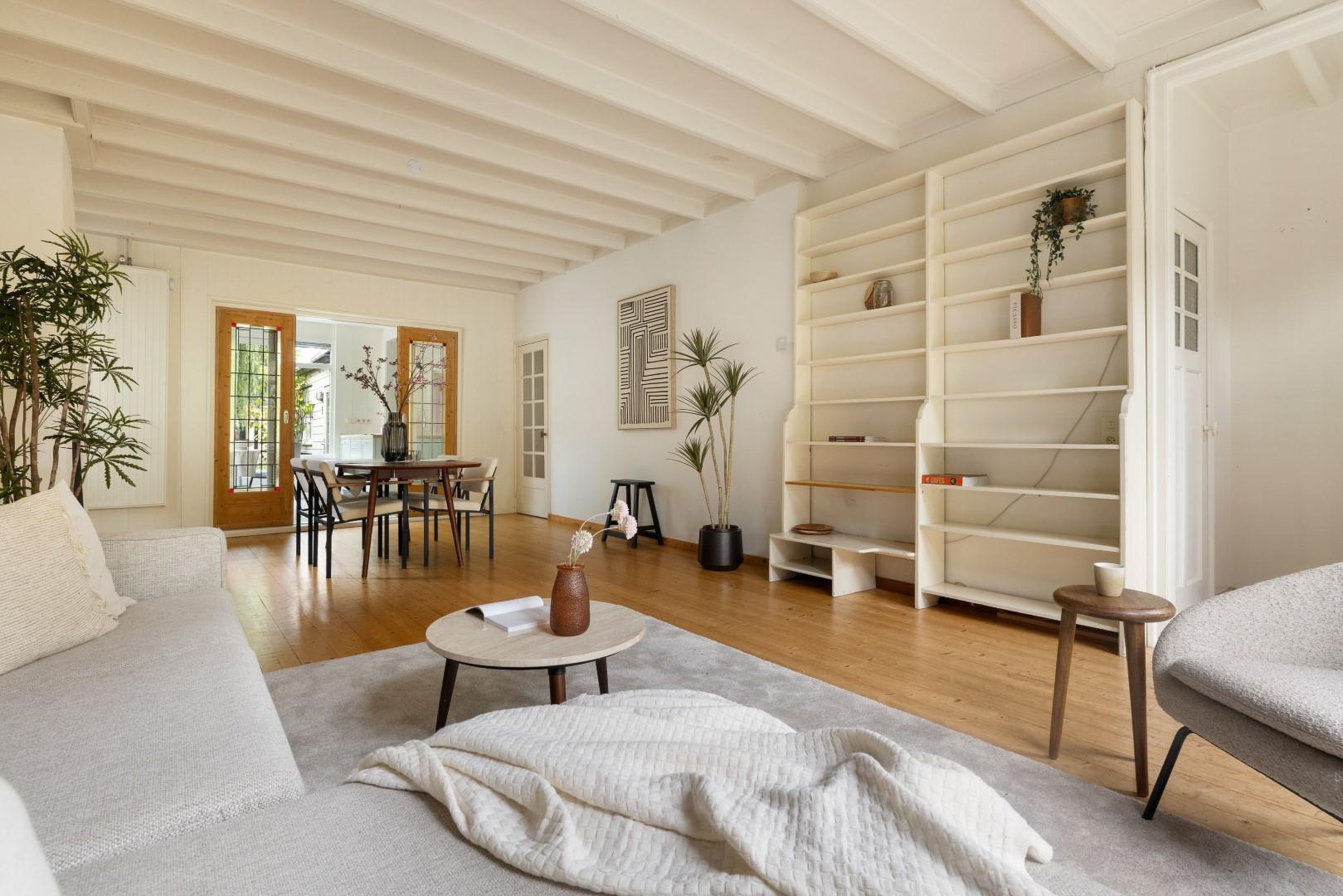 Aansluitend vindt u de praktische bijkeuken van ca. 6 m2, die eveneens toegang geeft tot de achtertuin. Vanuit de bijkeuken bereikt u de eerste slaapkamer, ideaal als kantoor aan huis, praktijkruimte of logeerkamer.
