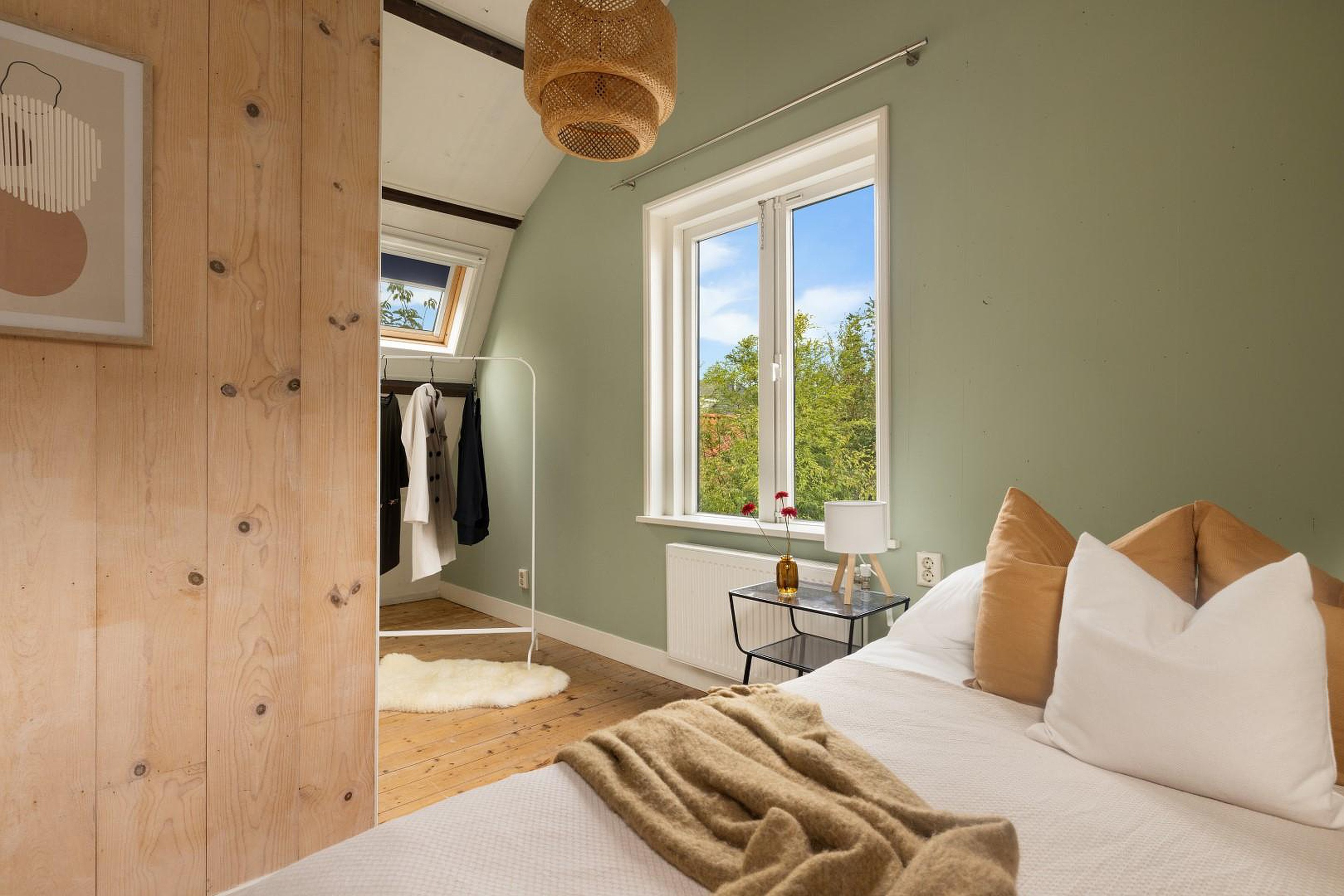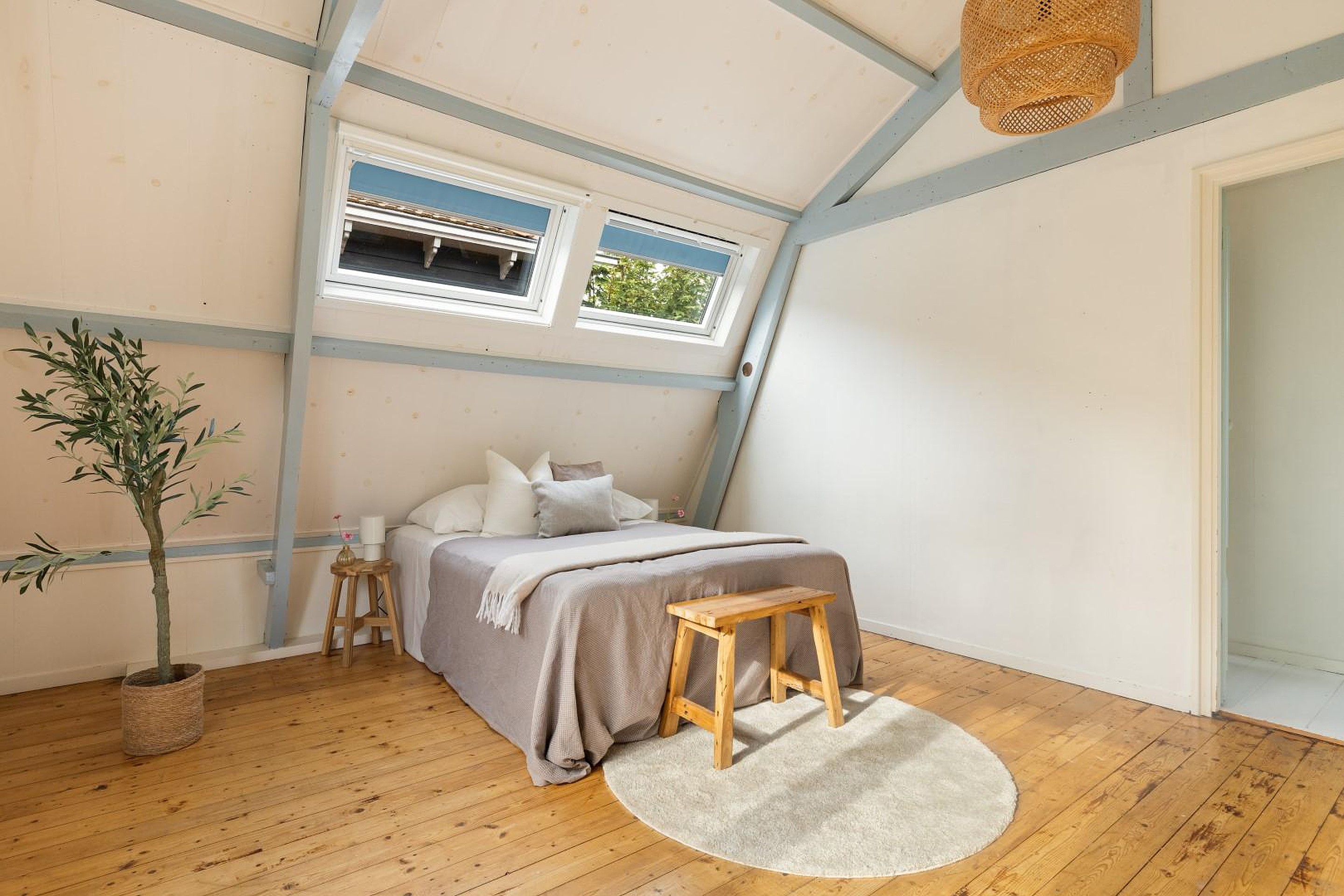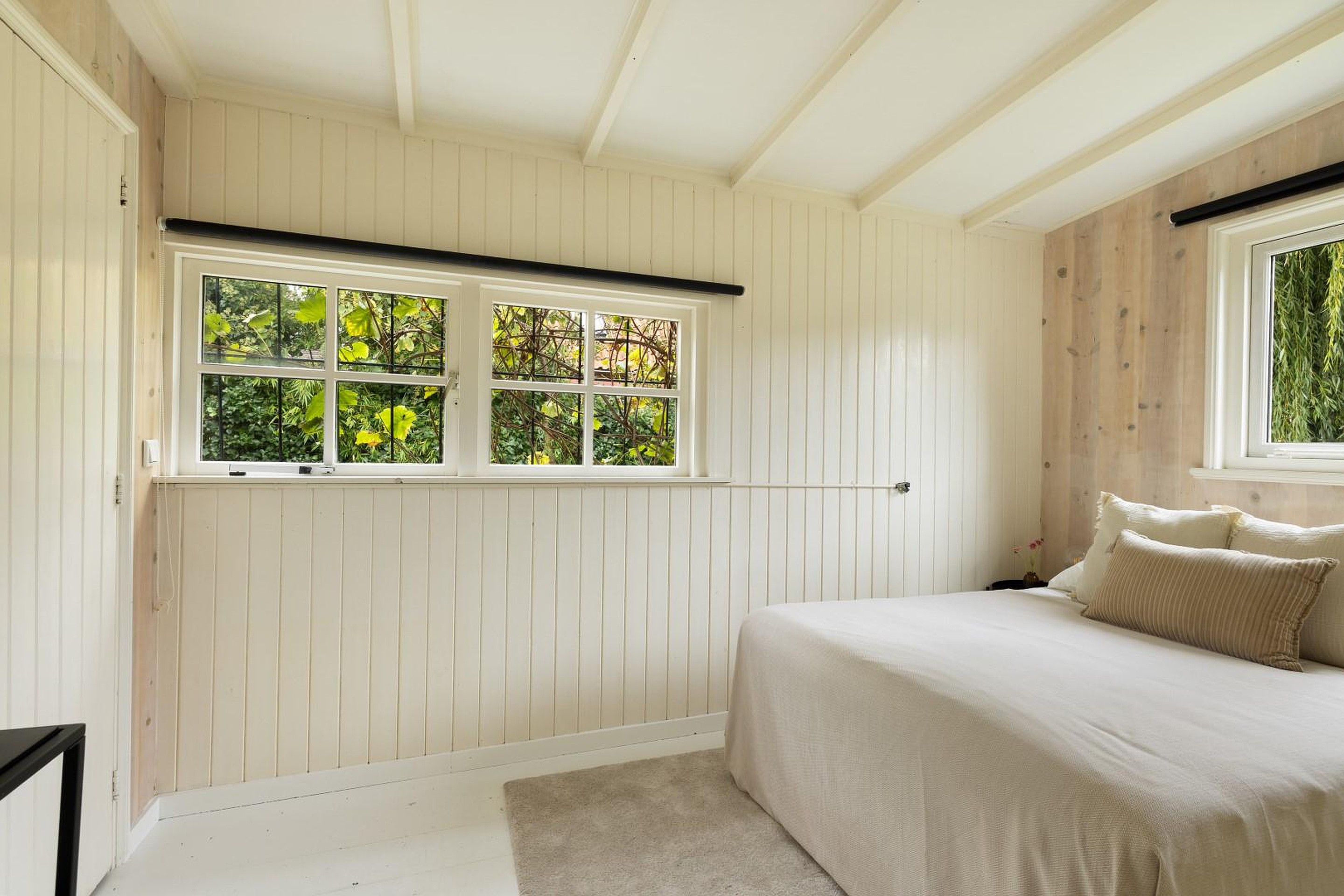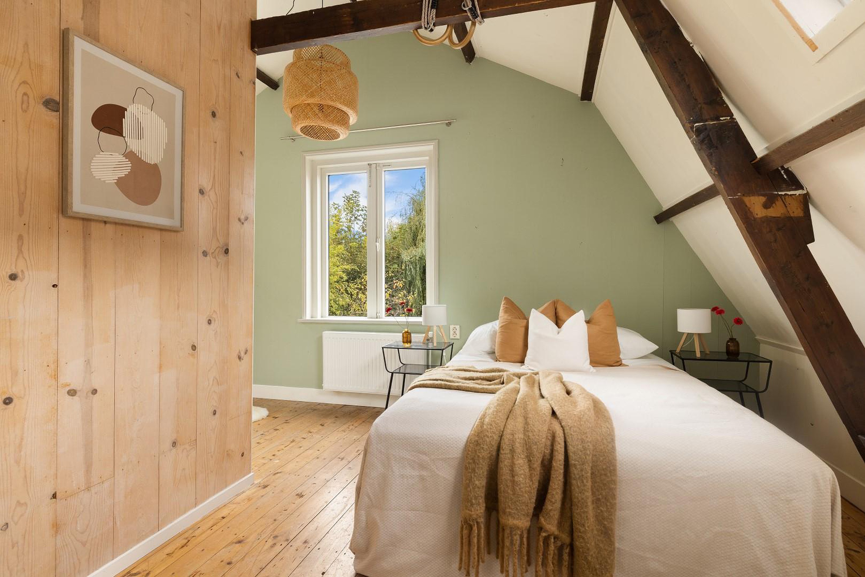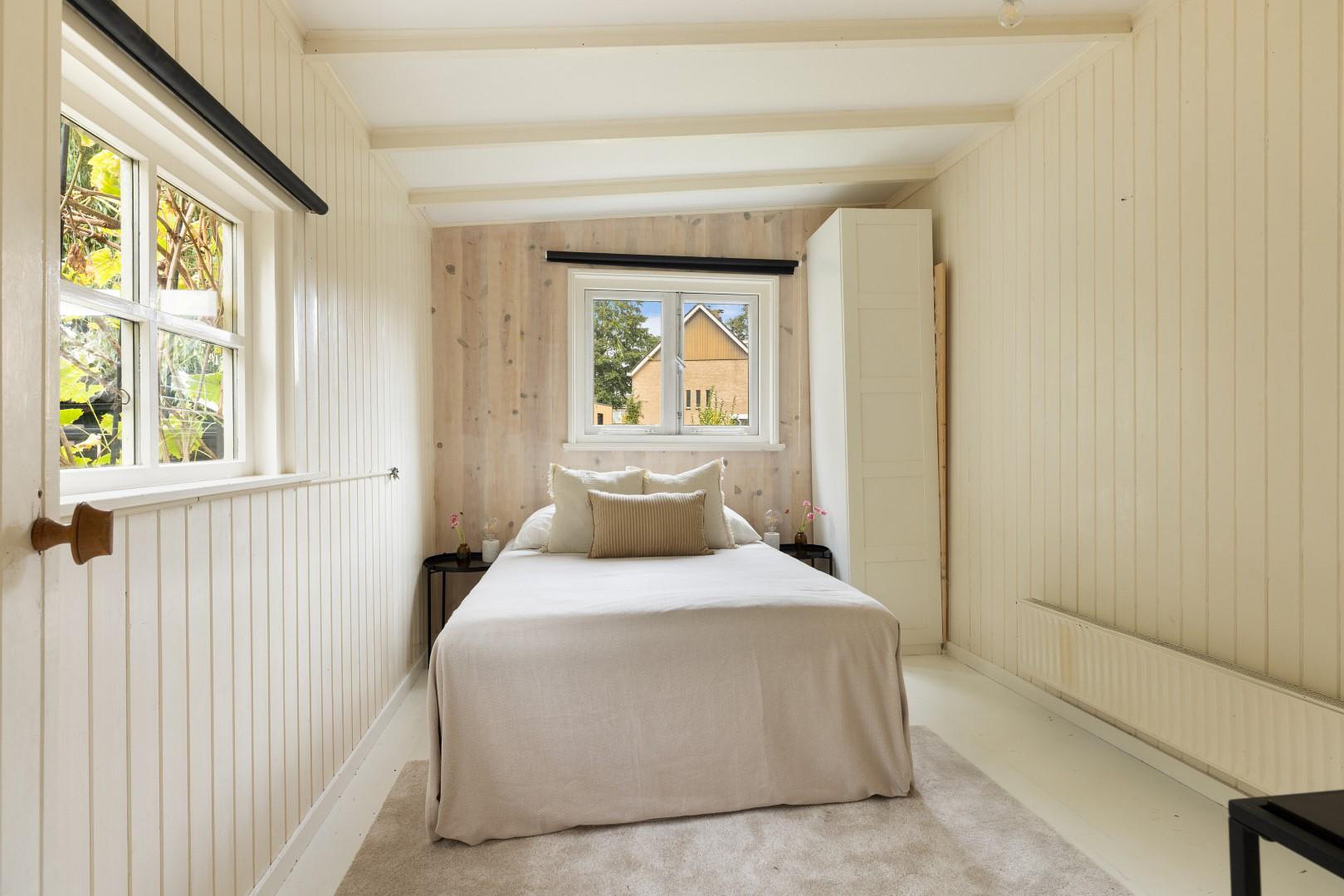 De slaapkamer aan de achterzijde kijkt uit over de tuin en het water, de slaapkamer aan de voorzijde biedt uitzicht op het prachtige park.