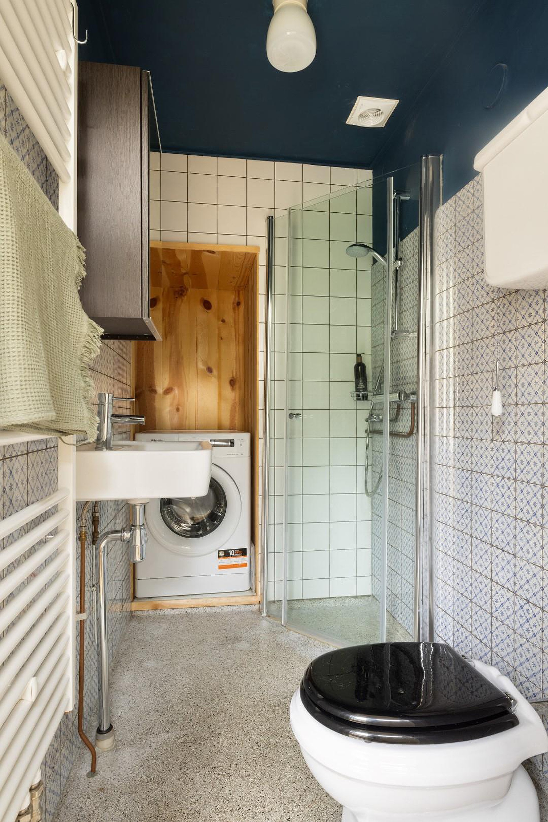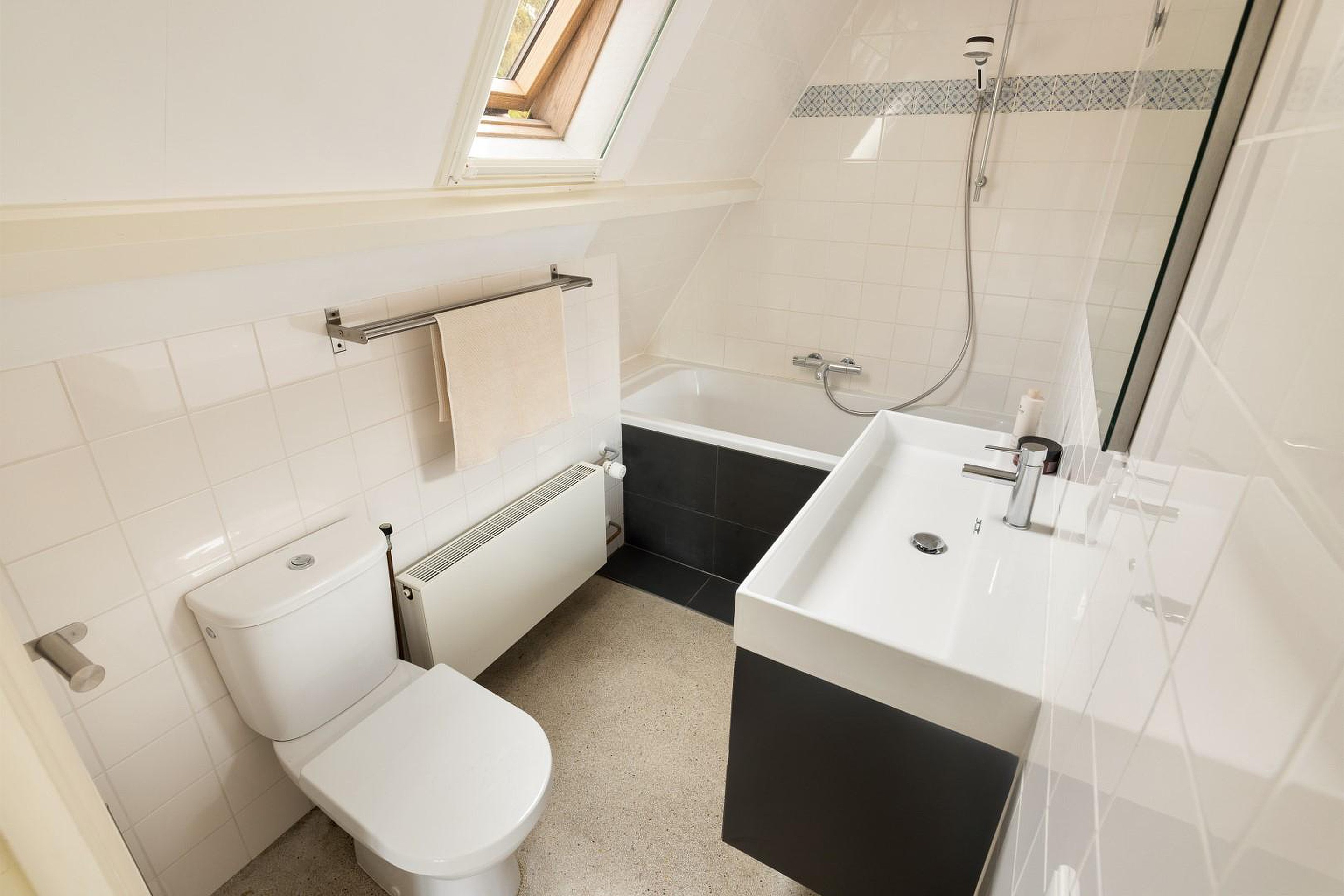 De badkamer is uitgerust met een ligbad, tweede toilet, radiator en granito vloer, een mooie mix van comfort en karakter.