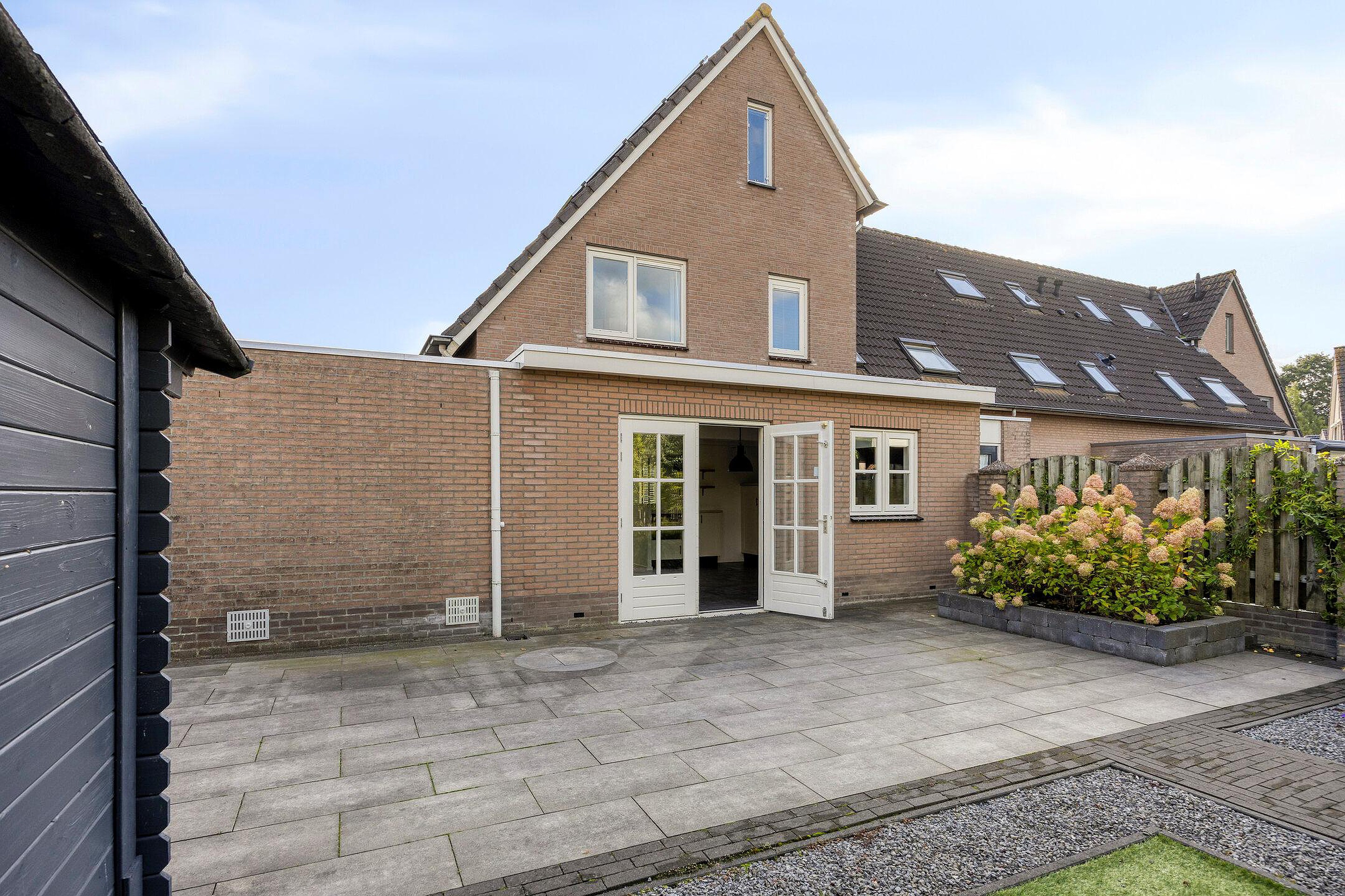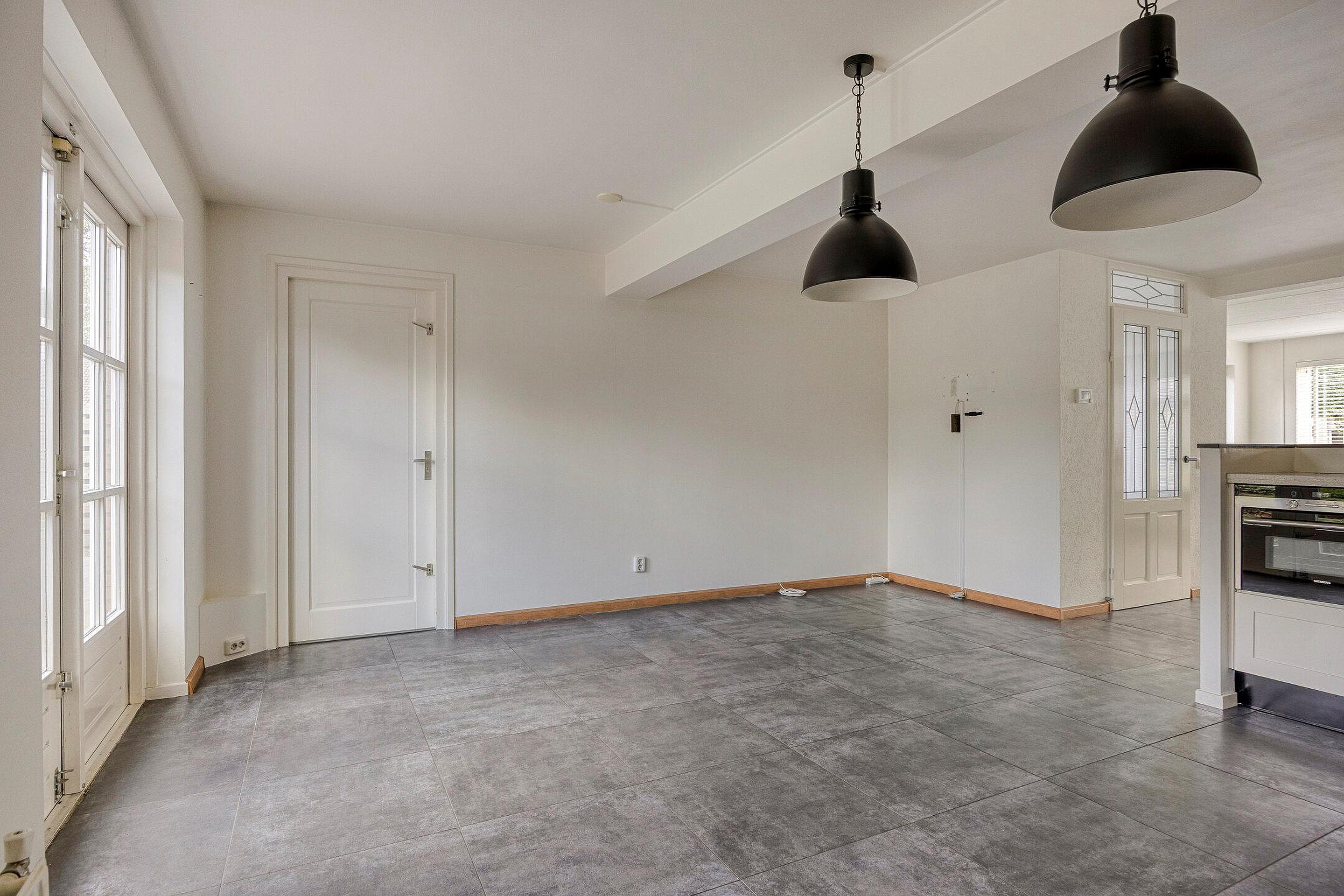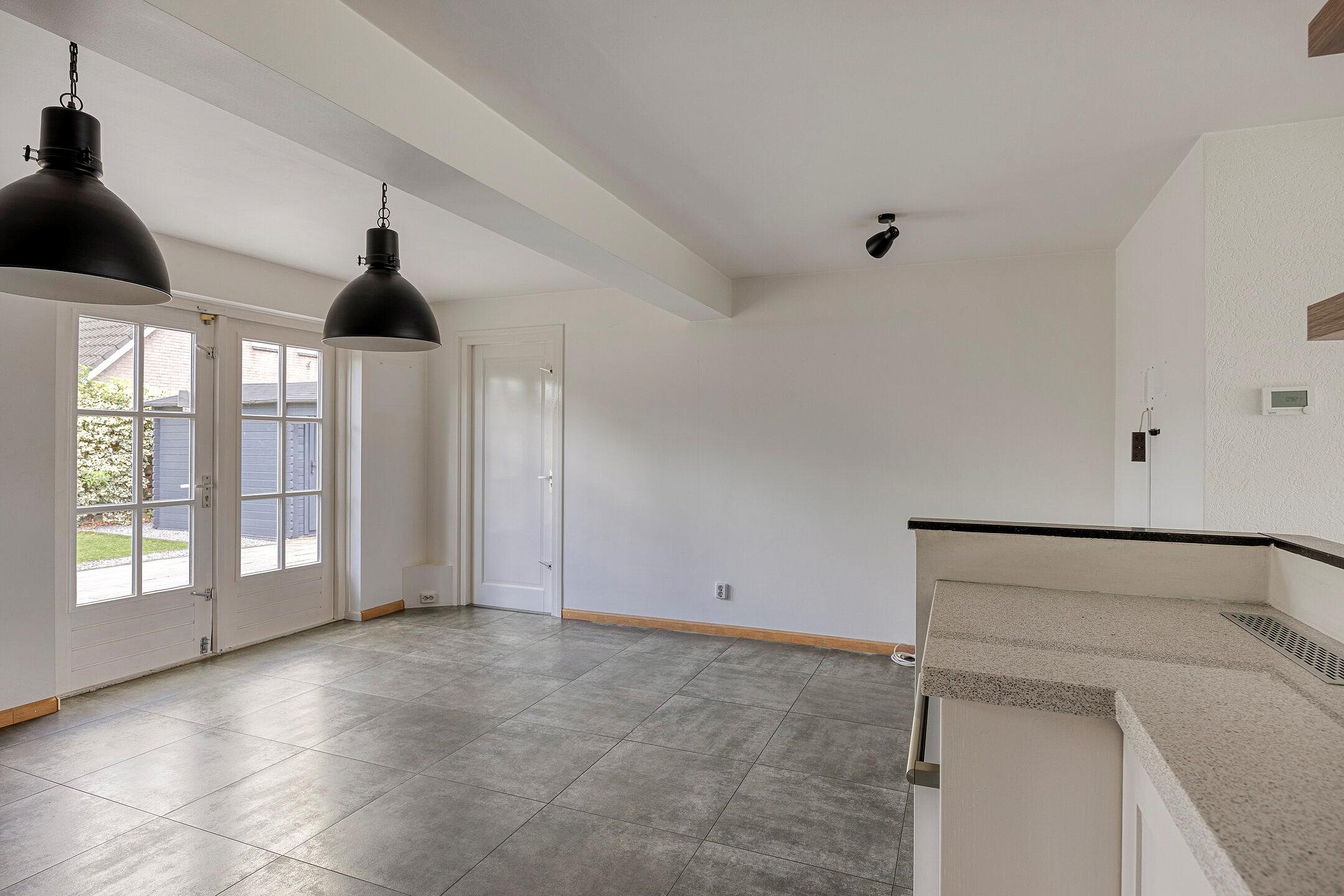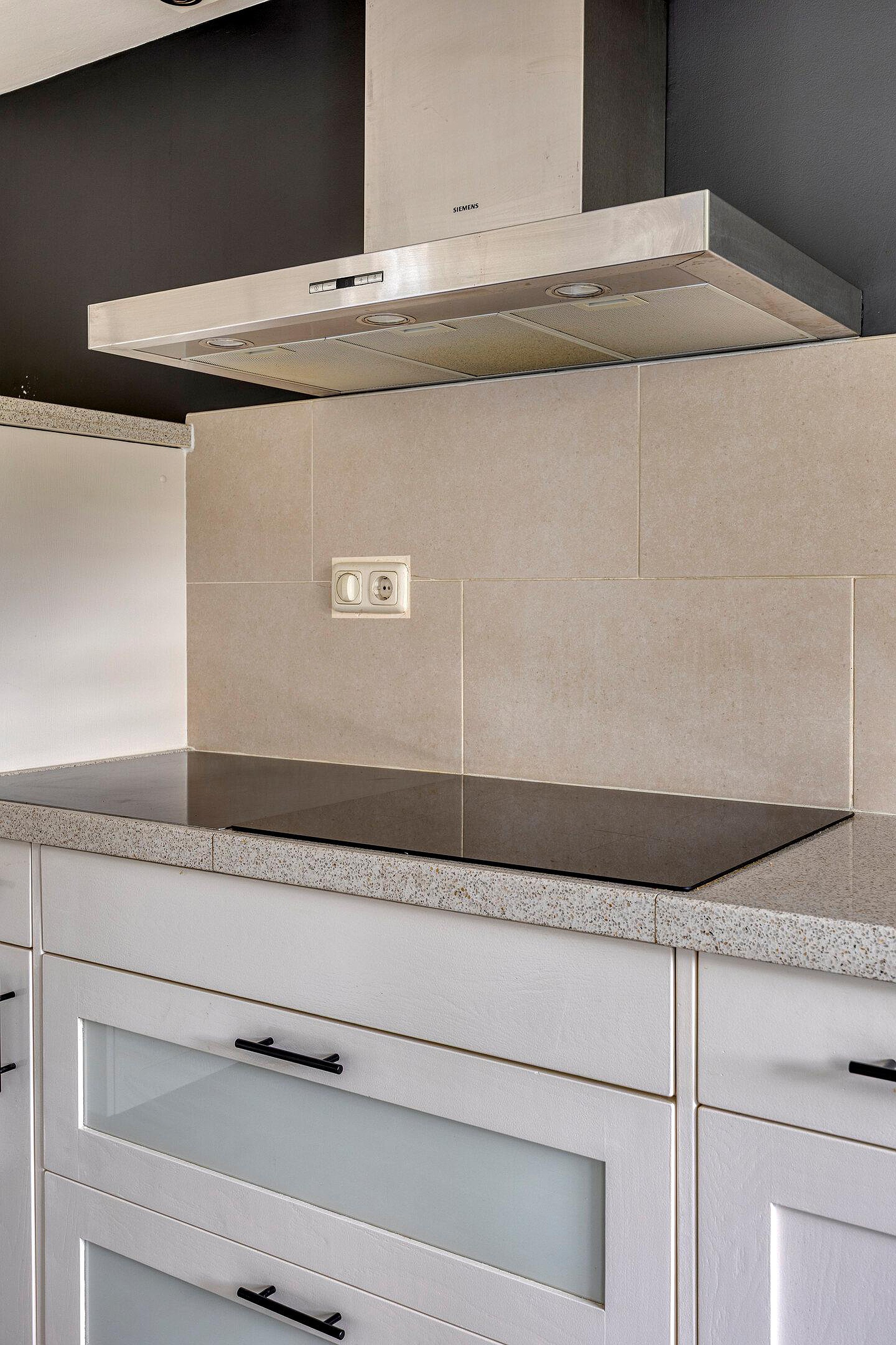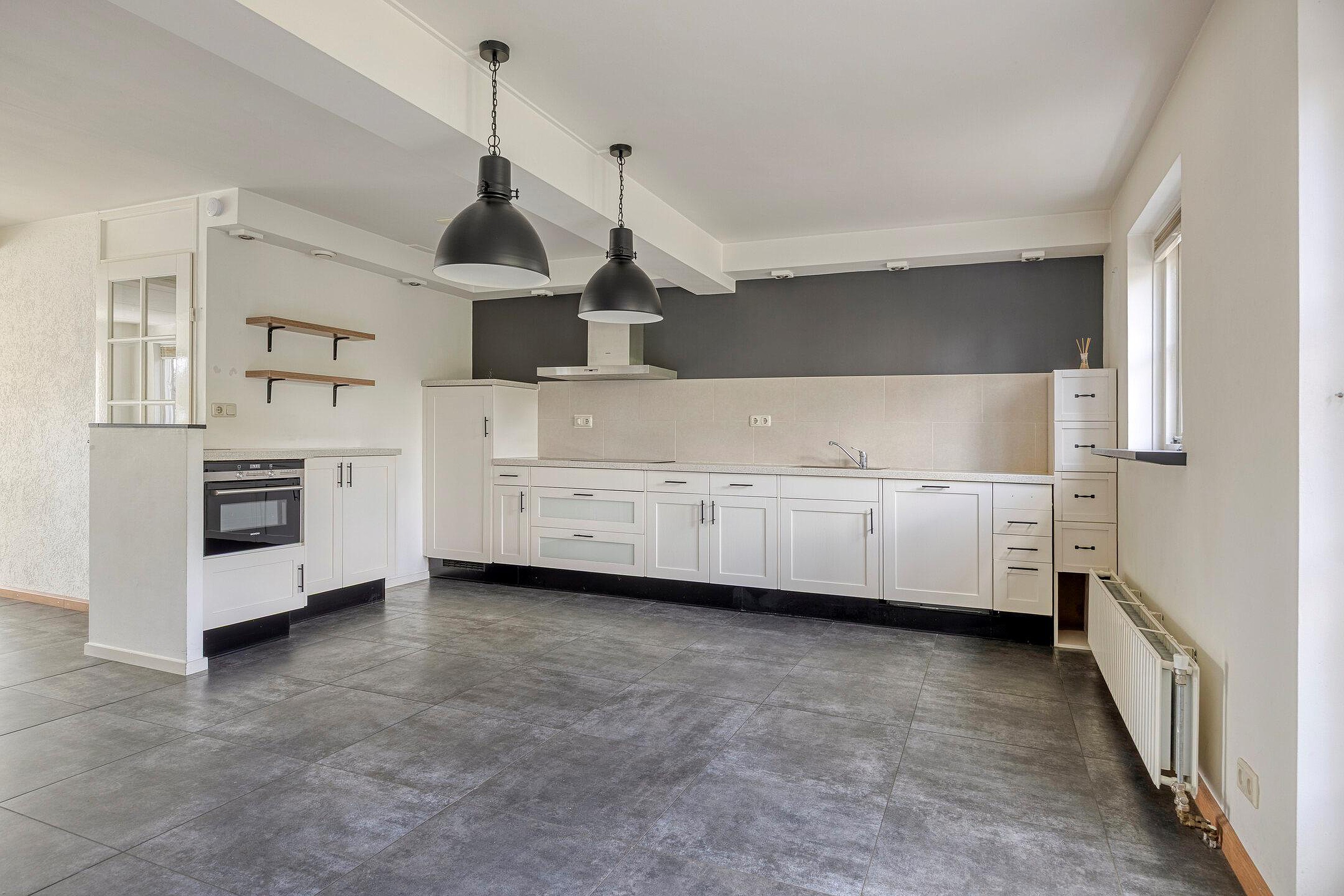 Aan de achterzijde van de woning treft u de open keuken, voorzien van een langwerpig aanrechtblad en diverse ingebouwde apparatuur, waaronder een inductiekookplaat, koelkast, ovencombinatie, vaatwasmachine en spoelbak. De keuken is goed onderhouden en is door de ruimte een grote woonkeuken. Via de openslaande deuren bereikt u de tuin, waardoor binnen en buiten naadloos met elkaar verbonden zijn.