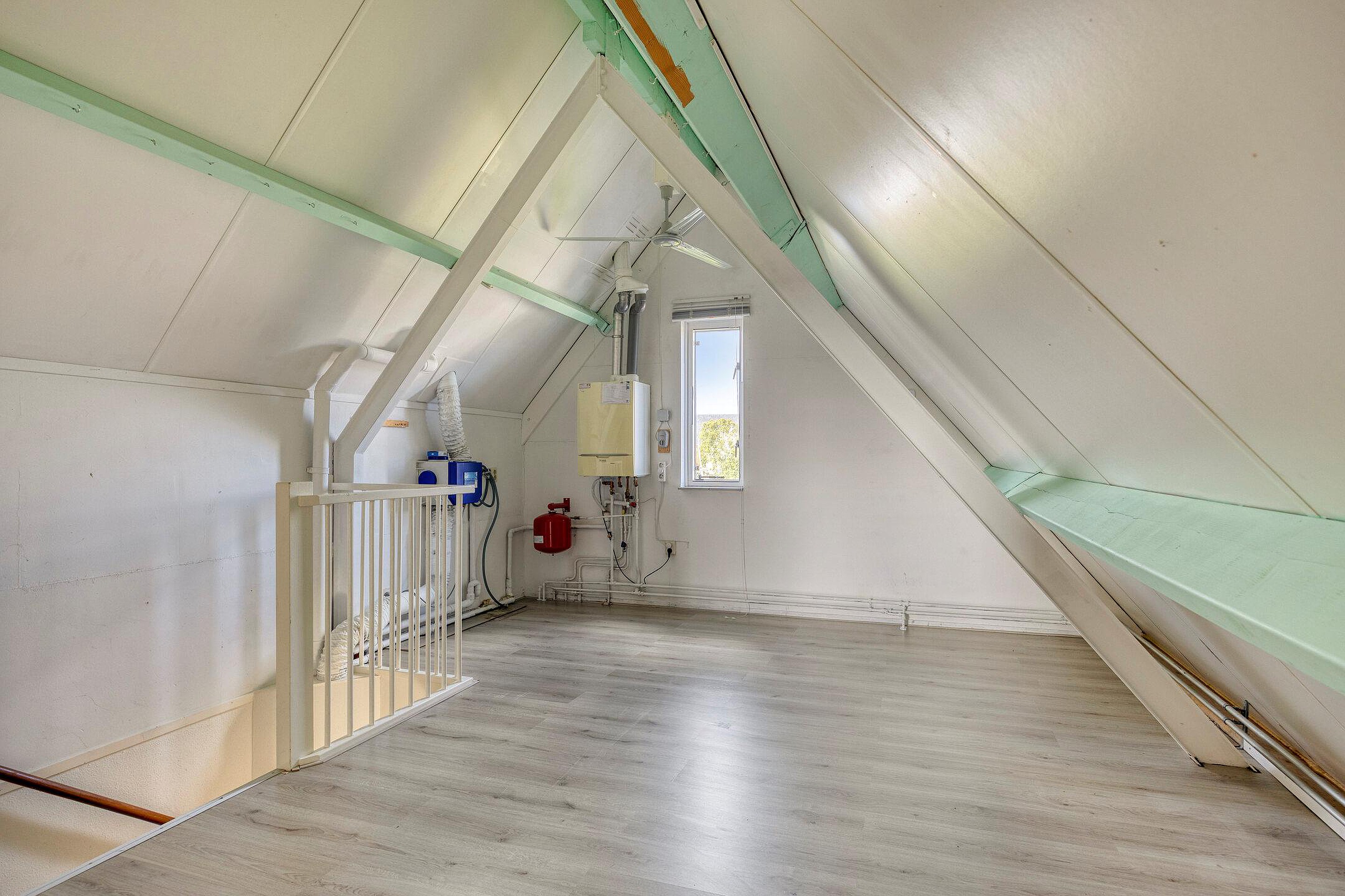 Met een vaste trap bereikt u de tweede verdieping. Hier treft u nog een extra slaapkamer, ideaal als logeer- of werkkamer. Daarnaast biedt de ruime zolder vele mogelijkheden, bijvoorbeeld als werkruimte, hobbyplek of ontspanningsruimte. De verdieping is licht en flexibel in te delen naar uw eigen wensen.