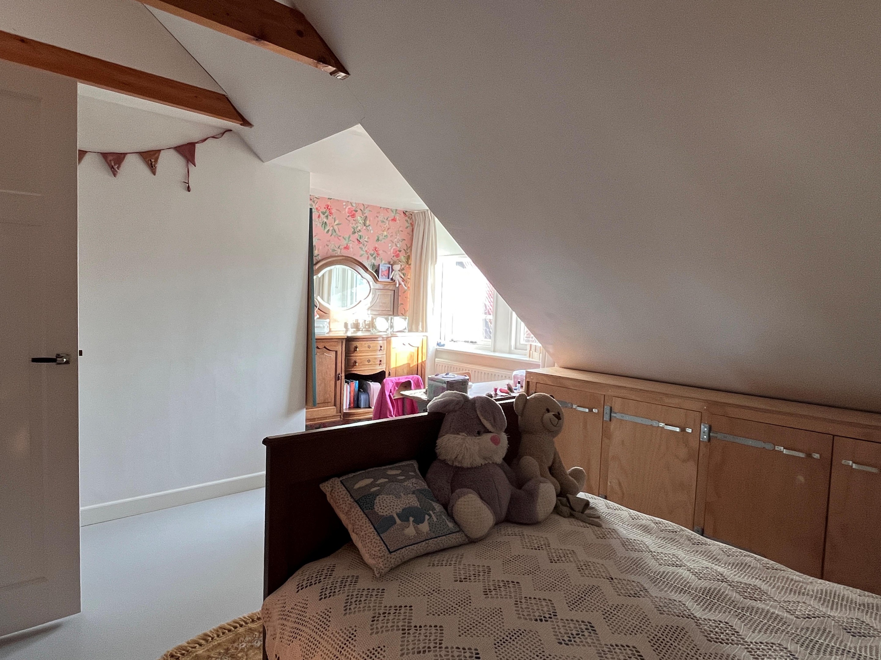 Eerste verdieping Op de verdieping bevinden zich vier slaapkamers, elk met een prettige lichtinval en fijne indeling. De overloop is voorzien van een lichtkoepel, waardoor er extra daglicht naar binnen valt en de verdieping ruimtelijk aanvoelt. Verder is er een praktische bergkast aanwezig, waarin de cv-ketel is opgesteld. De verdieping beschikt over een ruime badkamer, uitgerust met een inloopdouche, dubbele wastafel en toilet. De badkamer is zowel vanuit de overloop als rechtstreeks vanuit de master bedroom toegankelijk.