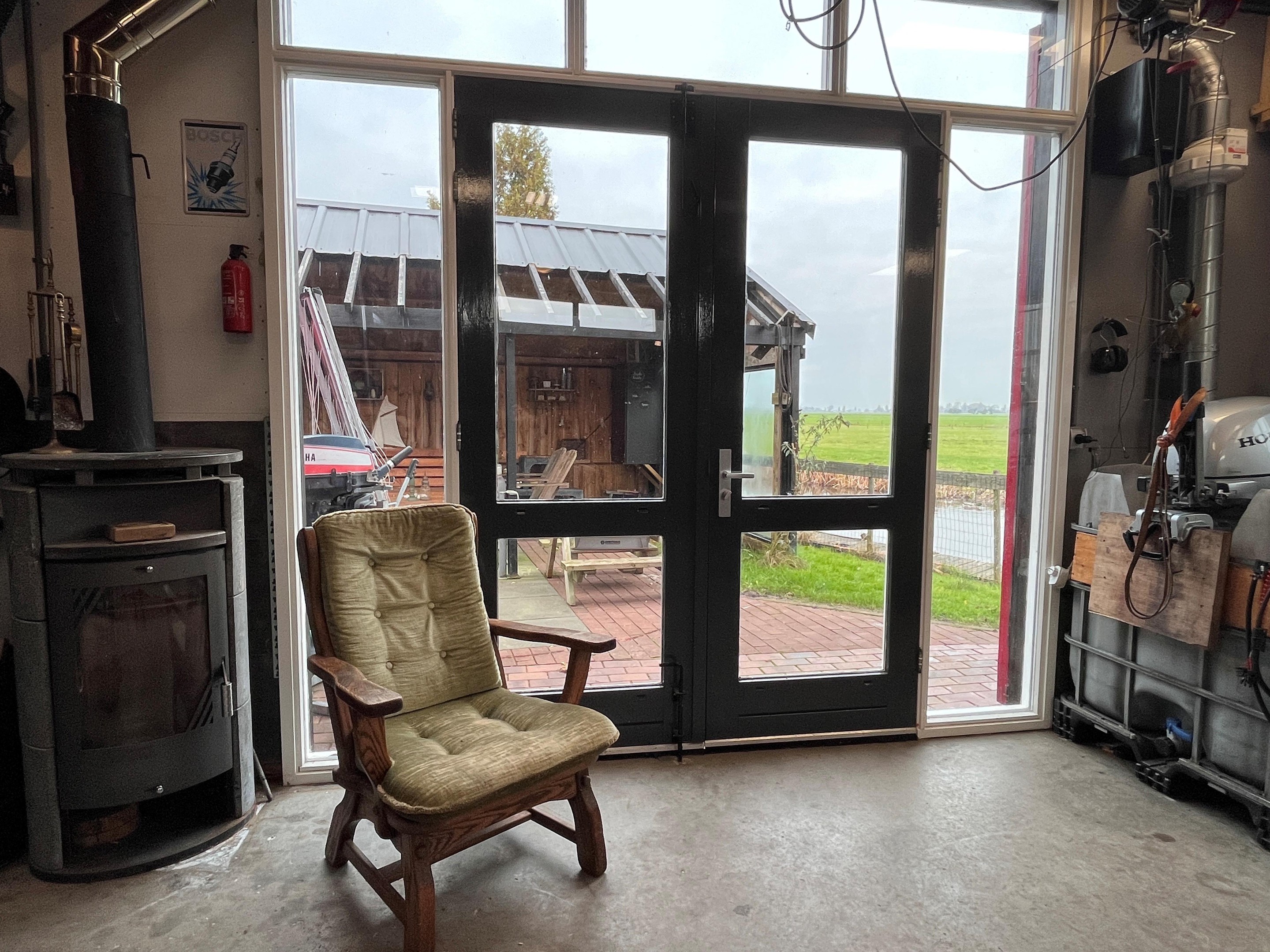 Begane grond Volgens goed Fries gebruik betreed je deze woning via de achterdeur. Je komt binnen in de royale schuur van in totaal ca. 70 m2, waar je alle ruimte hebt voor opslag, een werkplaats, kantoor of praktijk aan huis. De schuur beschikt over een achterwand met veel glas en openslaande deuren, waardoor je prachtig uitzicht hebt over de landerijen. De schuur wordt verwarmd middels een houtkachel.