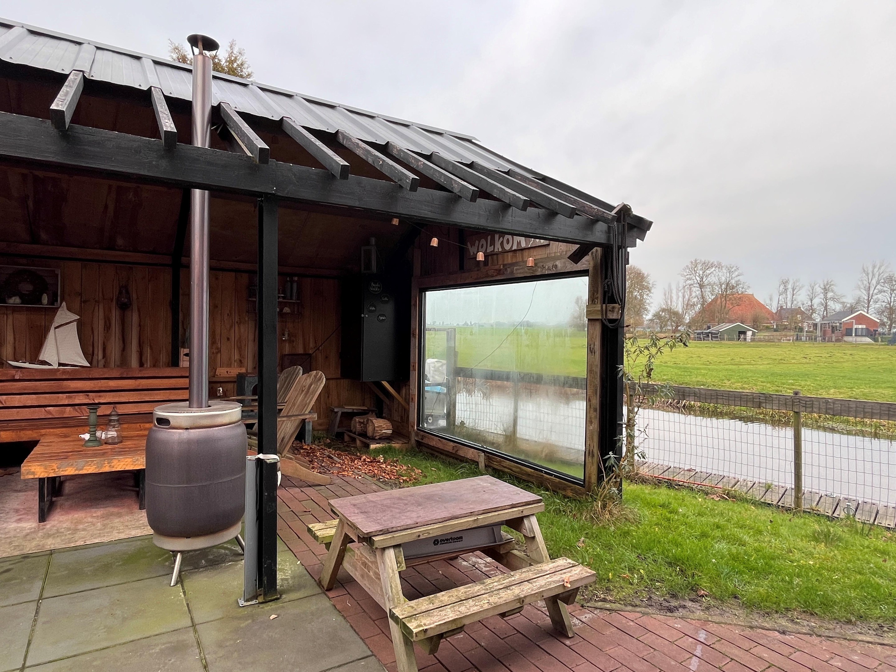 In de achtertuin bevindt zich een fijne overkapping, waar je al vroeg in het seizoen heerlijk beschut kunt zitten. Dankzij het gebruiksrecht van de aangrenzende oever profiteer je bovendien optimaal van de idyllische ligging aan het water.
