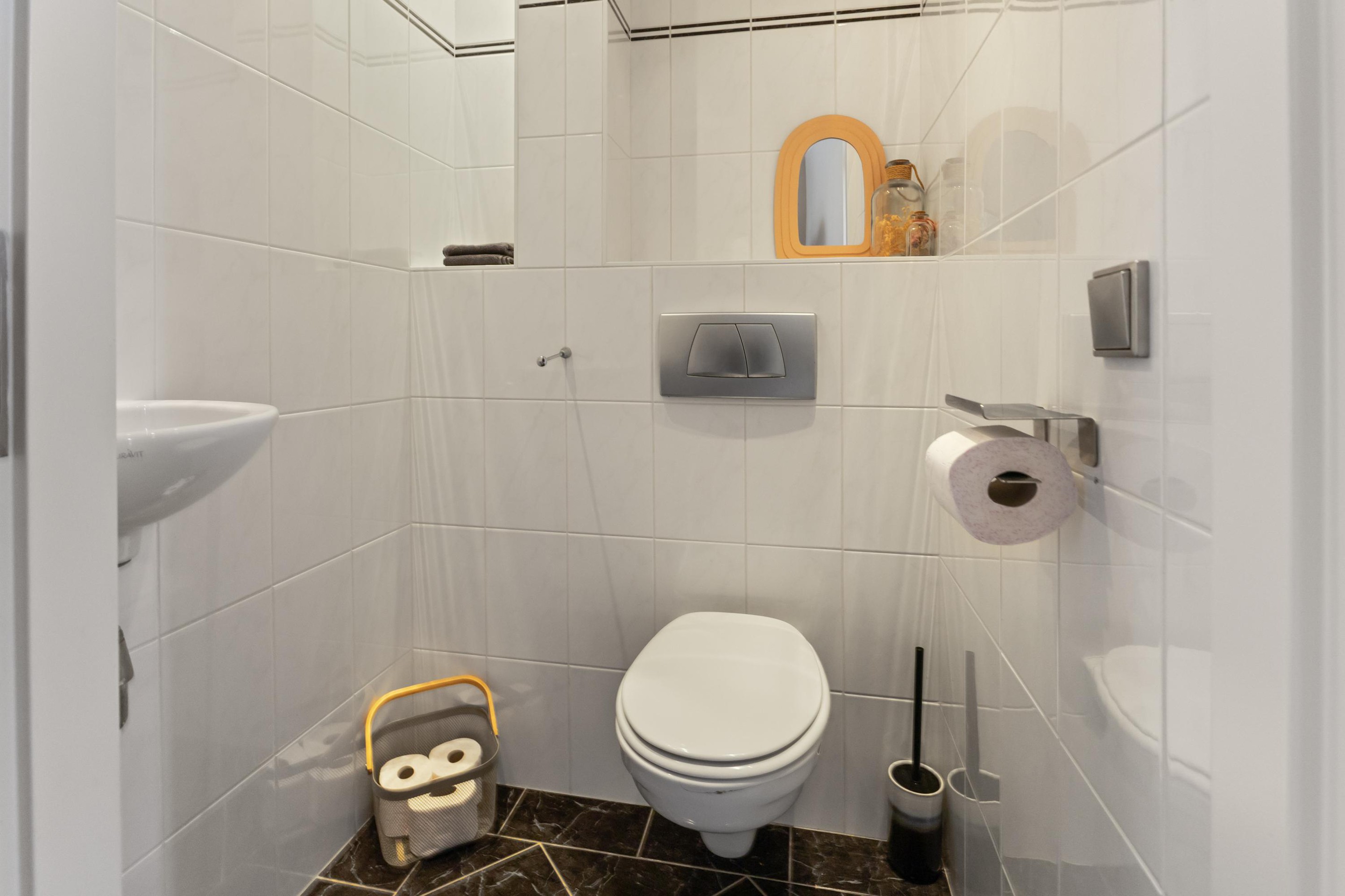 Voortuin, entree woning in de hal met meterkast. Vanuit de hal kom je in de living met de woonkamer aan de voorzijde en de keuken aan de achterzijde op de begane grond. De keuken is in een hoekopstelling geplaatst en voorzien van diverse inbouwapparatuur. Vanuit de woonkamer kom je in een achter halletje waar je het toilet als ook de deur naar de achtertuin vindt. De achtertuin, enkele jaren geleden opnieuw bestraat, ligt pal op het Zuiden en biedt een stenen berging met elektra achterin de tuin, en een achterom. Op de eerste verdieping zijn er twee prima slaapkamers. De hoofdslaapkamer aan de voorzijde beslaat zelfs de gehele breedte van de woning. De geheel betegelde, moderne badkamer is voorzien van een keurig wastafelmeubel, een inloopdouche en een tweede toilet. Er is zowel mechanische ventilatie als ook een raam dat open kan. Vanaf de overkoop ga je met een vaste trap naar de tweede verdieping. Hier vind je een praktische voorzolder voor berging maar ook CV-ketel (2020) en de aansluitingen voor het witgoed. Vanaf de voorzolder kom je in de derde, ook weer ruime, slaapkamer.
