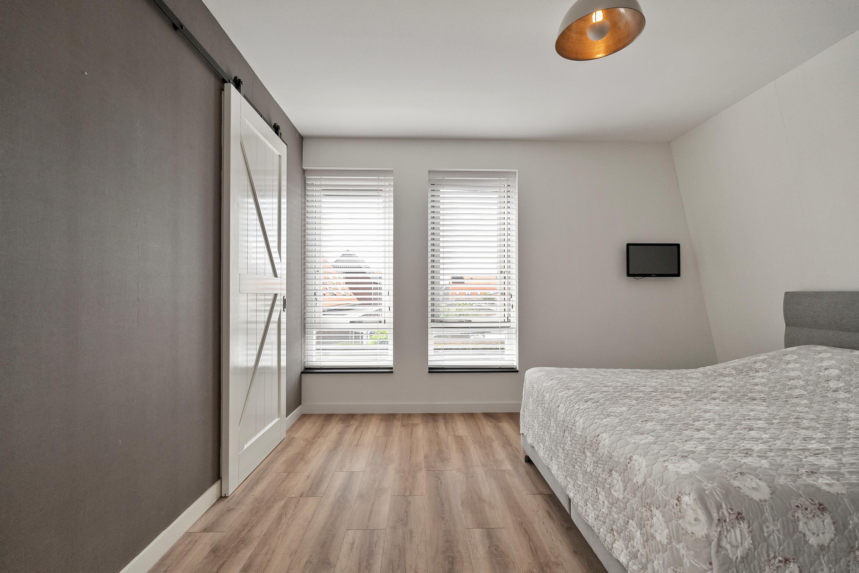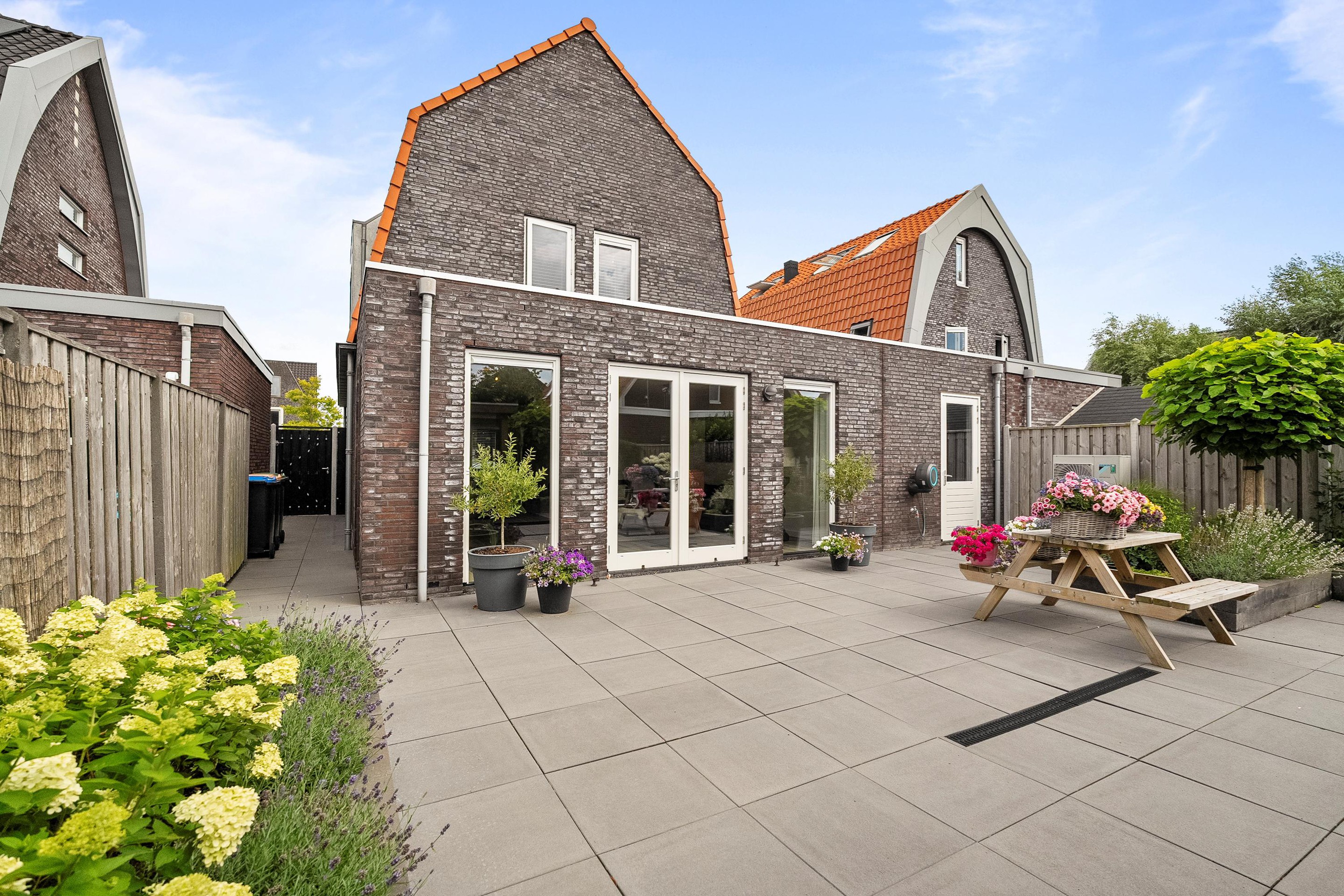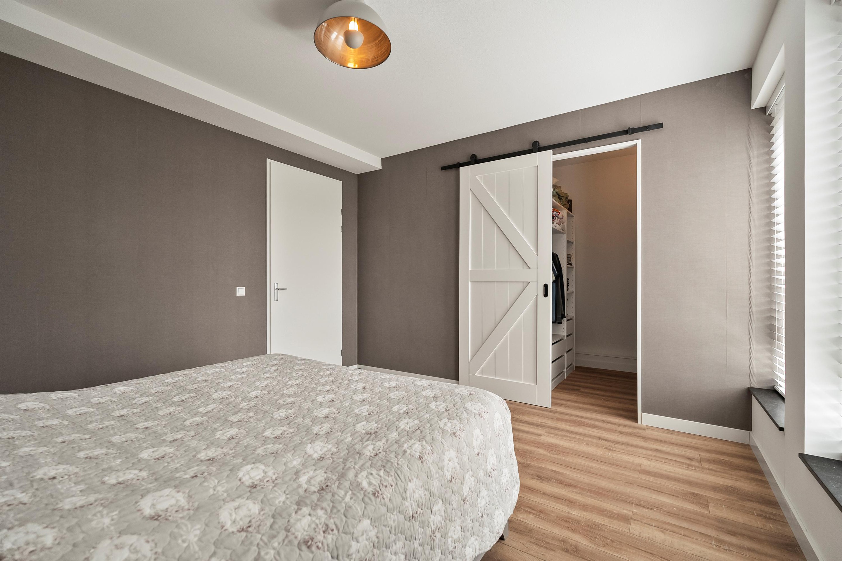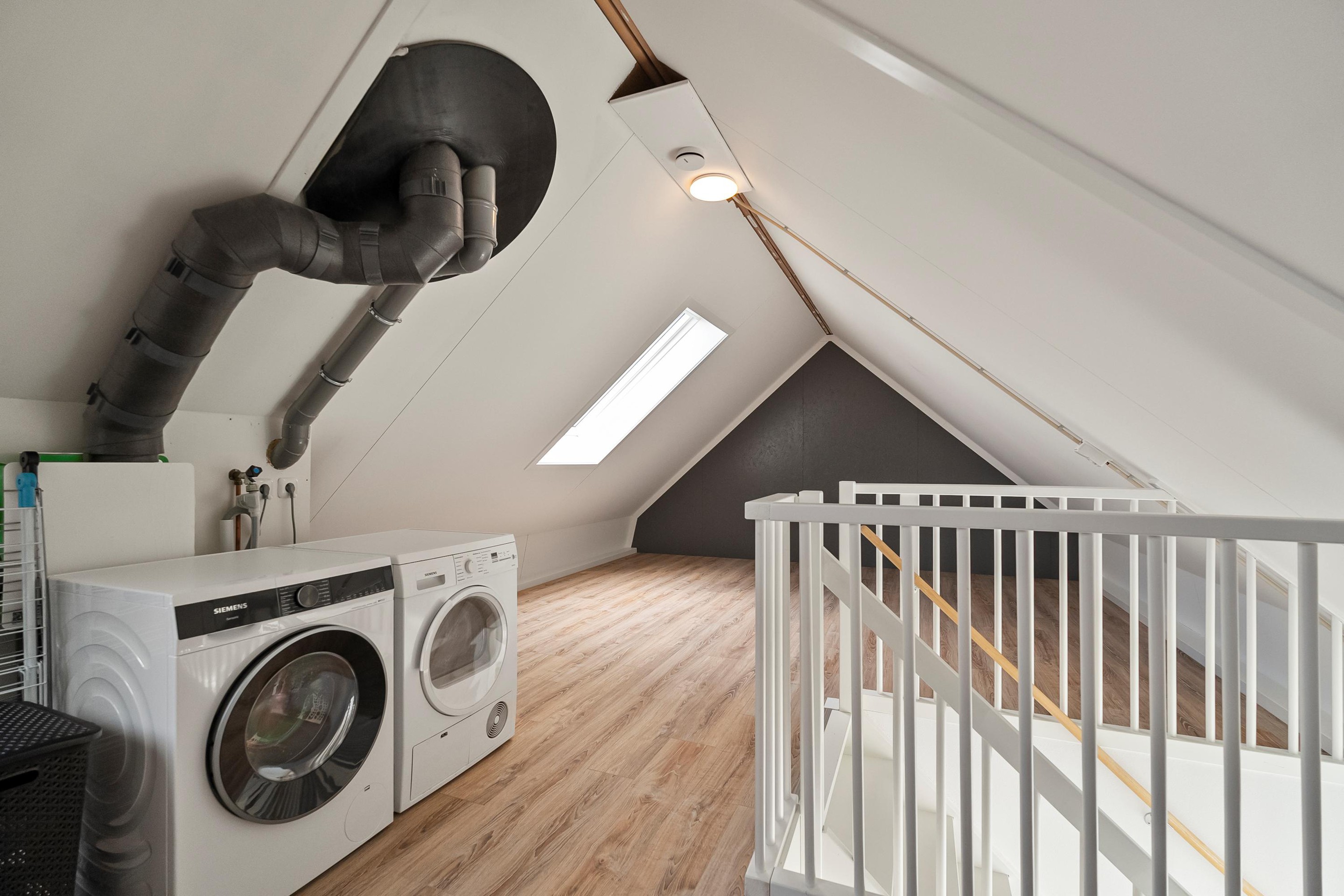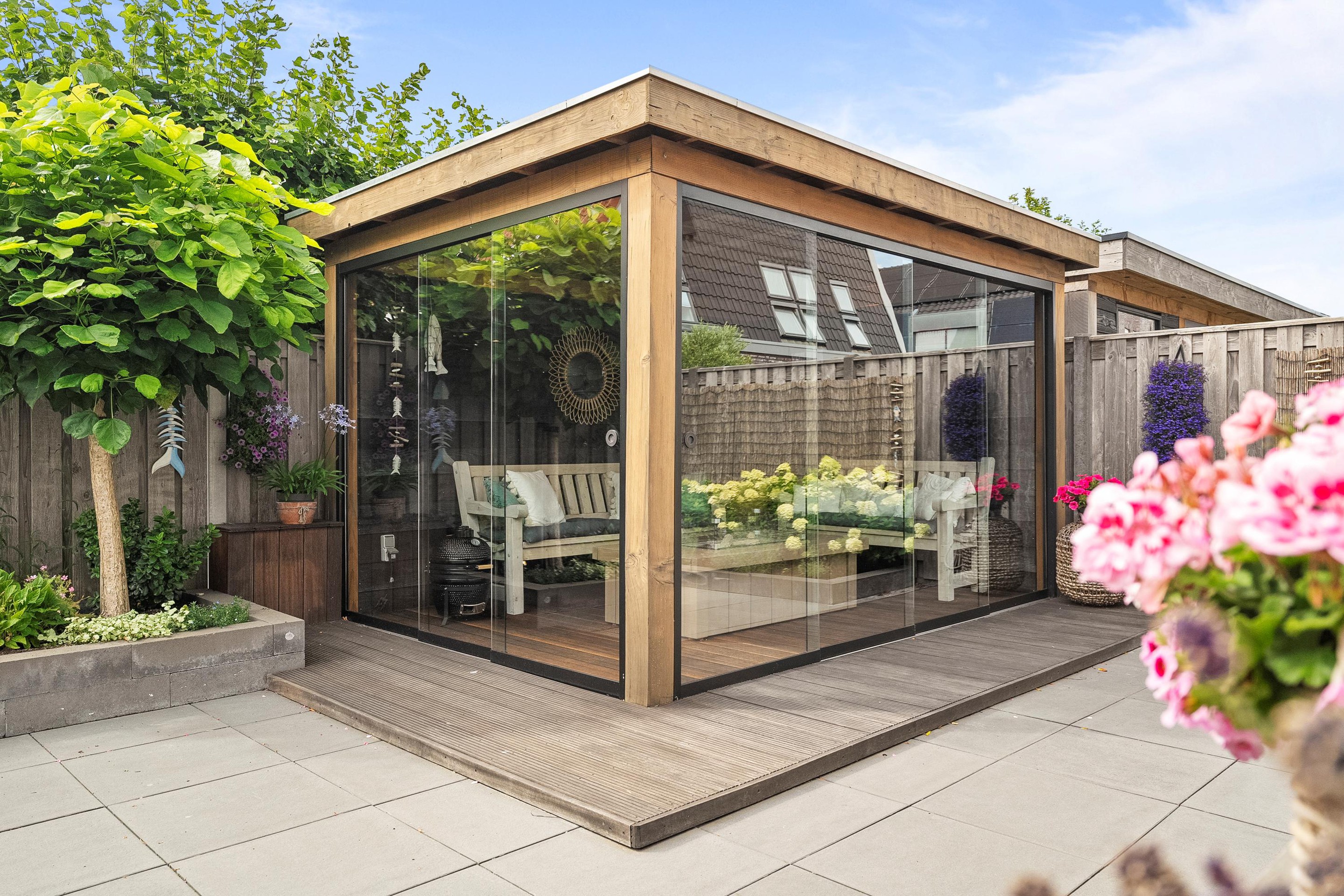 Voortuin, oprit, entree garage en entree woning. Je komt de woning binnen in een ruime hal voorzien van de meterkast, het toilet, trapopgang naar de verdieping, inpandige toegang naar de garage en toegang tot de woonkamer. Een riante woonkamer, zeker gezien de flinke aanbouw met dubbel openslaande tuindeuren die tijdens de nieuwbouw direct is aangebracht. Hiermee komt het totale woonoppervlak op de begane grond tot wel bijna 85m2! De woonkamer is zogezegd tuingericht en aan de voorzijde van de woning vind je de luxe, open inbouwkeuken voorzien van al het gewenste inbouwapparatuur geplaats in een apparatenwand en het fraaie kookeiland, verlengd met een bar waar het heerlijk (na)zitten is. Terug in de hal brengt een brede trapopgang je naar de overloop op de eerste verdieping. Grote raampartijen zorgen voor een fijn lichtinval. De eerste verdieping biedt 3 ruime slaapkamers met aan de master-bedroom een fraaie inloopkast. De daglichtvolle, ruime badkamer is voorzien van een glazen douchecabine en dubbel wastafelmeubel. Het tweede toilet is te vinden op de overloop, separaat van de badkamer. Ideaal! Vanaf diezelfde overloop is er een vaste trap naar de tweede verdieping waar de voorbereidingen voor (mogelijk 2) extra slaapkamers al zijn getroffen door het plaatsen van 2 grote dakramen en het aanbrengen van een laminaatvloer. Heb je de extra kamers niet nodig dan biedt de ruimte tal van andere ontspannings-, thuiswerk-, of bergingsmogelijkheden! Achter de woning ligt een grote, uitstekend gelegen achtertuin. Keurig en onderhoudsvriendelijk aangelegd met sierbestrating, goed schuttingwerk en fraaie borders met diverse beplanting. De achtertuin is gelegen op het Westen en biedt vrijwel de gehele dag ruimte voor de zon. Naast de fraaie aanleg is er een evenzo mooie tuinkamer gerealiseerd. Een volledig met glazen panelen afsluitbare veranda waar het geweldig toeven is op de mooie dagen!