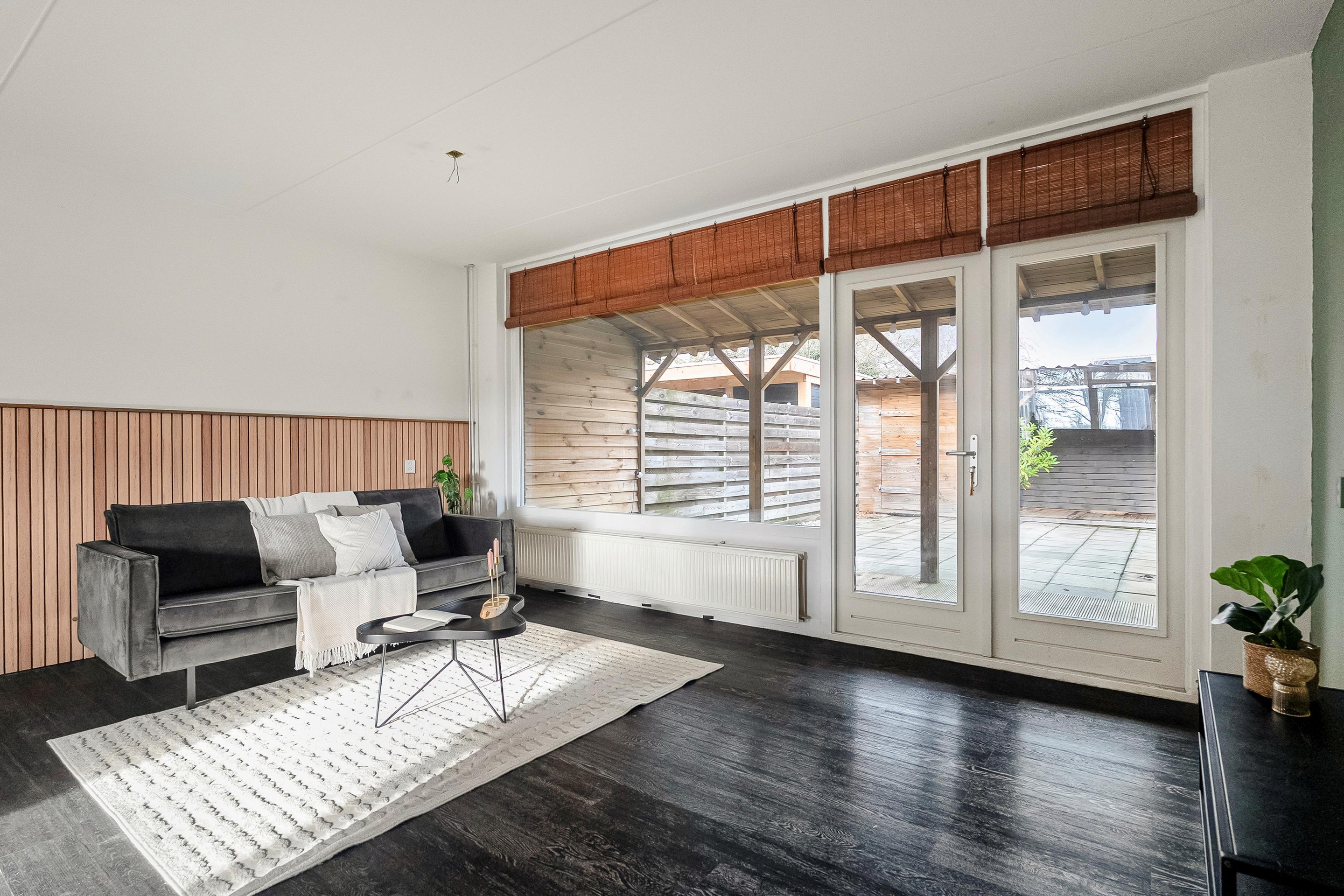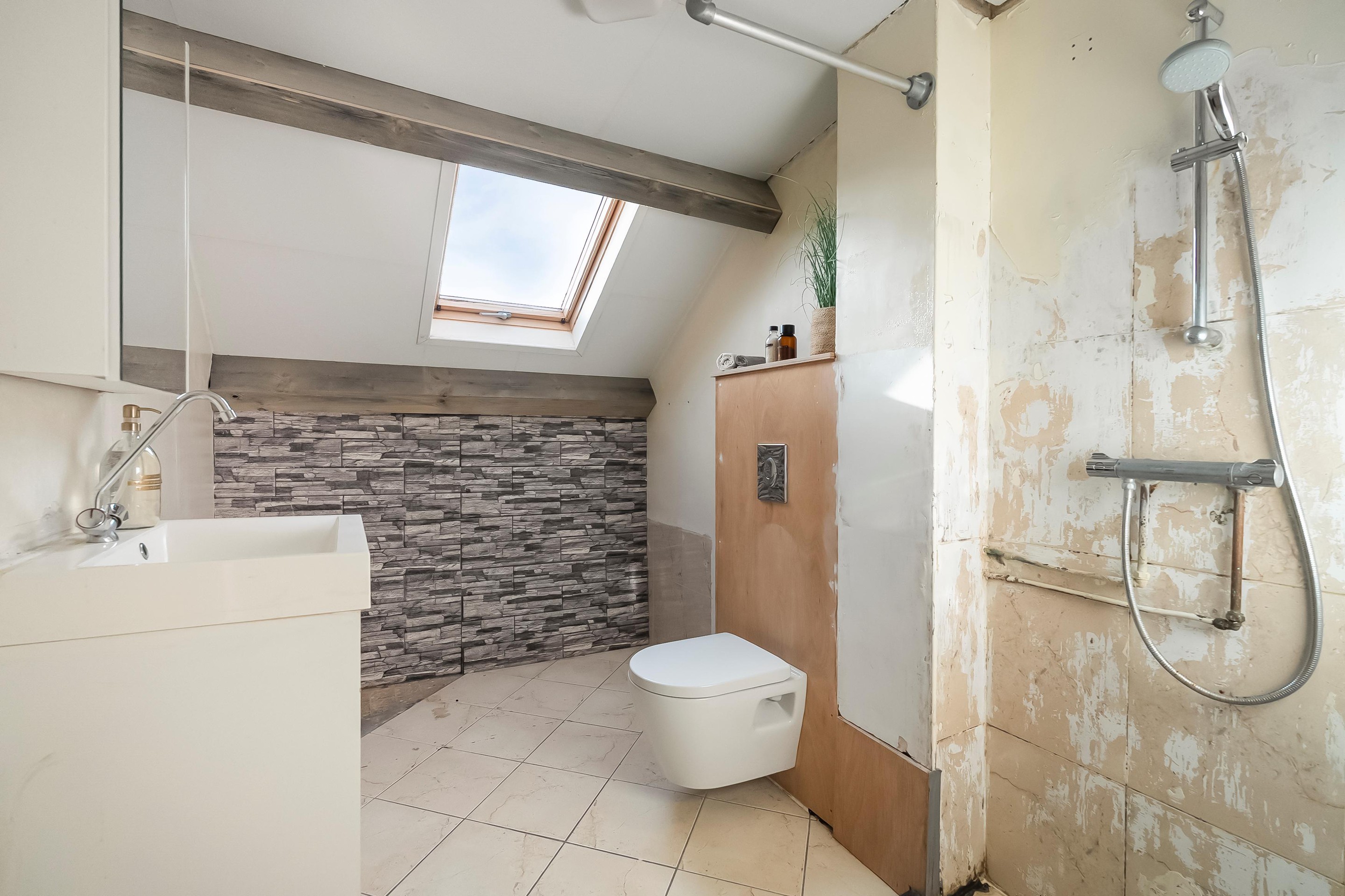 Parkeren op eigen grond, frontberging (ook inpandig bereikbaar) en entree woning. Entree woning in de hal met meterkast en toilet. Ruime living met tuingerichte woonkamer voorzien van dubbel openslaande tuindeuren naar de veranda en achtertuin. De (eenvoudige) keukenopstelling bevindt zich aan de voorzijde. Een plezierige en ruime opstelling die naar eigen wens opnieuw ingericht kan worden (zie impressiefoto) met een nieuwe keuken. Op de verdieping vind je 3 prima slaapkamers waar de hoofdslaapkamer aan de voorzijde toegang heeft tot een balkon. De badkamer is ook ruim van opzet, biedt de nodige aandacht en mooie kans om helemaal eigen te maken (zie impressie foto). Vanaf de overloop brengt een vaste trap je naar de tweede verdieping. Hier vind je een zeer ruime en vrij in te delen zolder waar je met gemak (zie foto) een vierde slaapkamer kunt realiseren naast de voorzolder waar je de CV opstelling een aansluitingen voor het witgoed vindt. De tuin achter de woning is vrij gelegen (geen achterburen) en toegankelijk via de dubbel openslaande tuindeuren vanuit de woonkamer. Aan de achtergevel van de woning is een veranda aangezet en achterin de tuin vind je een ruime houten tuinberging met overkapping.
