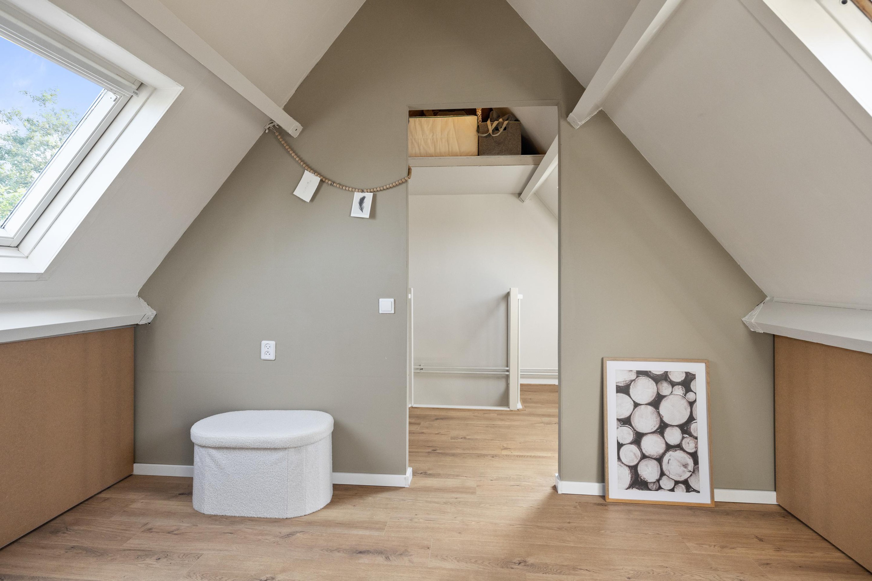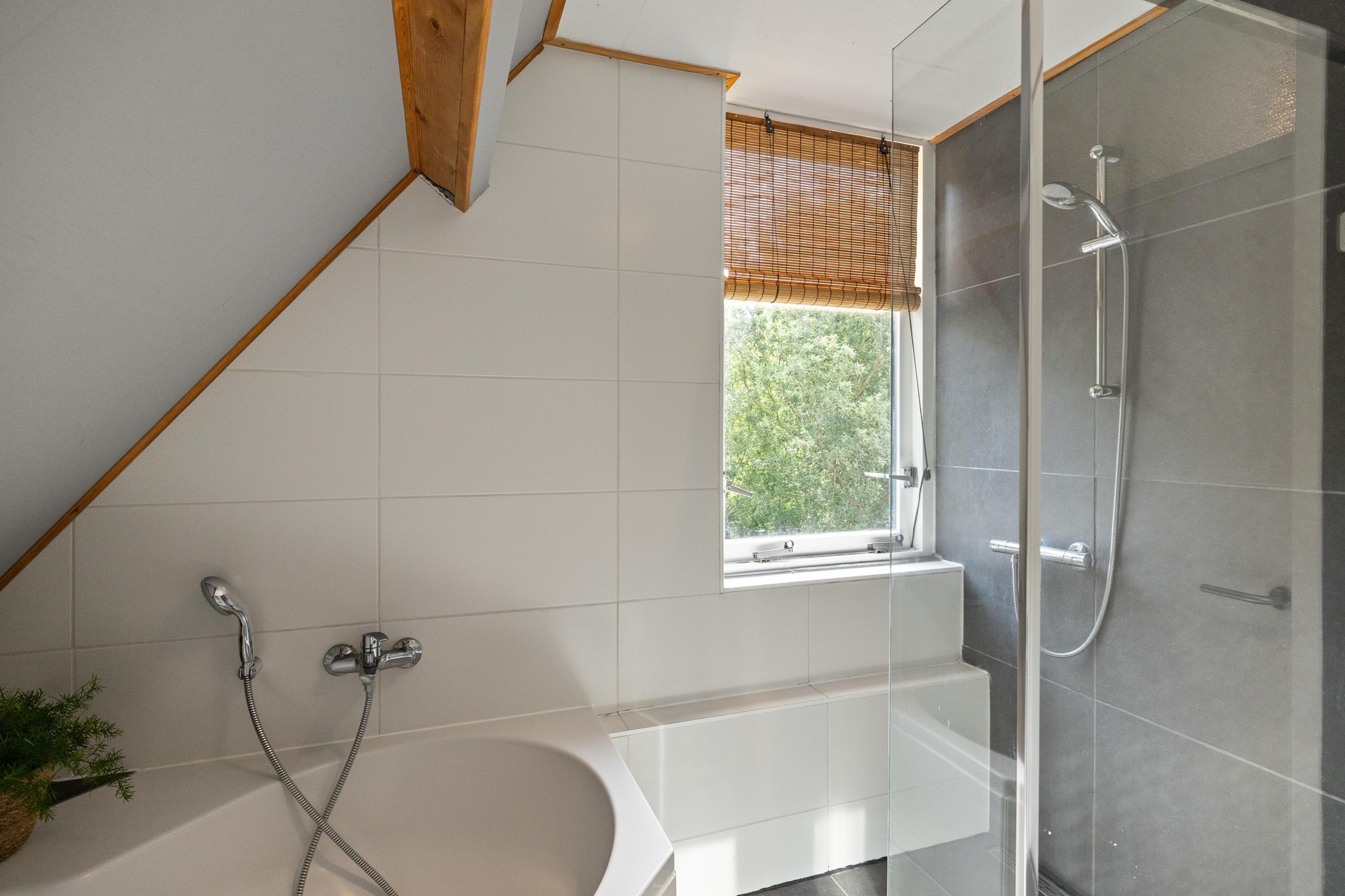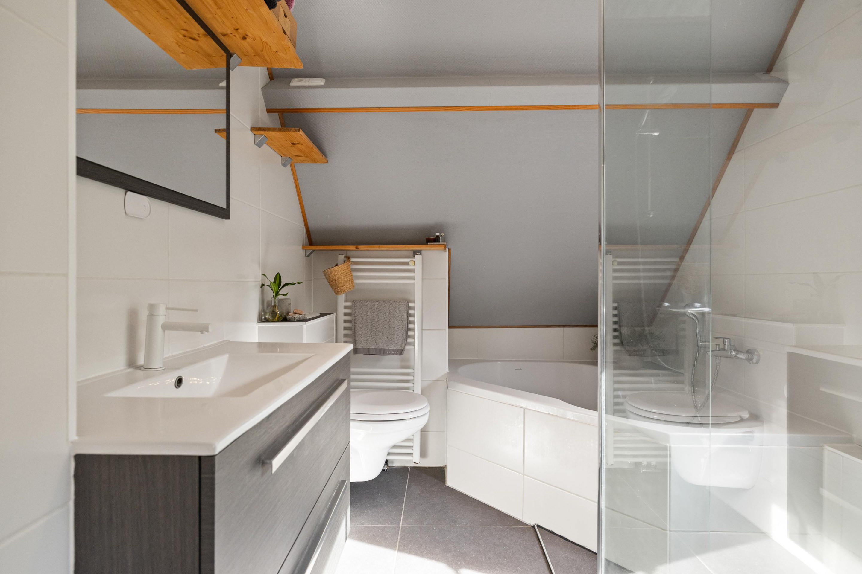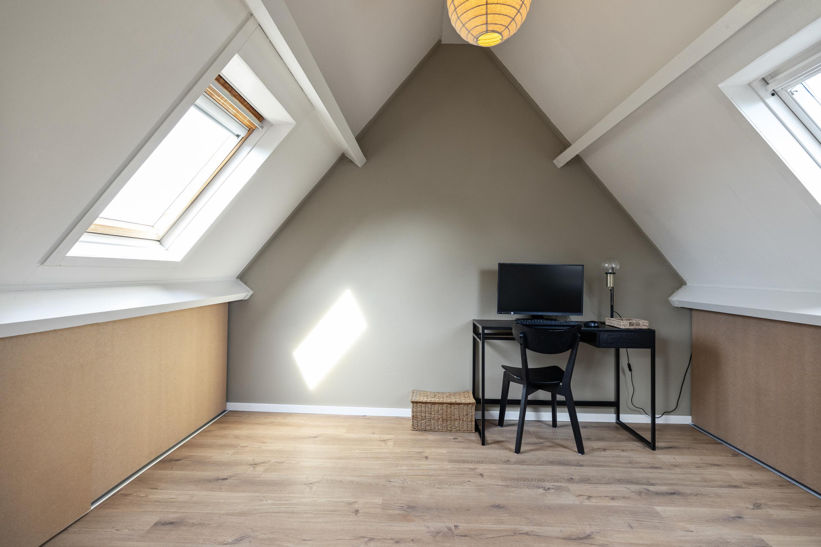 Voortuin, oprit met eigen parkeerplek, garage met elektrische deur en entree woning. Je komt de woning binnen in de hal met meterkast, trapopgang en het toilet. Vanuit de hal kom je in de lichte, L-vormige living met een ruime zithoek aan de voorzijde en een moderne, open inbouwkeuken (2019) aan de tuinzijde. De keuken is in een hoekopstelling geplaatst en voorzien van al het gewenste inbouwapparatuur. De begane grond is uitgevoerd met een fraaie houten vloer. Vanuit de keuken kom je via een praktische bijkeuken (met de aansluitingen voor het witgoed) inpandig in de garage en ook in de achtertuin. Op de eerste verdieping bereik je vanaf de overloop de 3 slaapkamers en badkamer op deze verdieping. Alle slaapkamers zijn voorzien van een fraaie laminaatvloer en veel lichtinval door de grote velux dakramen en aan de voorzijde een dakkapel. De geheel betegelde badkamer is meer dan volledig ingericht. Je vindt hier een hoekbad, wastafelmeubel, douchecabine en een tweede toilet. De vaste trap vanaf de overloop naar de tweede verdieping komt uit op een voorzolder die toegang biedt naar de vierde slaapkamer, ook weer voorzien van grote dakramen. De tuin achter de woning geeft een fijn gevoel van privacy, middenin het groen. Er is hier meer dan voldoende ruimte voor de groene vingers, spelen en terrassen. Door de afmetingen en gunstige ligging vind je in deze tuin altijd een plekje in de zon of als het te warm is in de schaduw. Een hele fijne plek om na een dag hard werken te ontspannen.