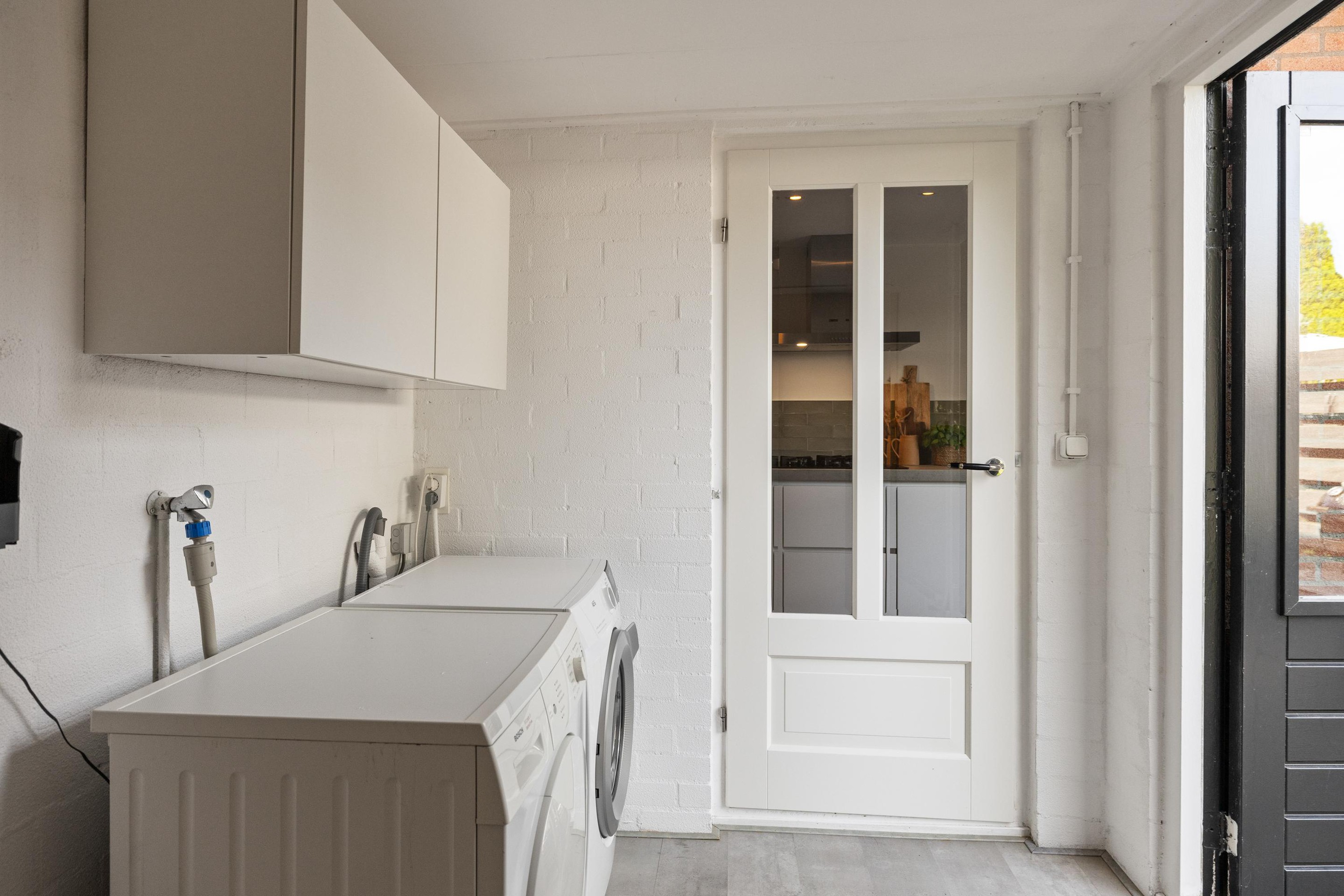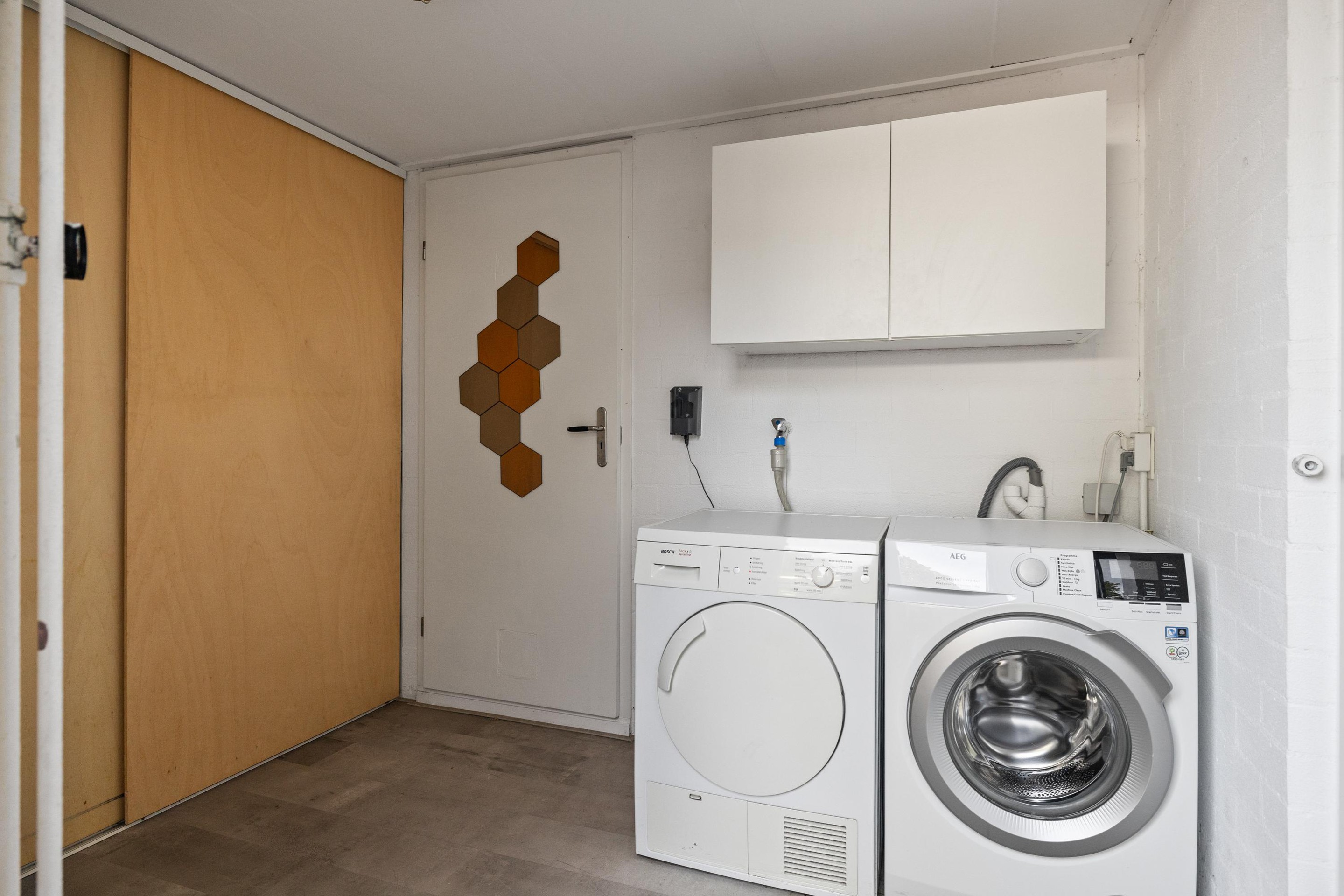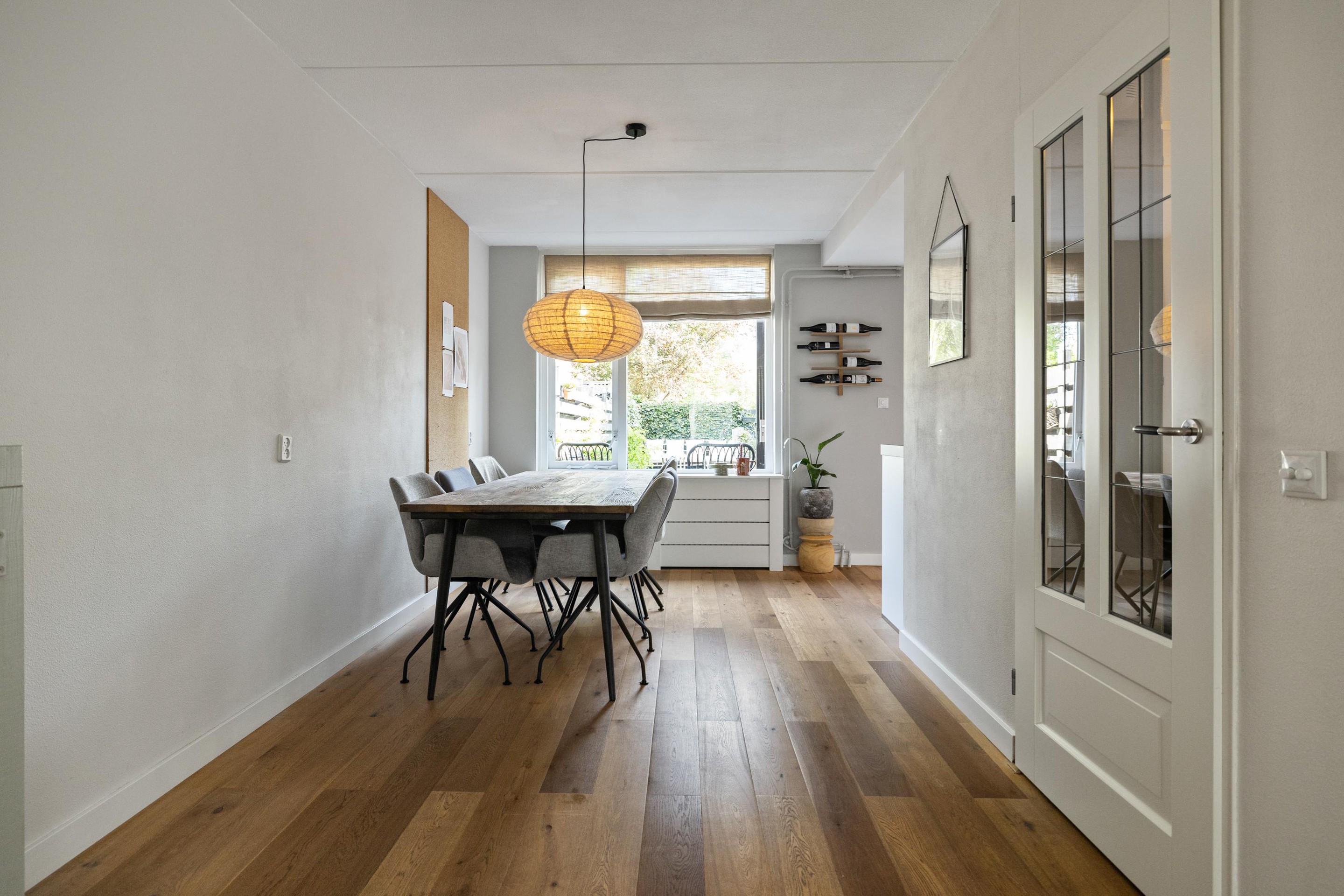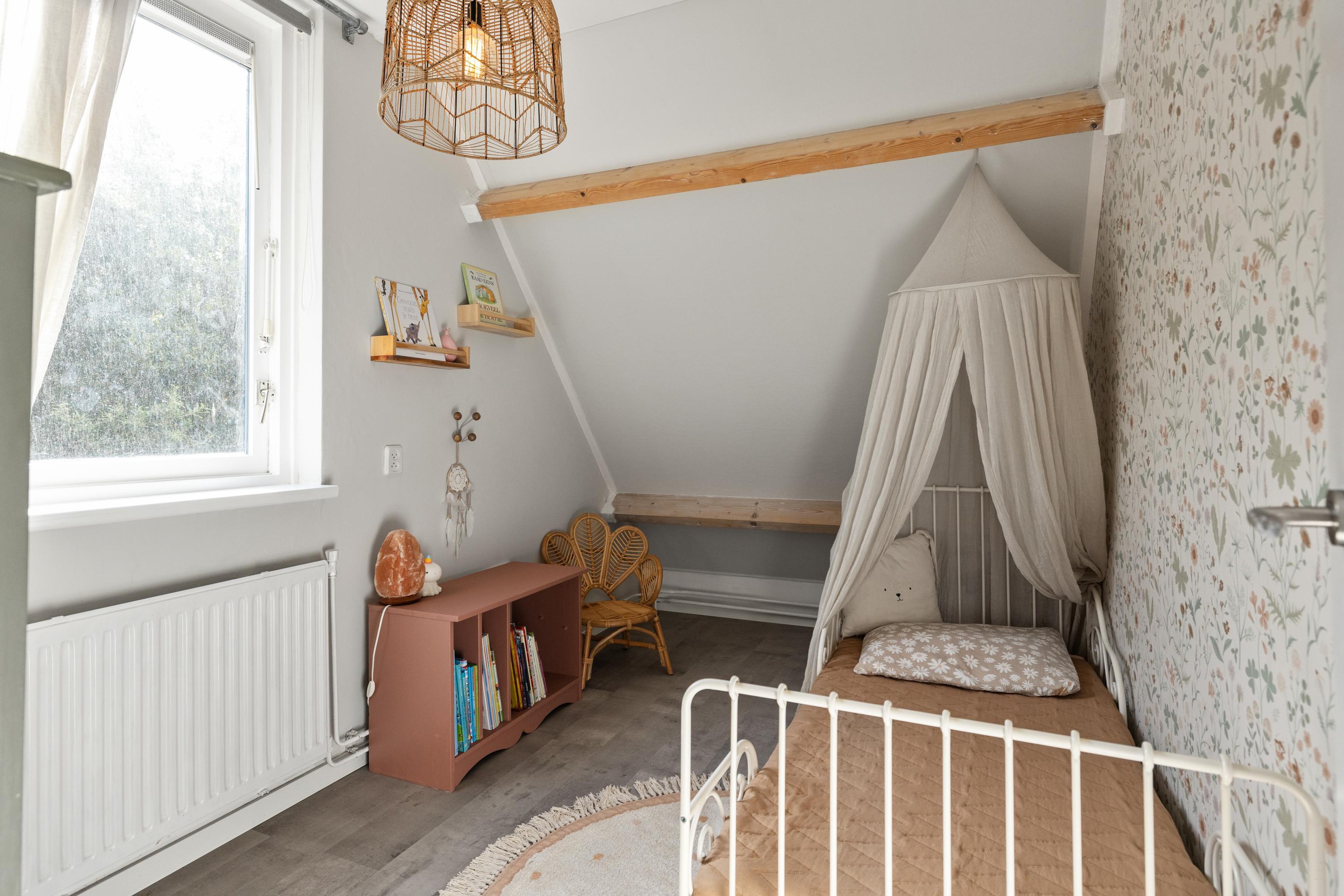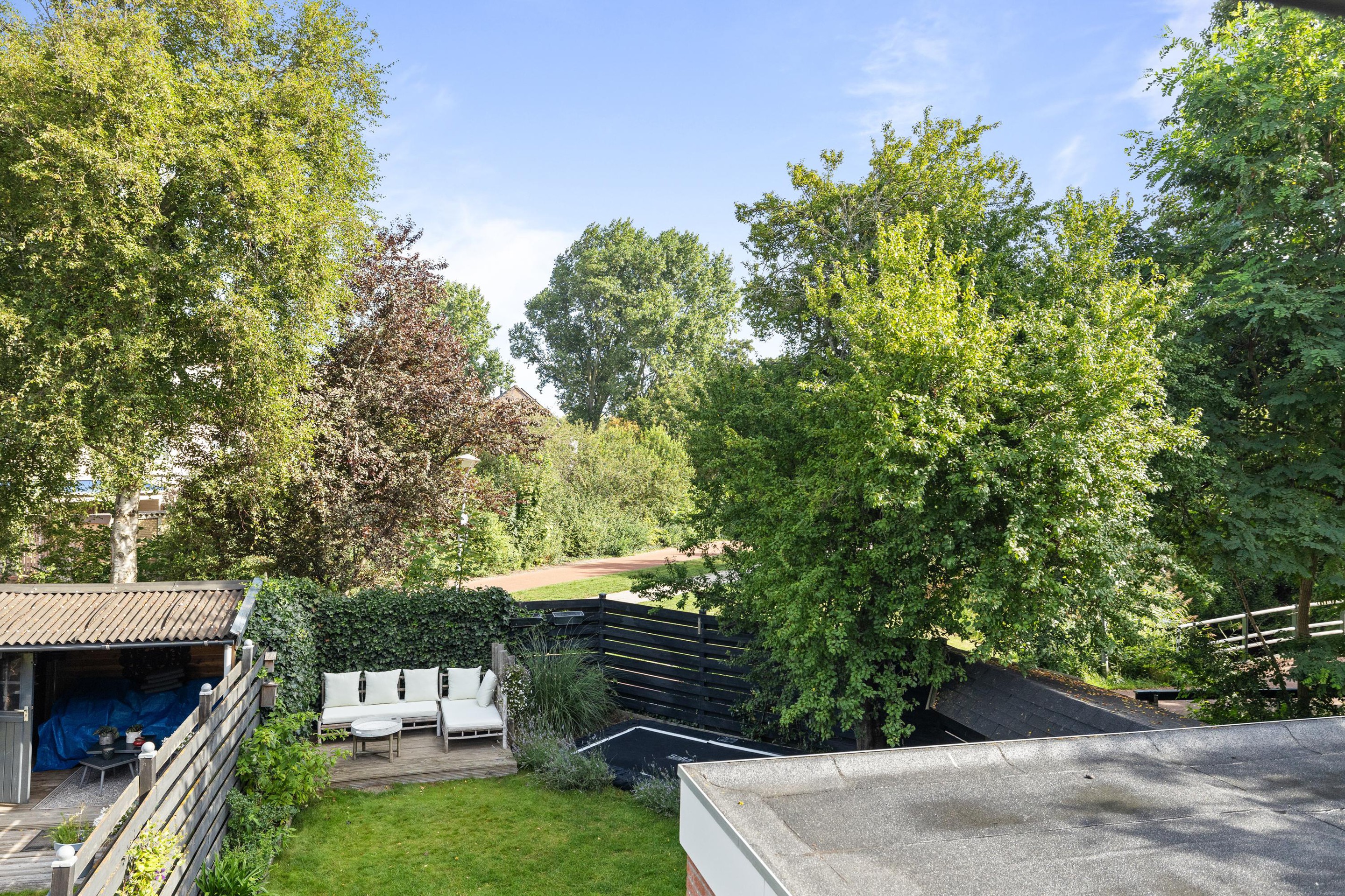 Voortuin, oprit met eigen parkeerplek, garage met elektrische deur en entree woning. Je komt de woning binnen in de hal met meterkast, trapopgang en het toilet. Vanuit de hal kom je in de lichte, L-vormige living met een ruime zithoek aan de voorzijde en een moderne, open inbouwkeuken (2019) aan de tuinzijde. De keuken is in een hoekopstelling geplaatst en voorzien van al het gewenste inbouwapparatuur. De begane grond is uitgevoerd met een fraaie houten vloer. Vanuit de keuken kom je via een praktische bijkeuken (met de aansluitingen voor het witgoed) inpandig in de garage en ook in de achtertuin. Op de eerste verdieping bereik je vanaf de overloop de 3 slaapkamers en badkamer op deze verdieping. Alle slaapkamers zijn voorzien van een fraaie laminaatvloer en veel lichtinval door de grote velux dakramen en aan de voorzijde een dakkapel. De geheel betegelde badkamer is meer dan volledig ingericht. Je vindt hier een hoekbad, wastafelmeubel, douchecabine en een tweede toilet. De vaste trap vanaf de overloop naar de tweede verdieping komt uit op een voorzolder die toegang biedt naar de vierde slaapkamer, ook weer voorzien van grote dakramen. De tuin achter de woning geeft een fijn gevoel van privacy, middenin het groen. Er is hier meer dan voldoende ruimte voor de groene vingers, spelen en terrassen. Door de afmetingen en gunstige ligging vind je in deze tuin altijd een plekje in de zon of als het te warm is in de schaduw. Een hele fijne plek om na een dag hard werken te ontspannen.