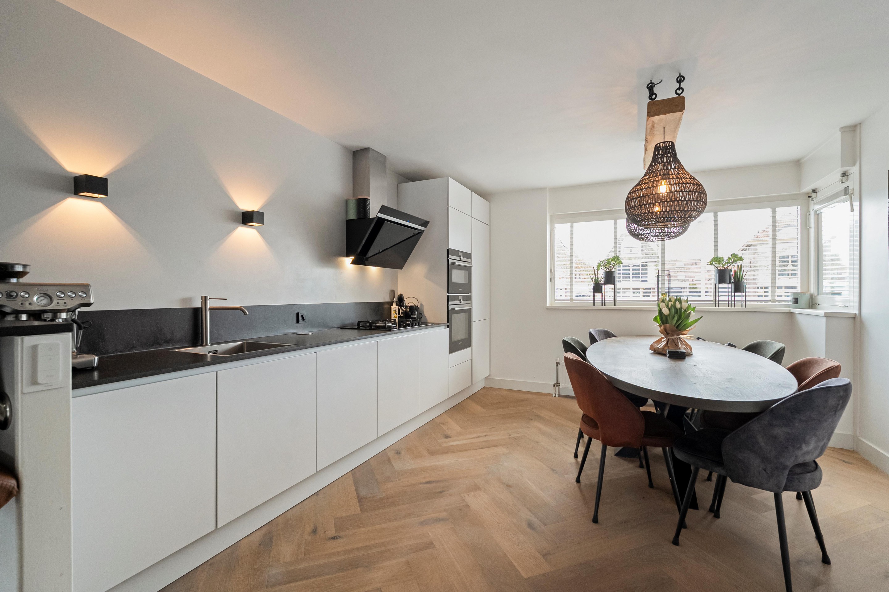 Binnenkomen is het ervaren van ruimte. De begane grond is royaal, strak en tegelijkertijd sfeervol afgewerkt. De living strekt zich uit over de volle breedte van maar liefst 8 meter en baadt in het daglicht door de vele glaspartijen. Strak gestucte wanden en plafonds, een Eiken visgraat vloer en een gashaard als warm middelpunt van de zitkamer maken dit een plek waar je het hele jaar door graag thuiskomt. De openslaande tuindeuren zorgen voor een naadloze overgang naar buiten, precies zoals je het wenst. Aan de voorzijde ligt de leefkeuken, en die doet zijn naam eer aan. Hier kook, eet en tafel je na. De moderne inbouwkeuken is van alle gemakken voorzien en biedt daarnaast alle ruimte voor een grote eettafel waar avonden moeiteloos langer worden dan gepland.