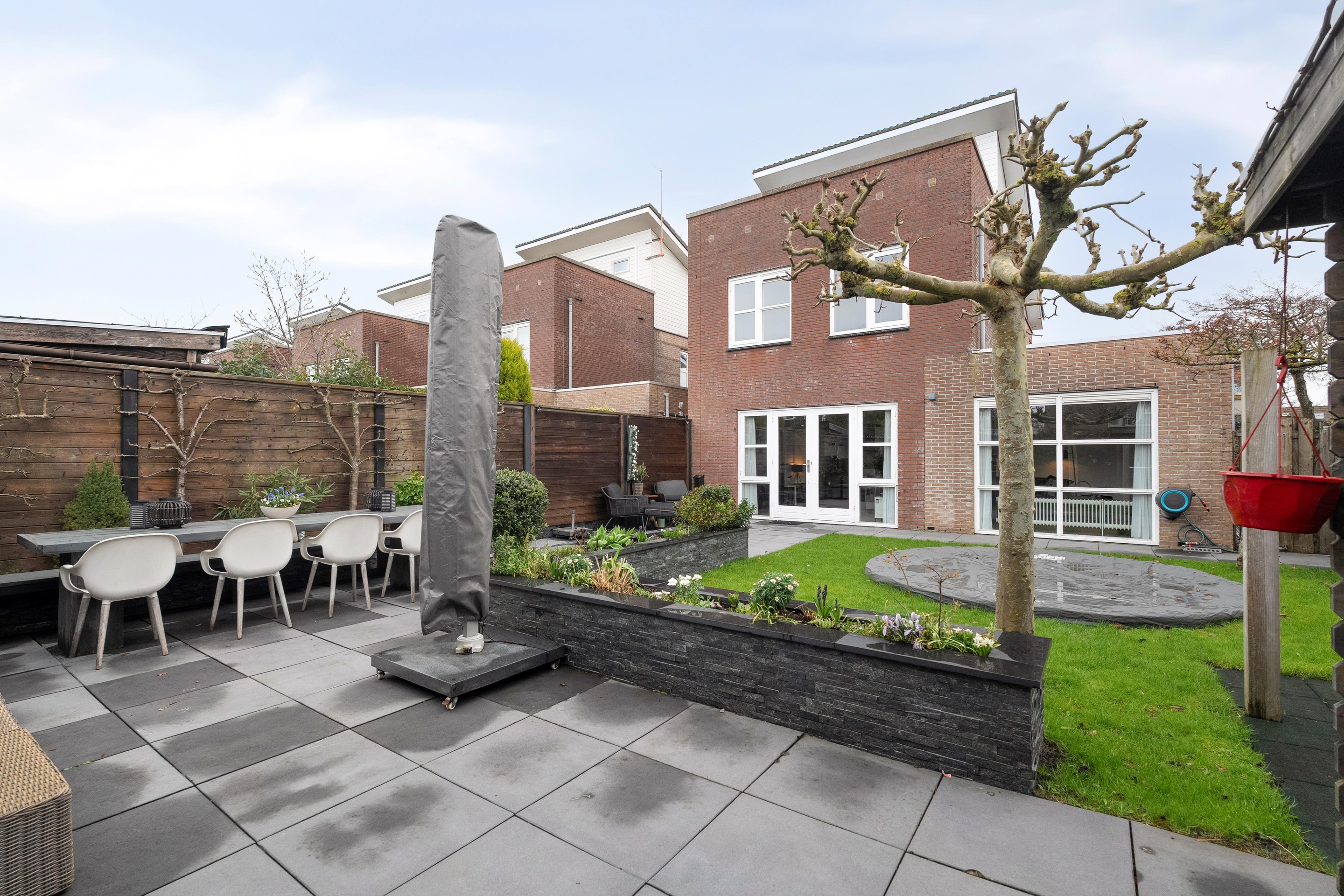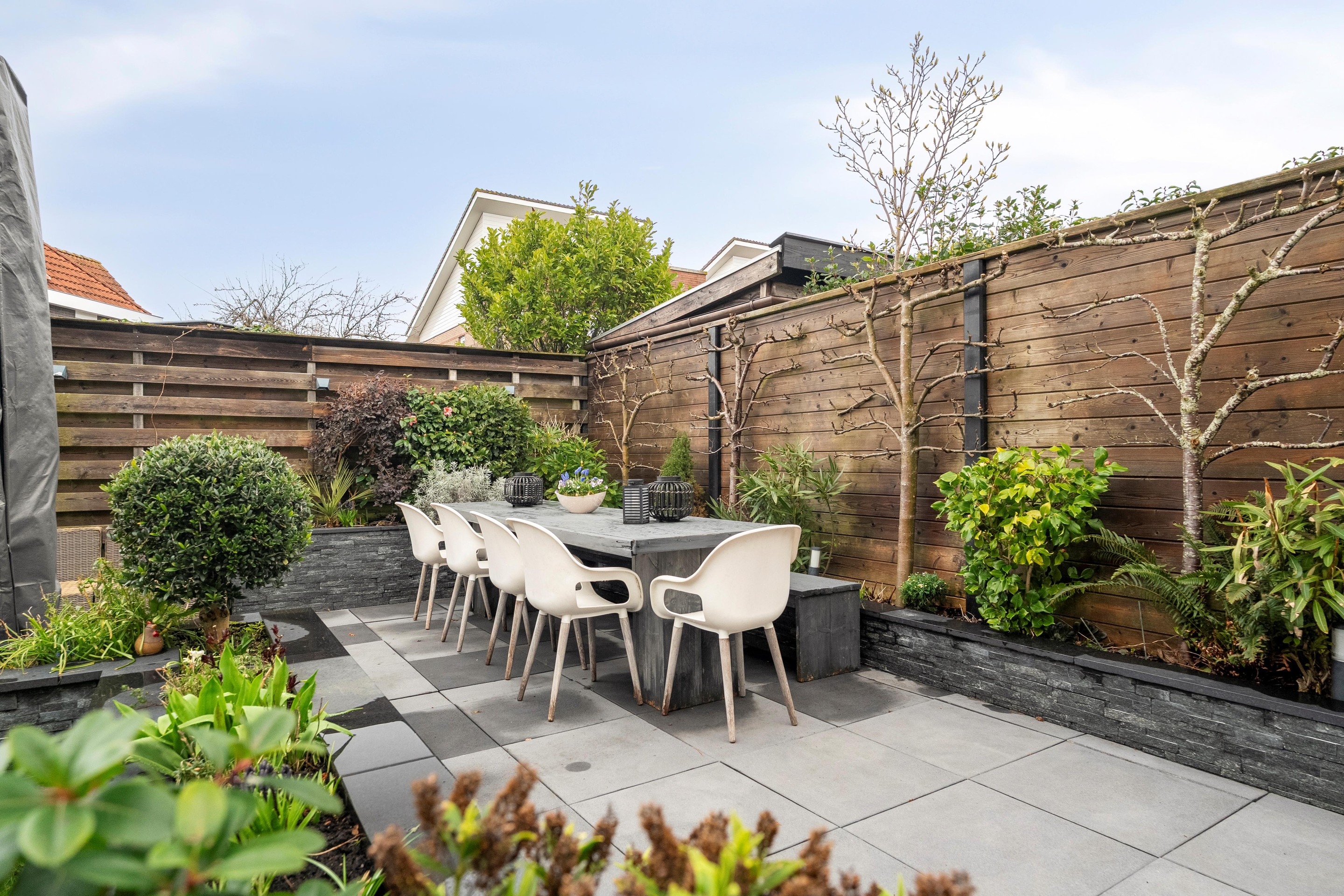 De achtertuin is met zorg aangelegd en dat zie je. Meerdere terrassen, groenblijvende borders en een gazon zorgen voor balans tussen spelen en ontspannen. Kinderen hebben hier de ruimte, terwijl jij geniet van zon en privacy. Achterin staat een praktische berging en via de zijkant van de woning is de tuin ook handig bereikbaar.