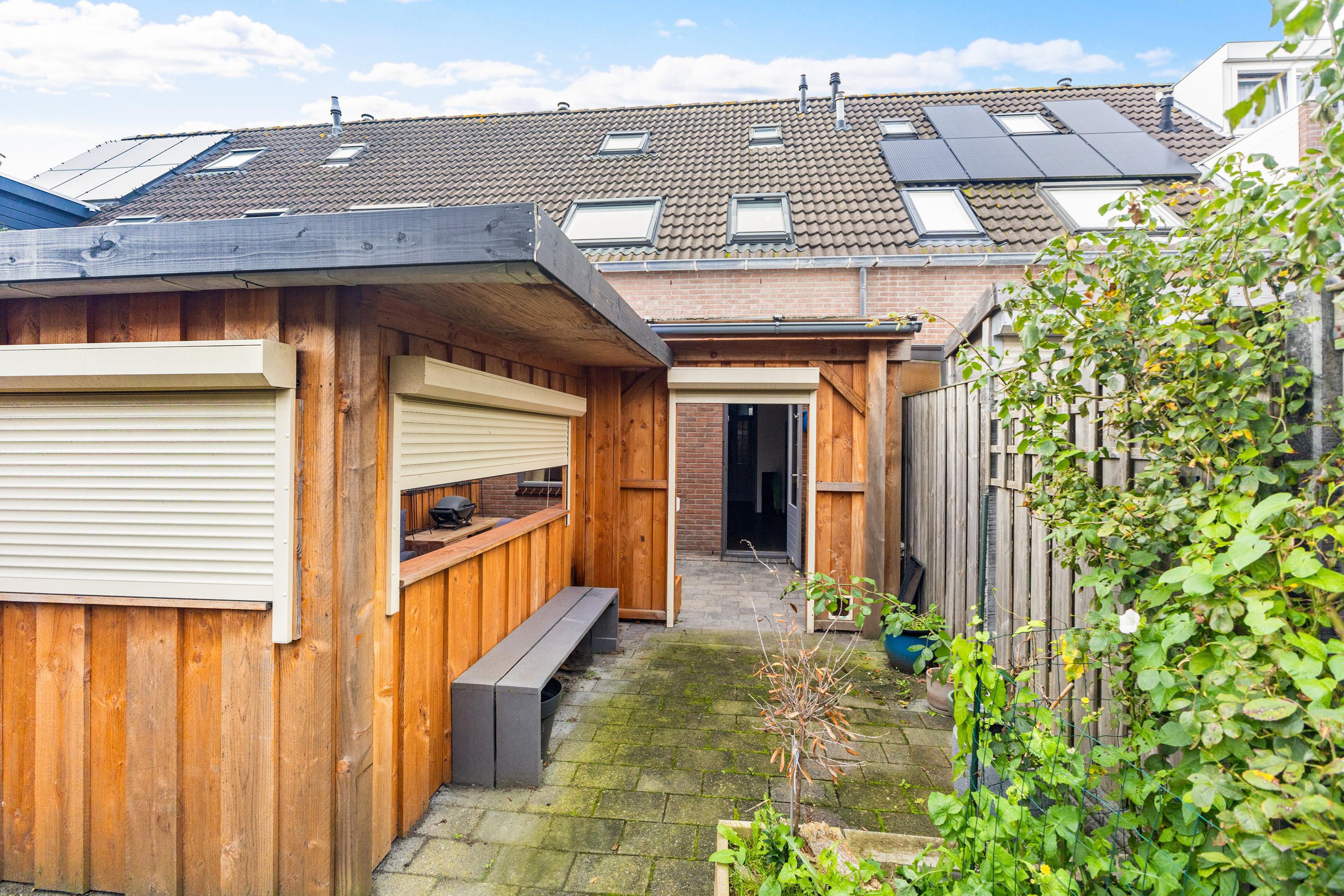 De achtertuin ligt op het oosten en beschikt over een ruime overkapping. Aan de voorzijde van de woning bevindt zich bovendien een praktische stenen berging.