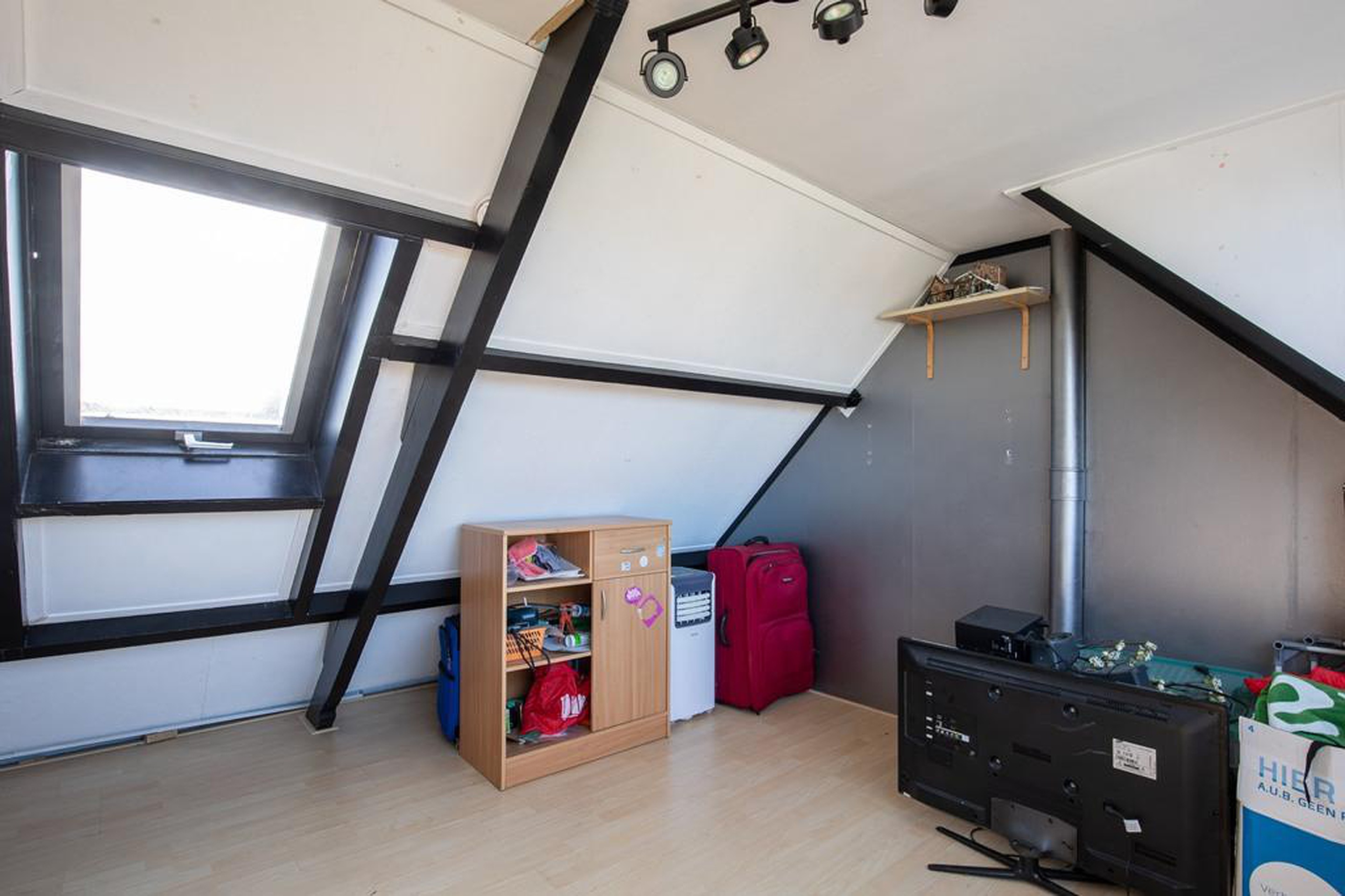 De bovenste etage herbergt een derde slaapkamer, eveneens met dakkapel en bergruimte. Hier staat ook de CV-ketel opgesteld (Nefit, 2022). Een ideale kamer als logeer- of werkkamer, maar ook perfect als master bedroom.