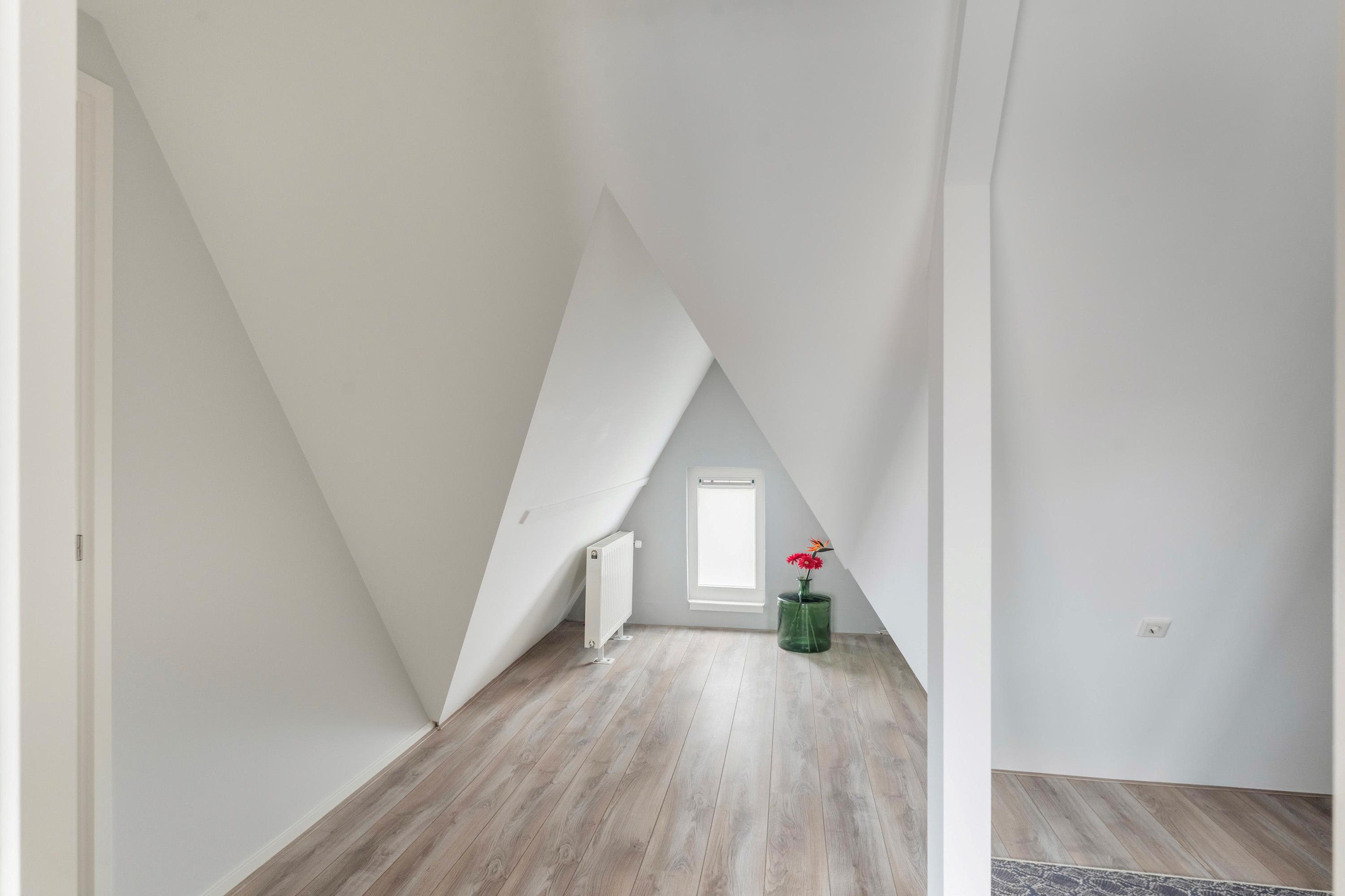 De 2e verdieping is voorzien van een grote dakkapel aan de achterzijde, waardoor er twee zeer ruime slaapkamers aanwezig zijn. Welke beiden voorzien zijn van isolatieglas, moderne vloeren, strak afgewerkte wanden en zonwering. De overloop is ruim opgezet en biedt toegang tot een handige walk-in closet.