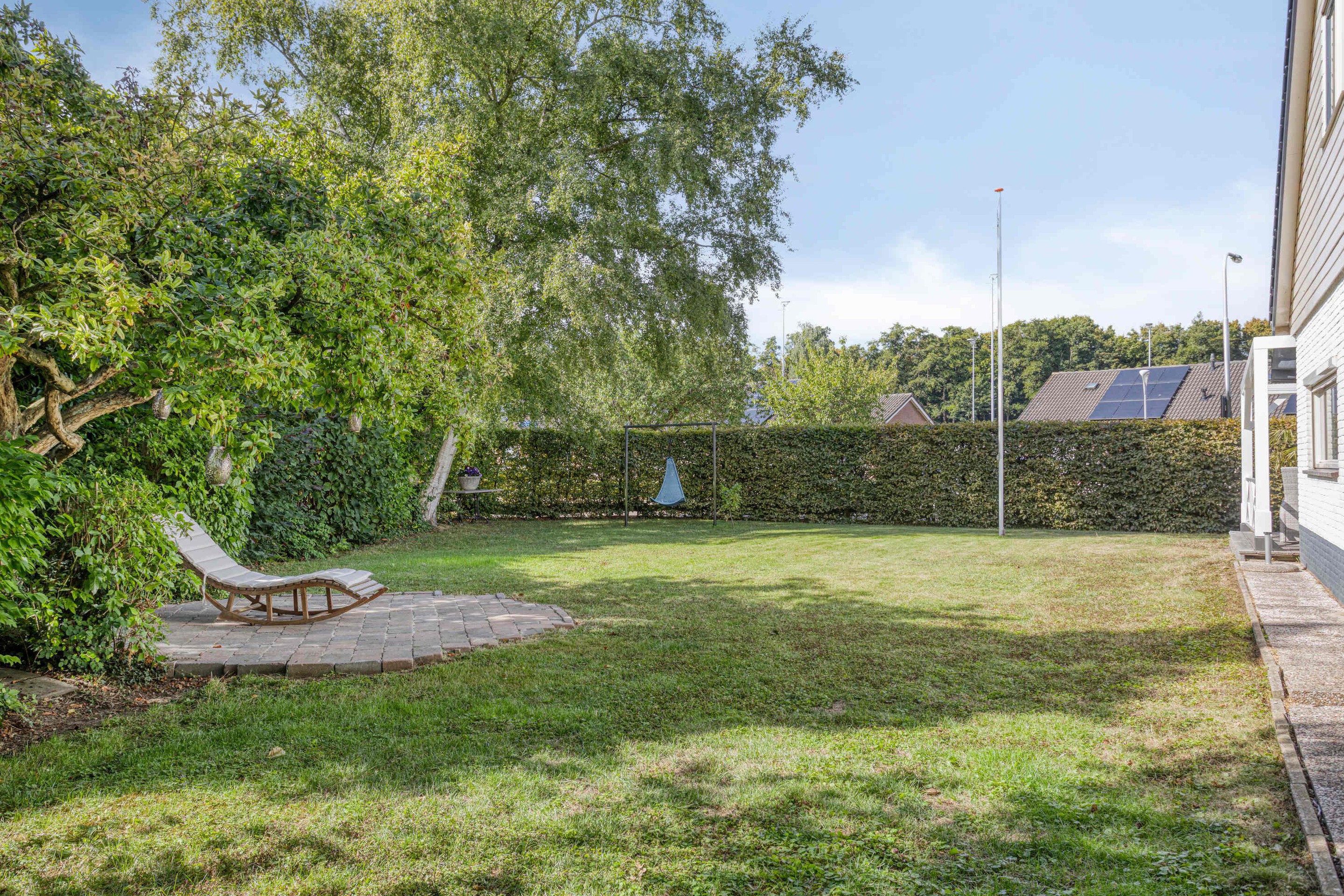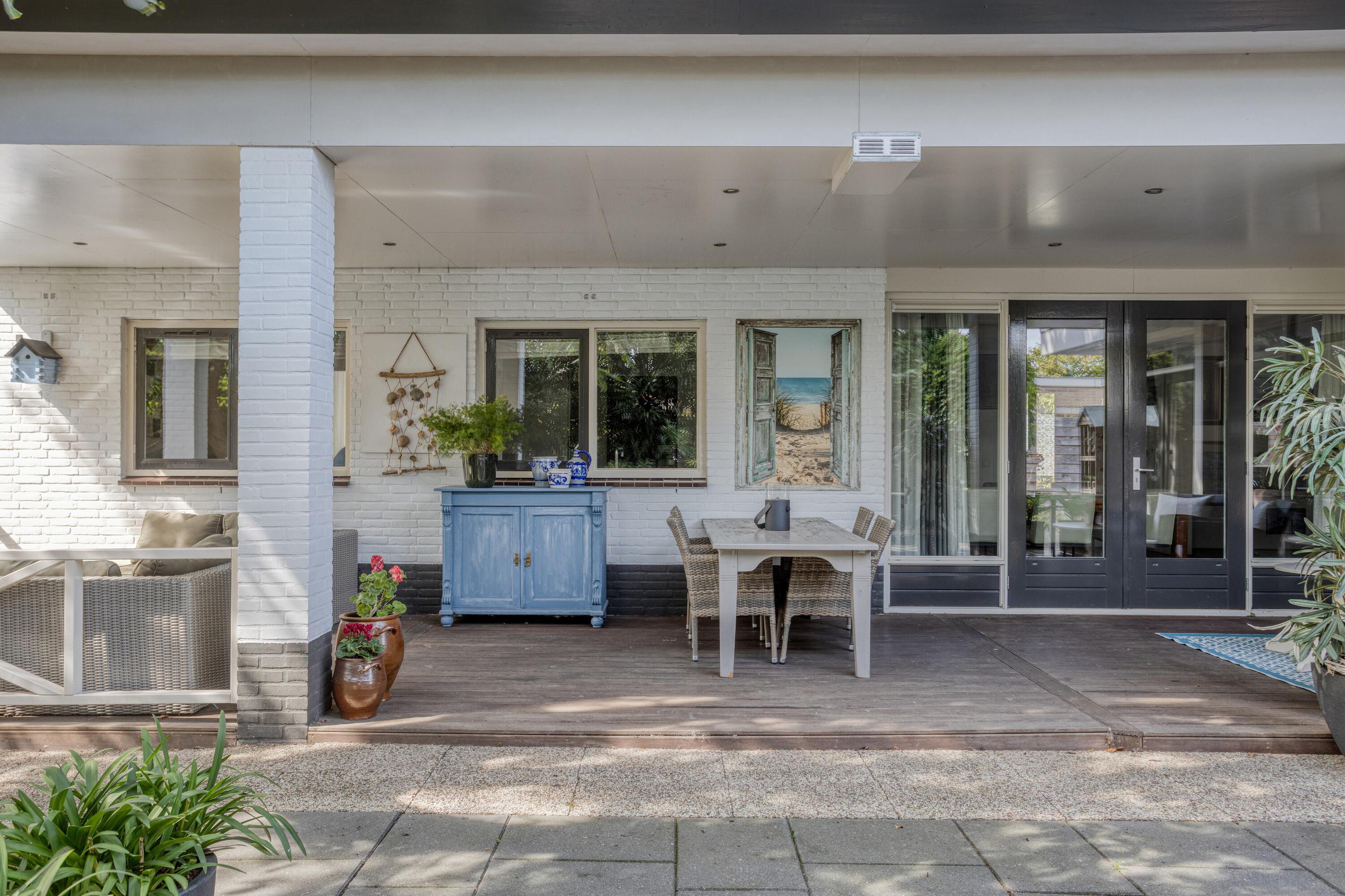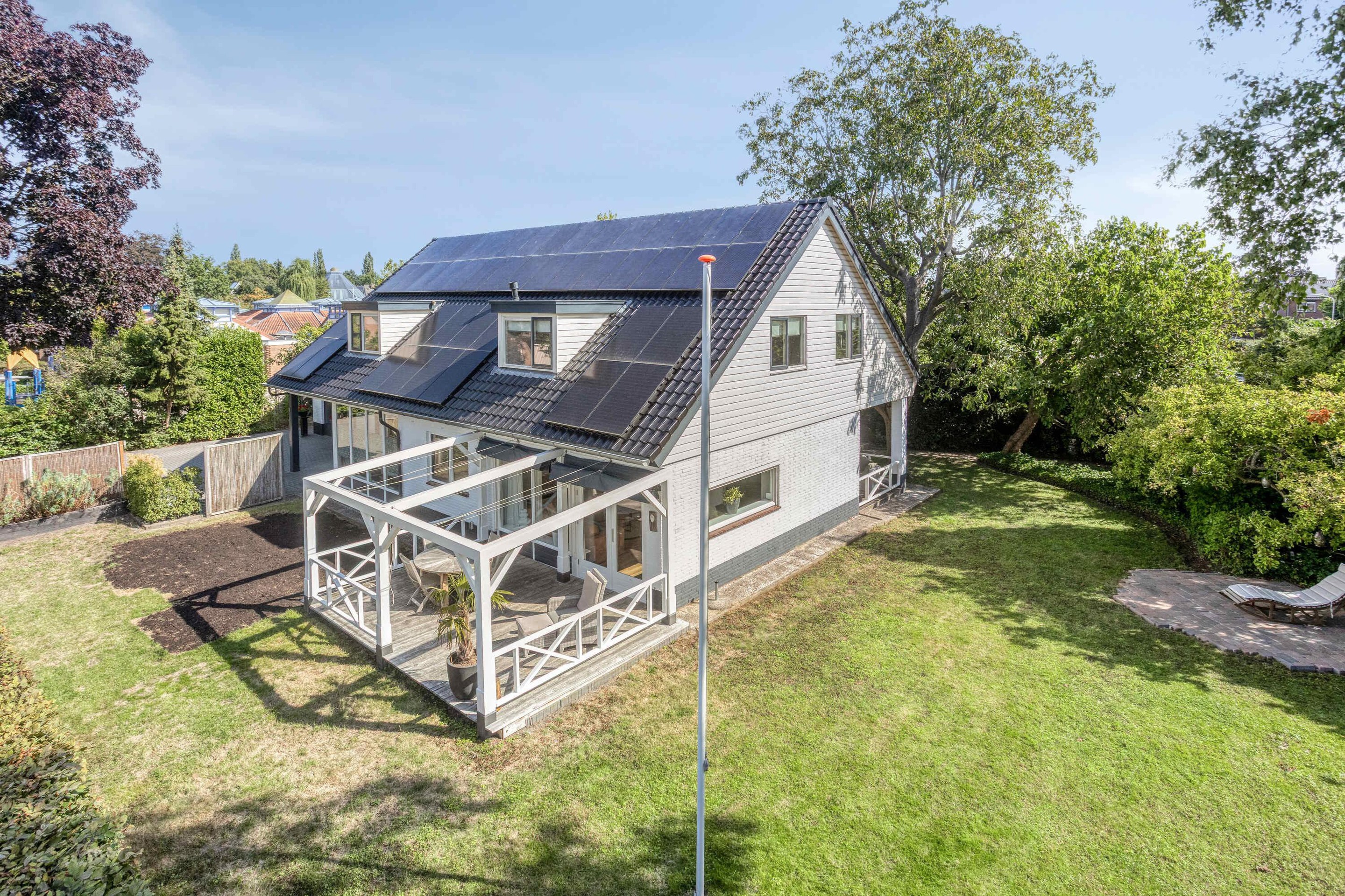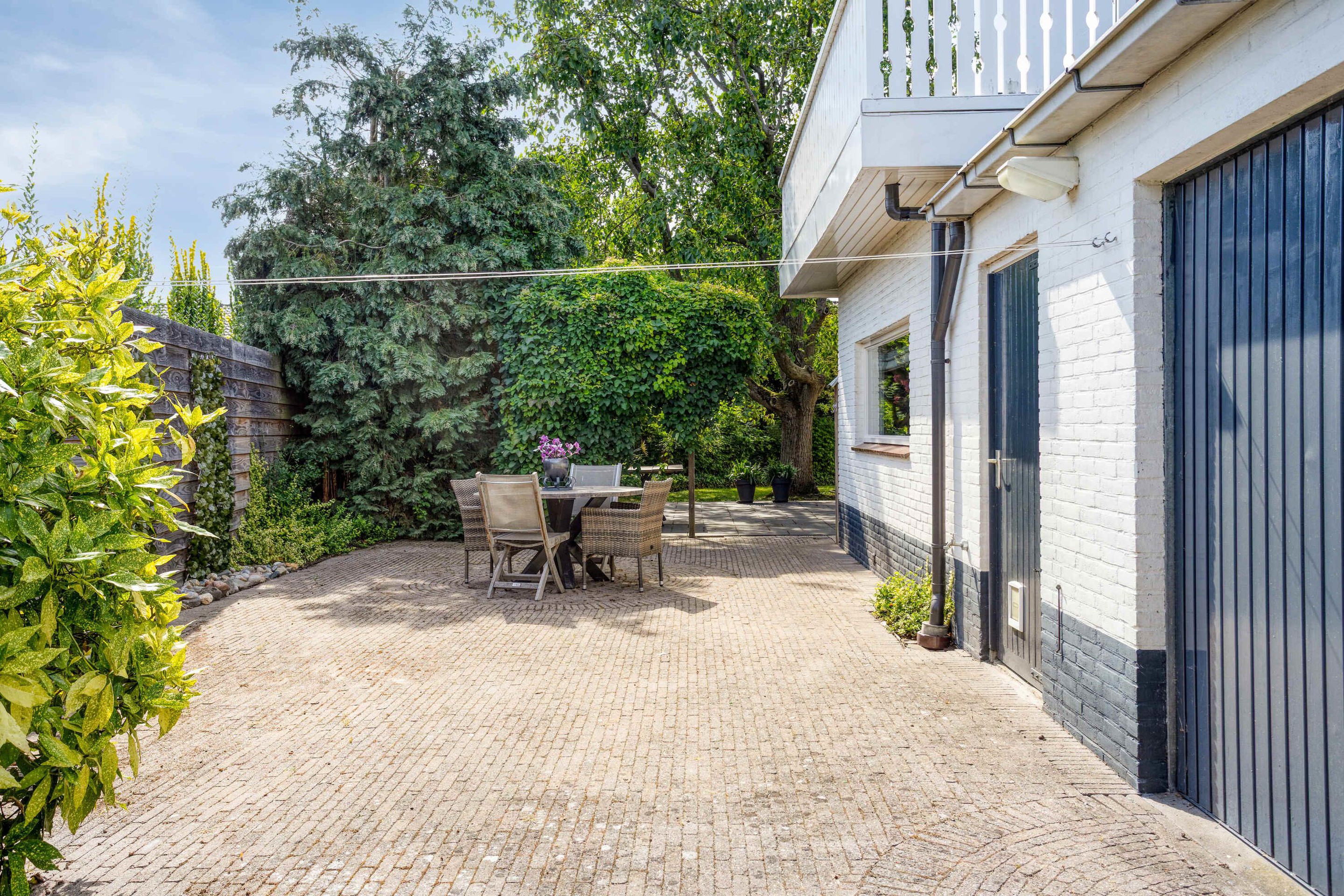 De tuin rondom de woning biedt volop privacy en groen, mede dankzij de gunstige hoekligging en lage bebouwing in de directe omgeving. Dankzij de verschillende terrassen – waaronder een overdekt terras direct grenzend aan de woonkamer – is er altijd een fijne plek om te zitten. De royale oprit biedt ruimte aan meerdere auto’s en de indeling van de woning zorgt ervoor dat je aan alle kanten verbonden bent met buiten.