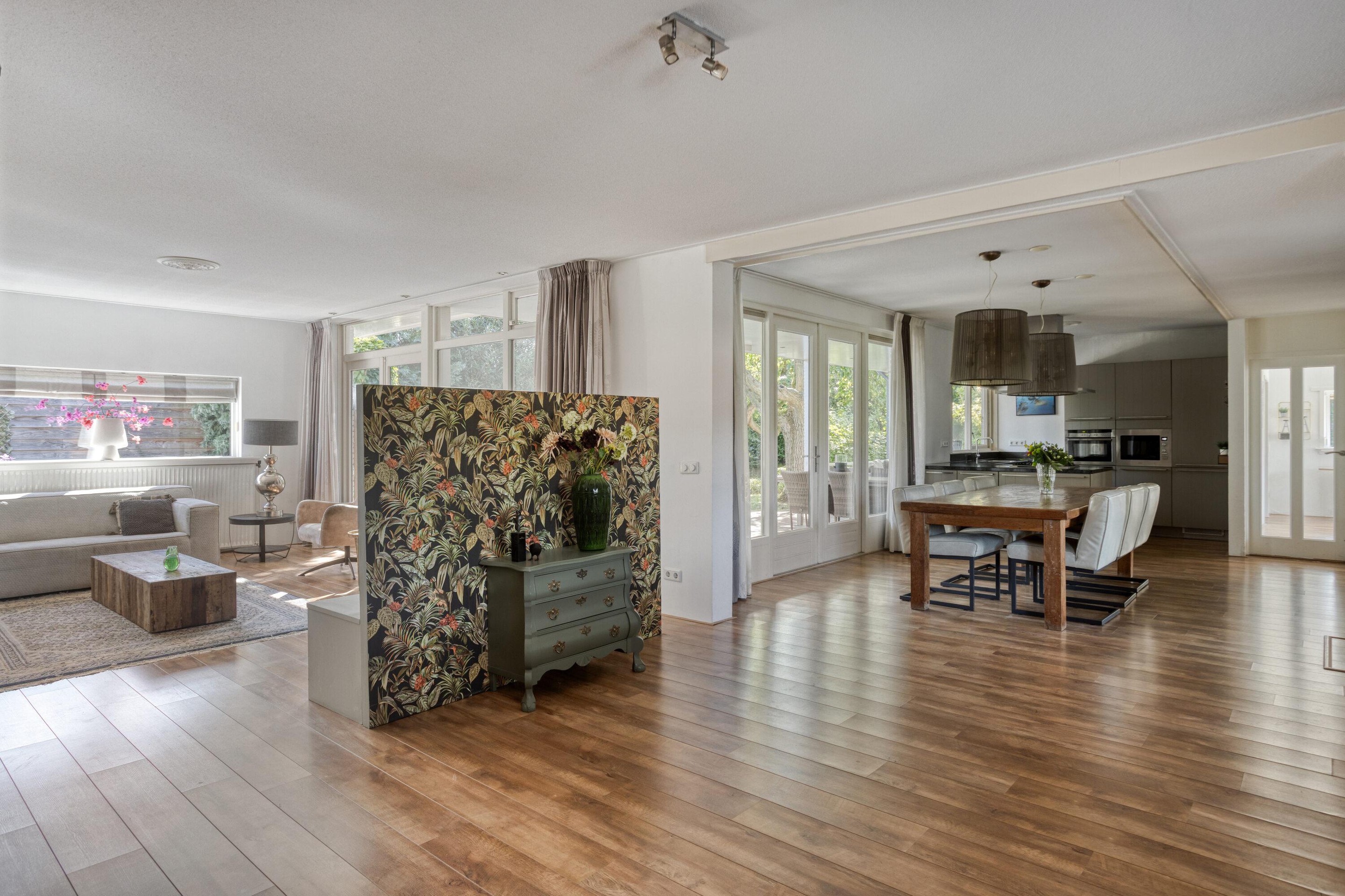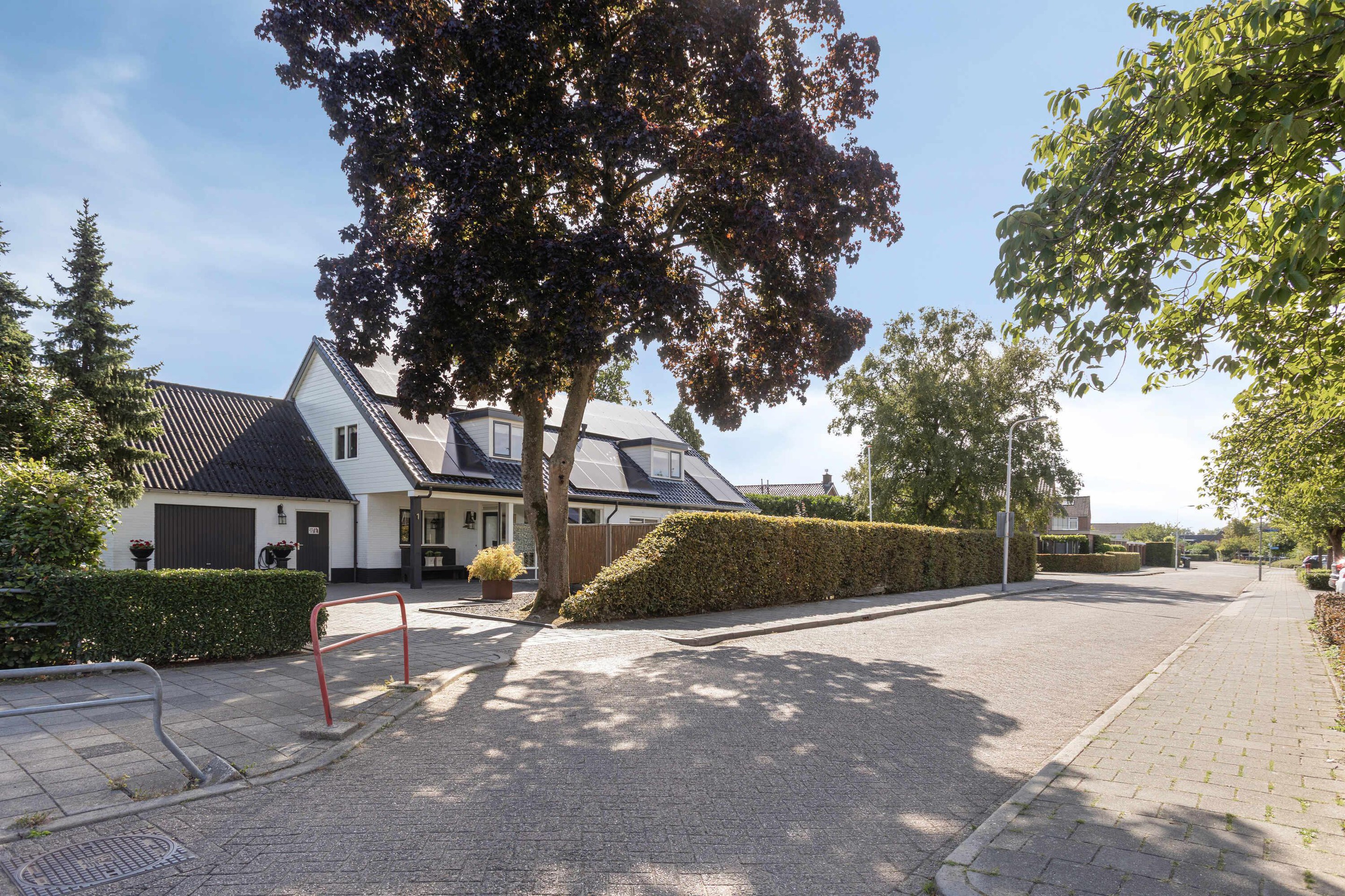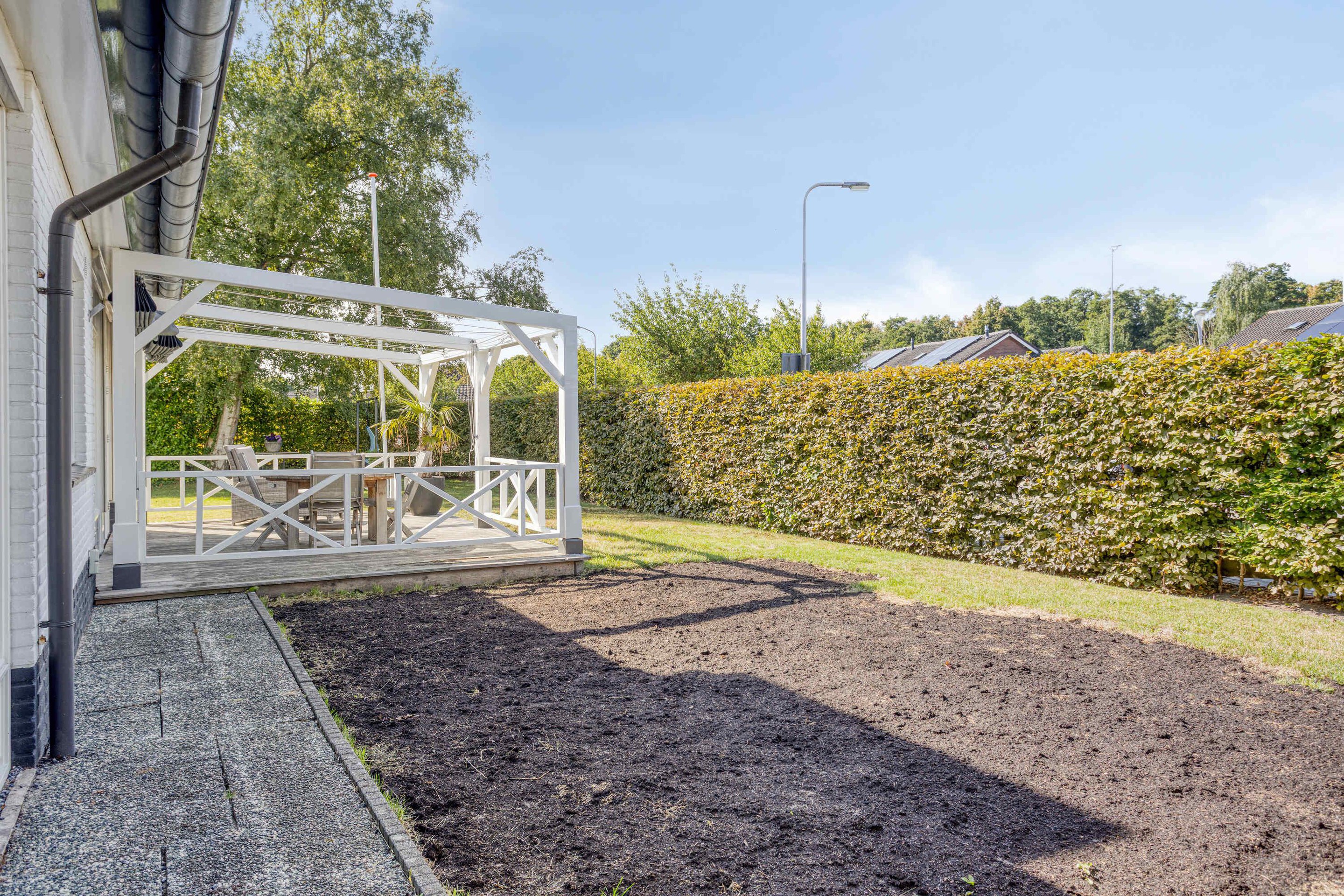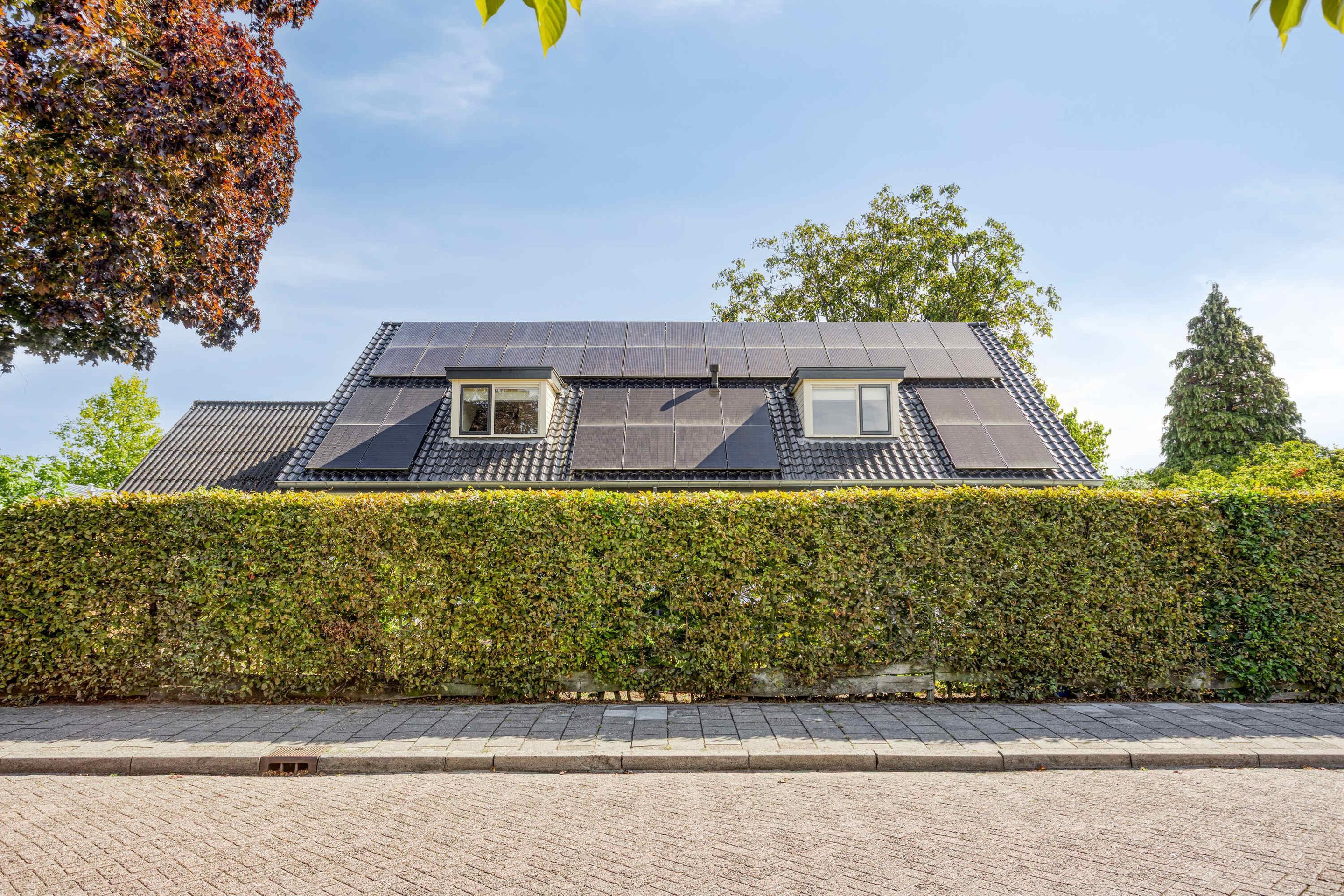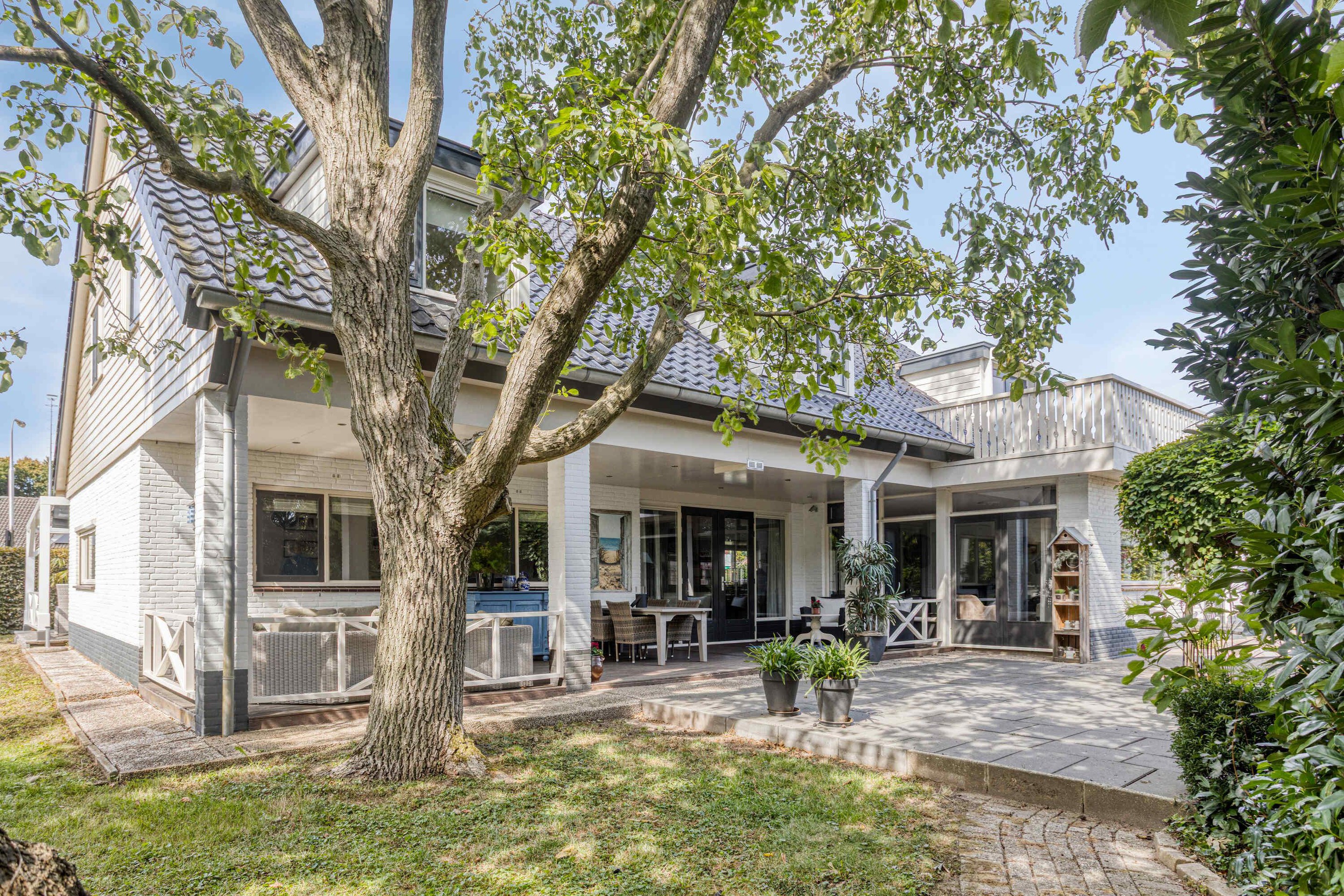 De tuin rondom de woning biedt volop privacy en groen, mede dankzij de gunstige hoekligging en lage bebouwing in de directe omgeving. Dankzij de verschillende terrassen – waaronder een overdekt terras direct grenzend aan de woonkamer – is er altijd een fijne plek om te zitten. De royale oprit biedt ruimte aan meerdere auto’s en de indeling van de woning zorgt ervoor dat je aan alle kanten verbonden bent met buiten.