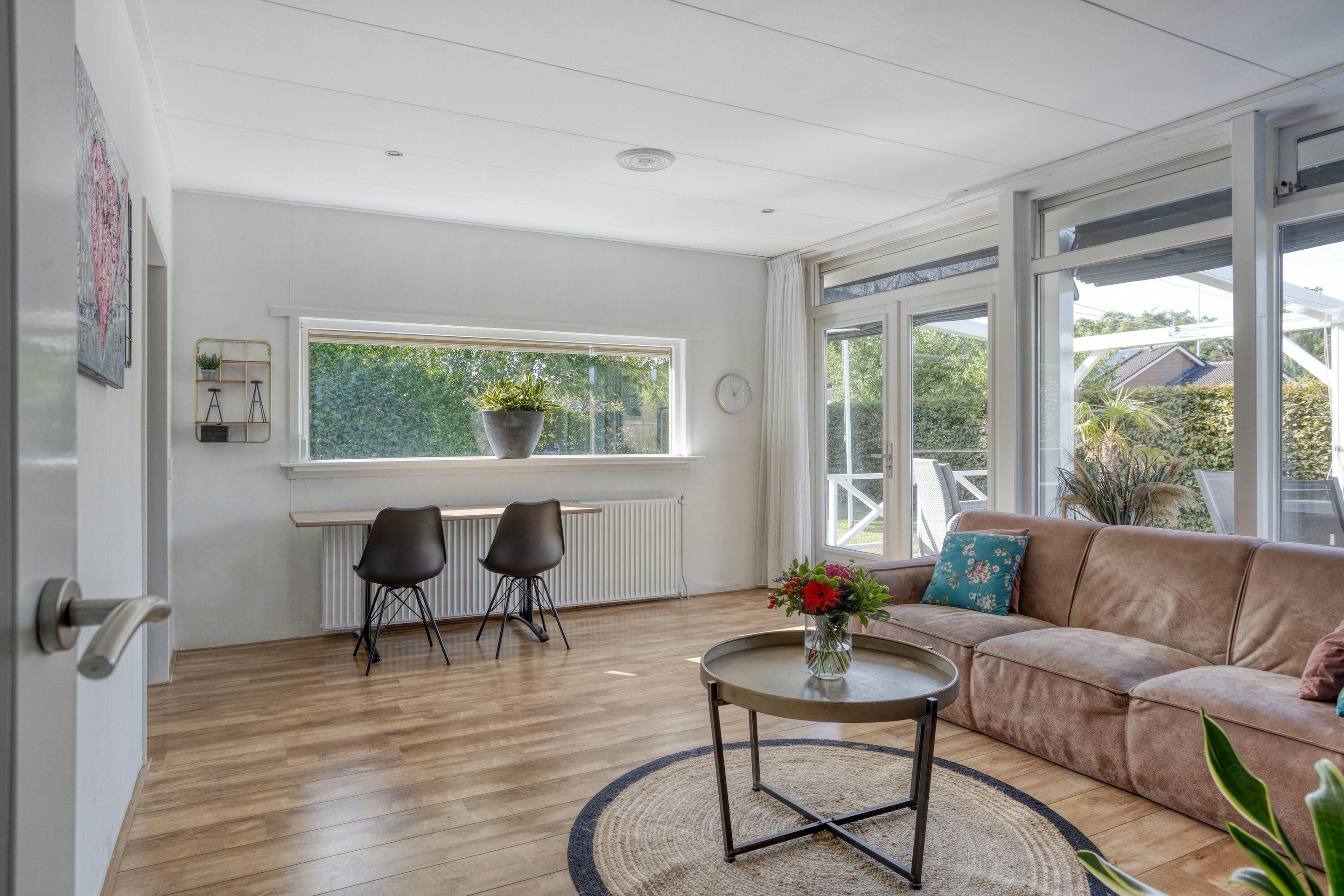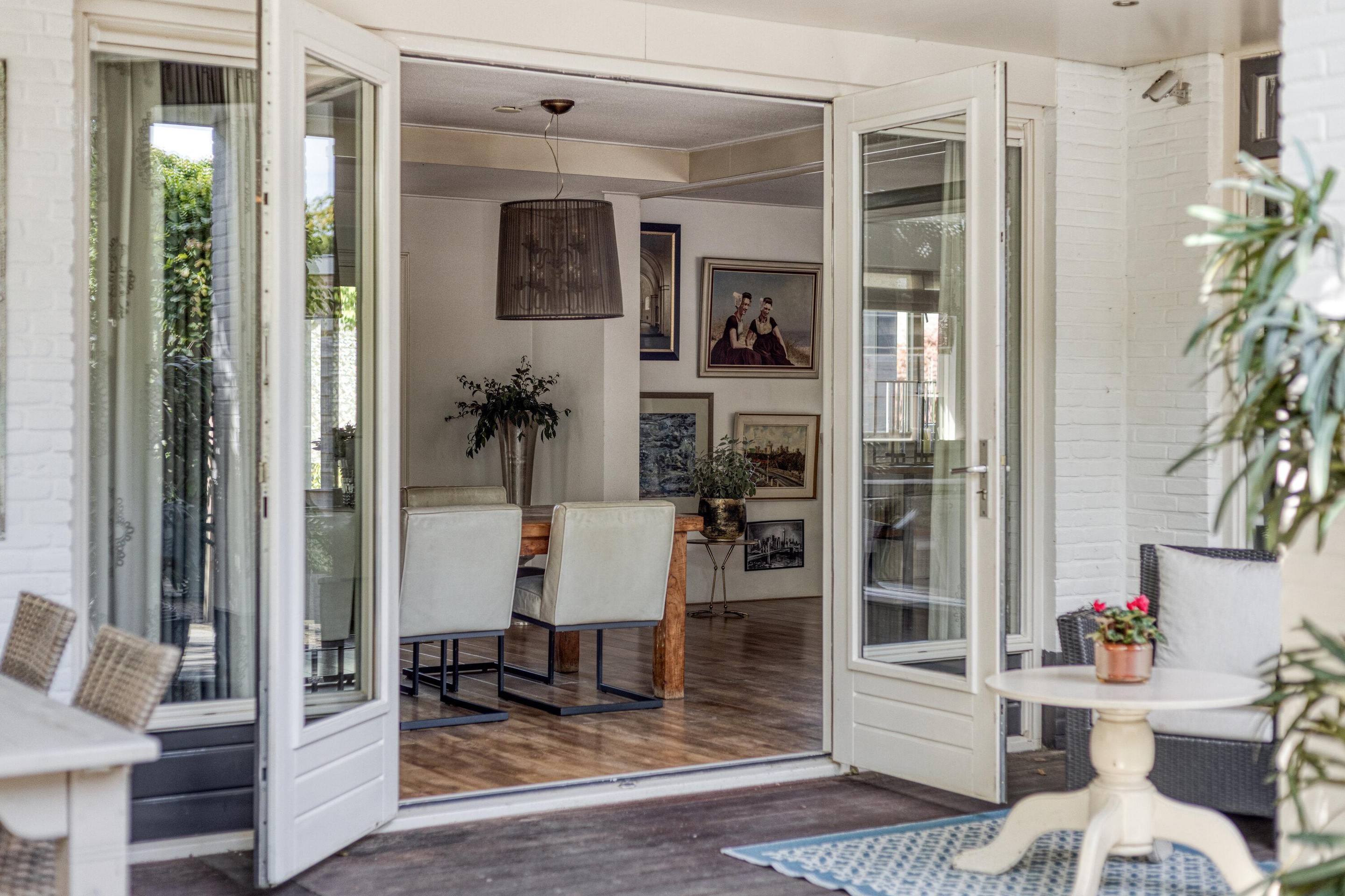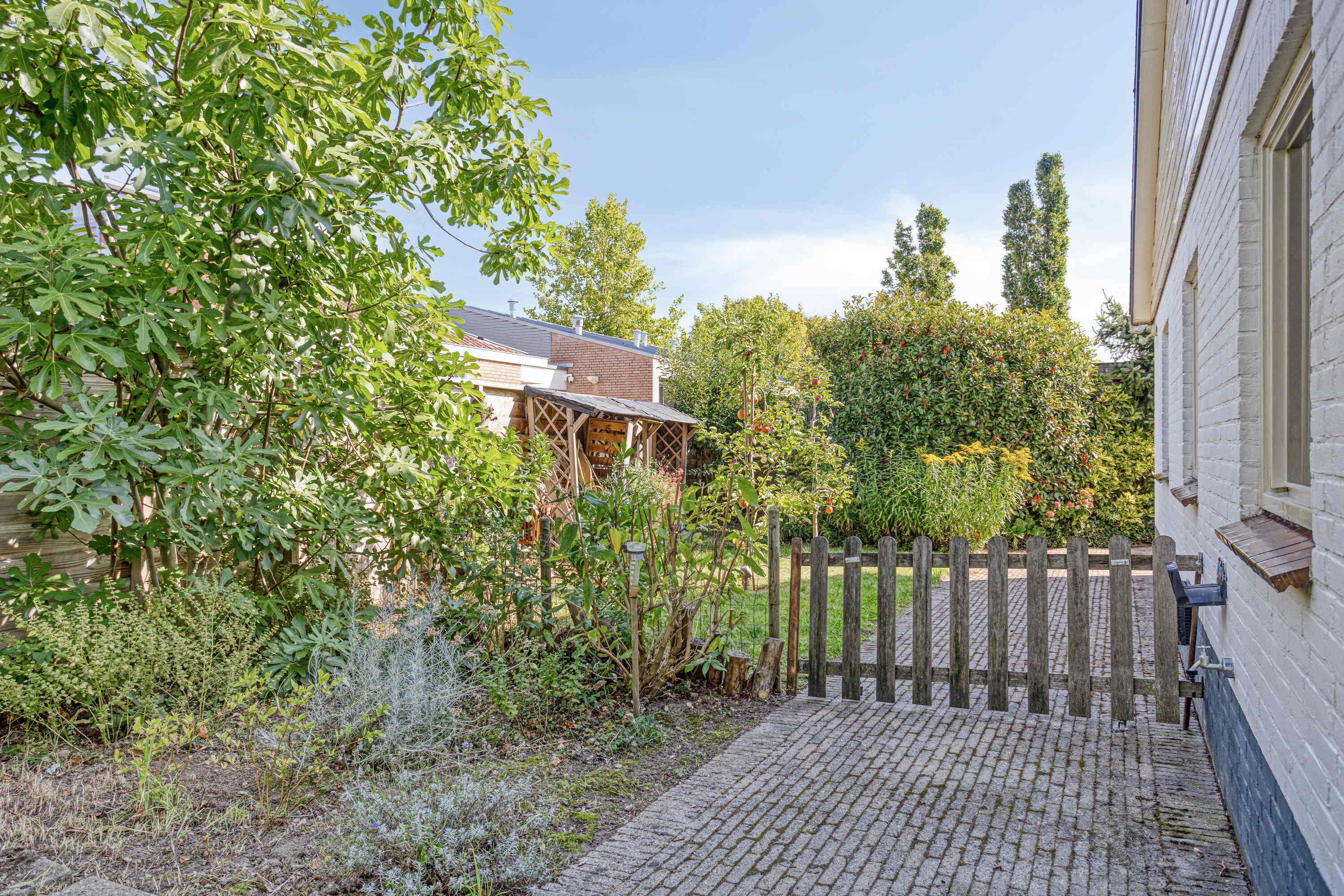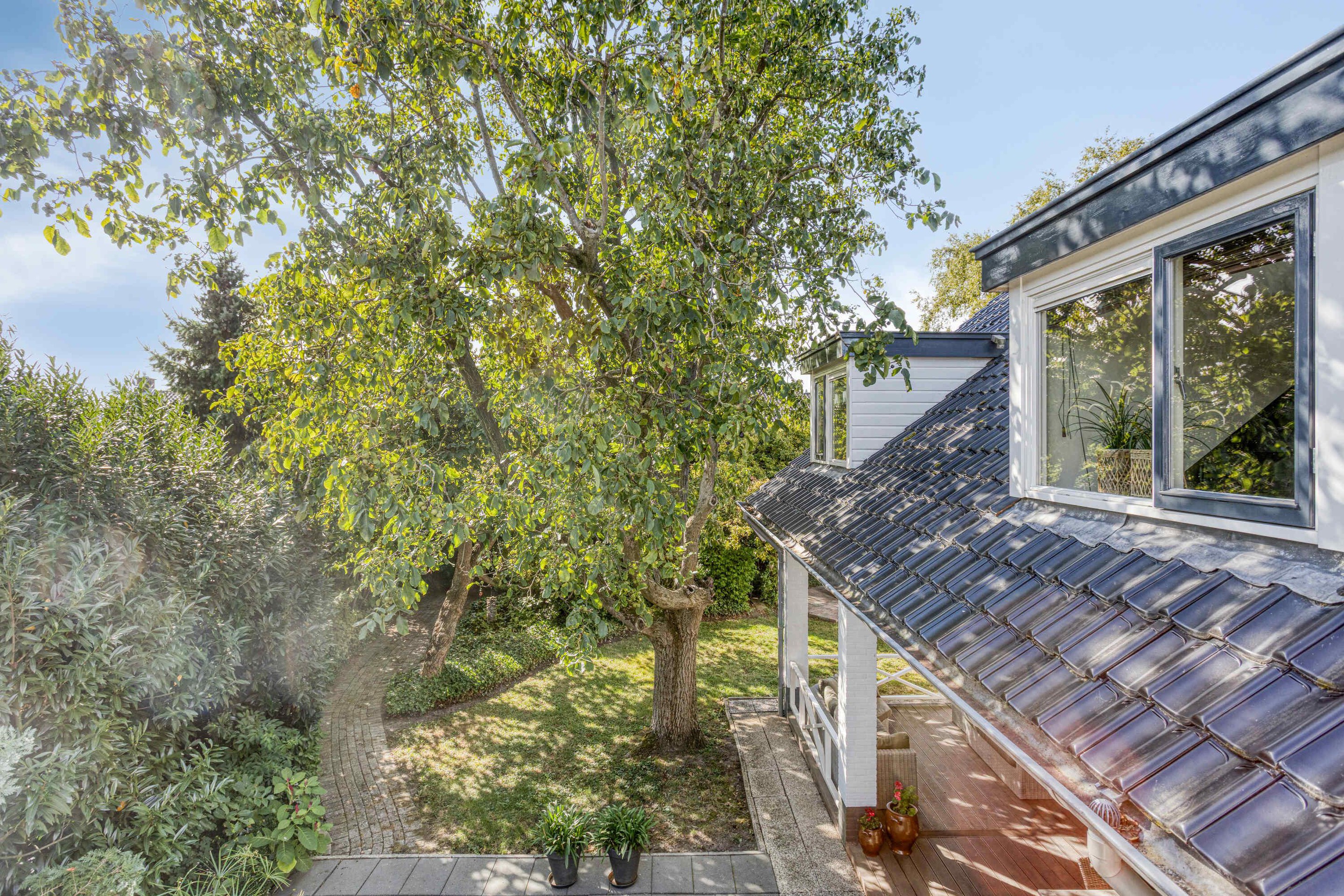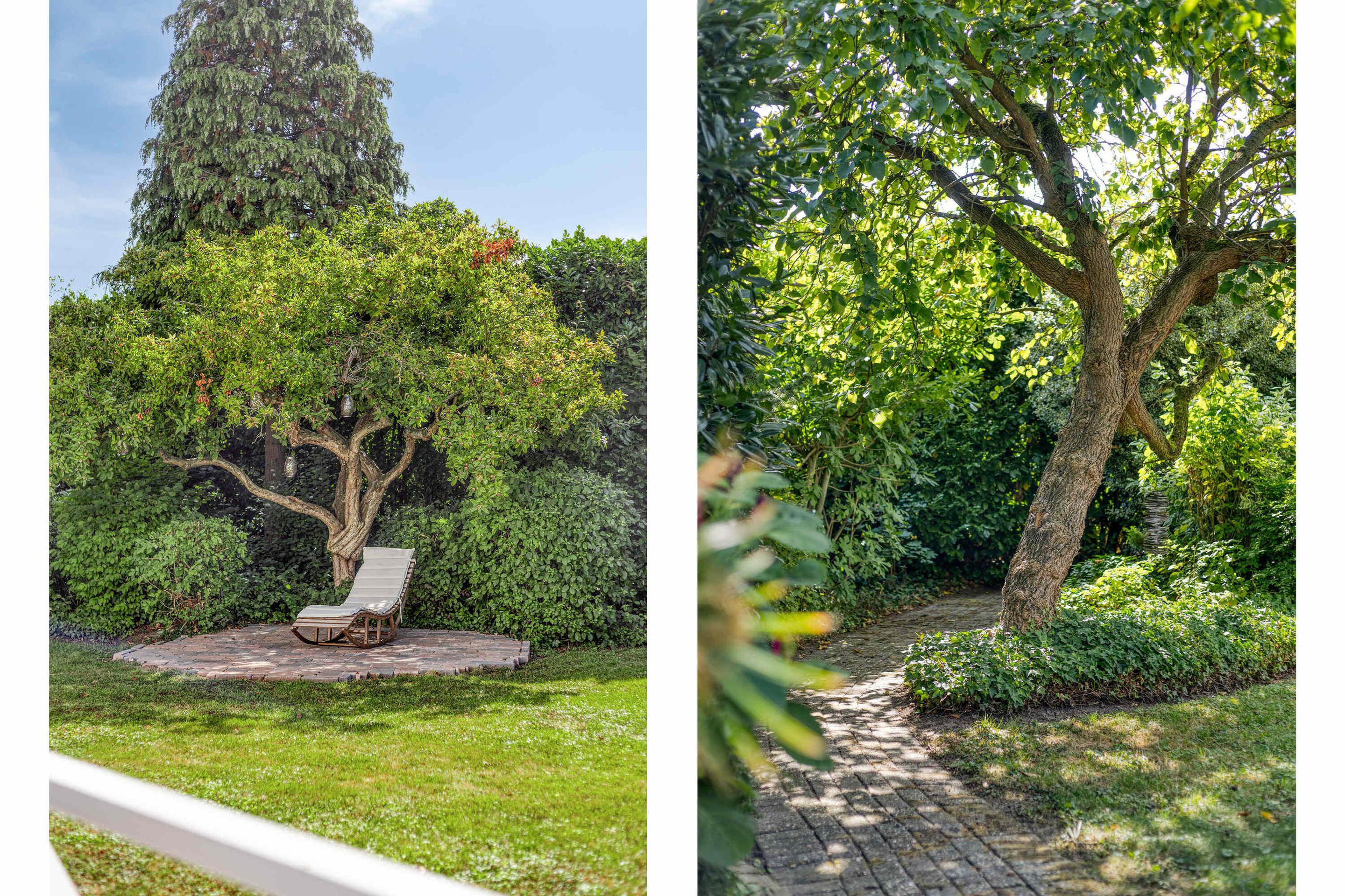 De tuin rondom de woning biedt volop privacy en groen, mede dankzij de gunstige hoekligging en lage bebouwing in de directe omgeving. Dankzij de verschillende terrassen – waaronder een overdekt terras direct grenzend aan de woonkamer – is er altijd een fijne plek om te zitten. De royale oprit biedt ruimte aan meerdere auto’s en de indeling van de woning zorgt ervoor dat je aan alle kanten verbonden bent met buiten.