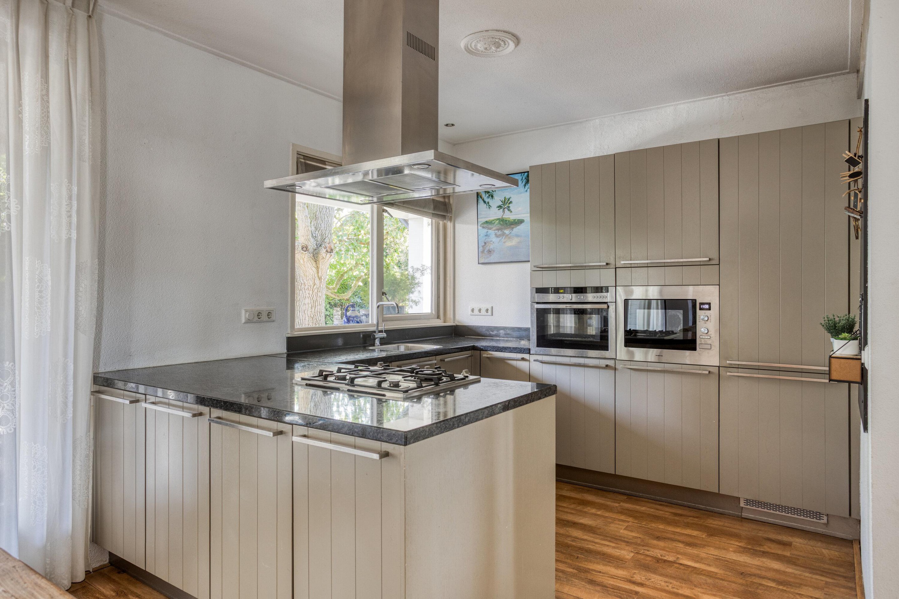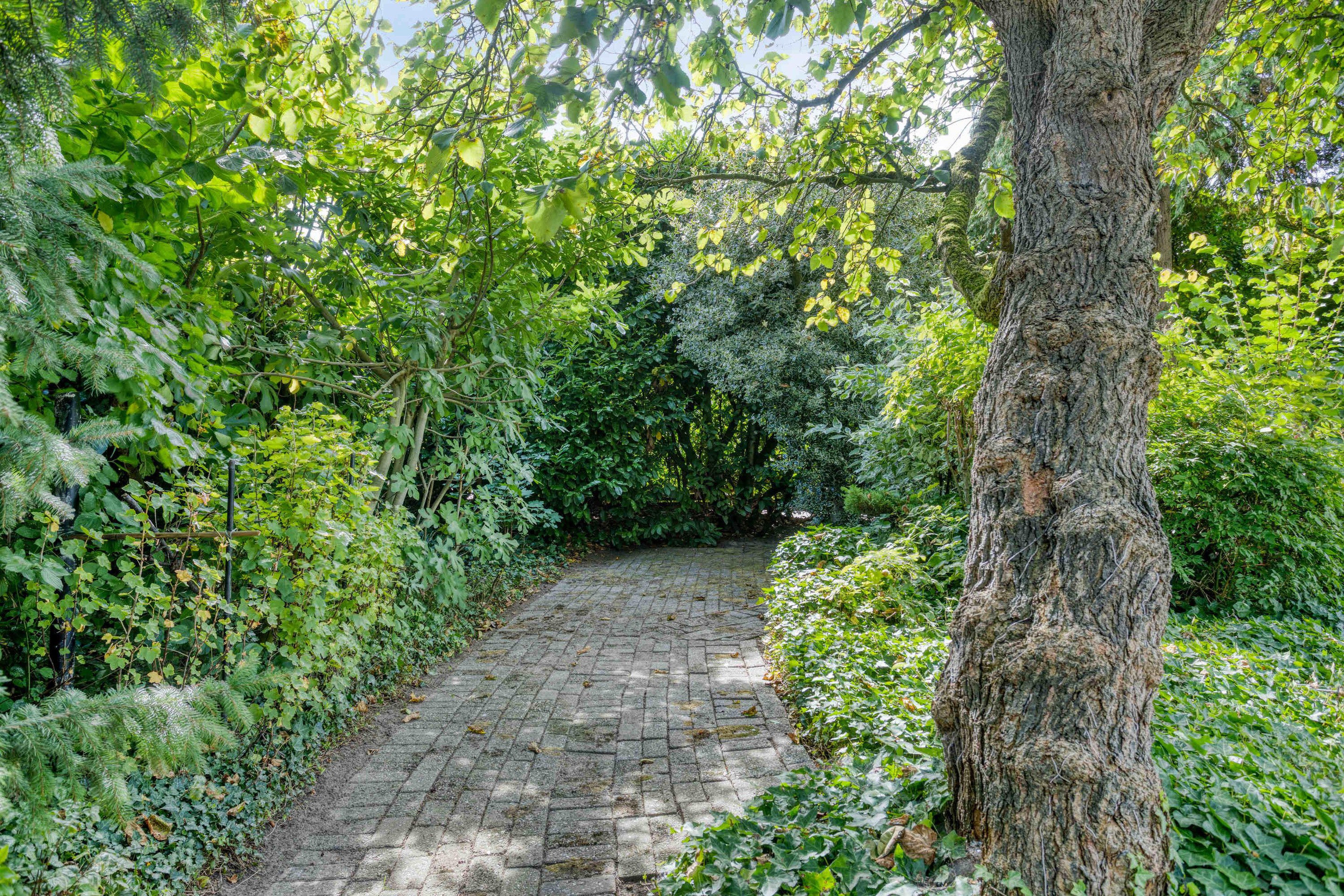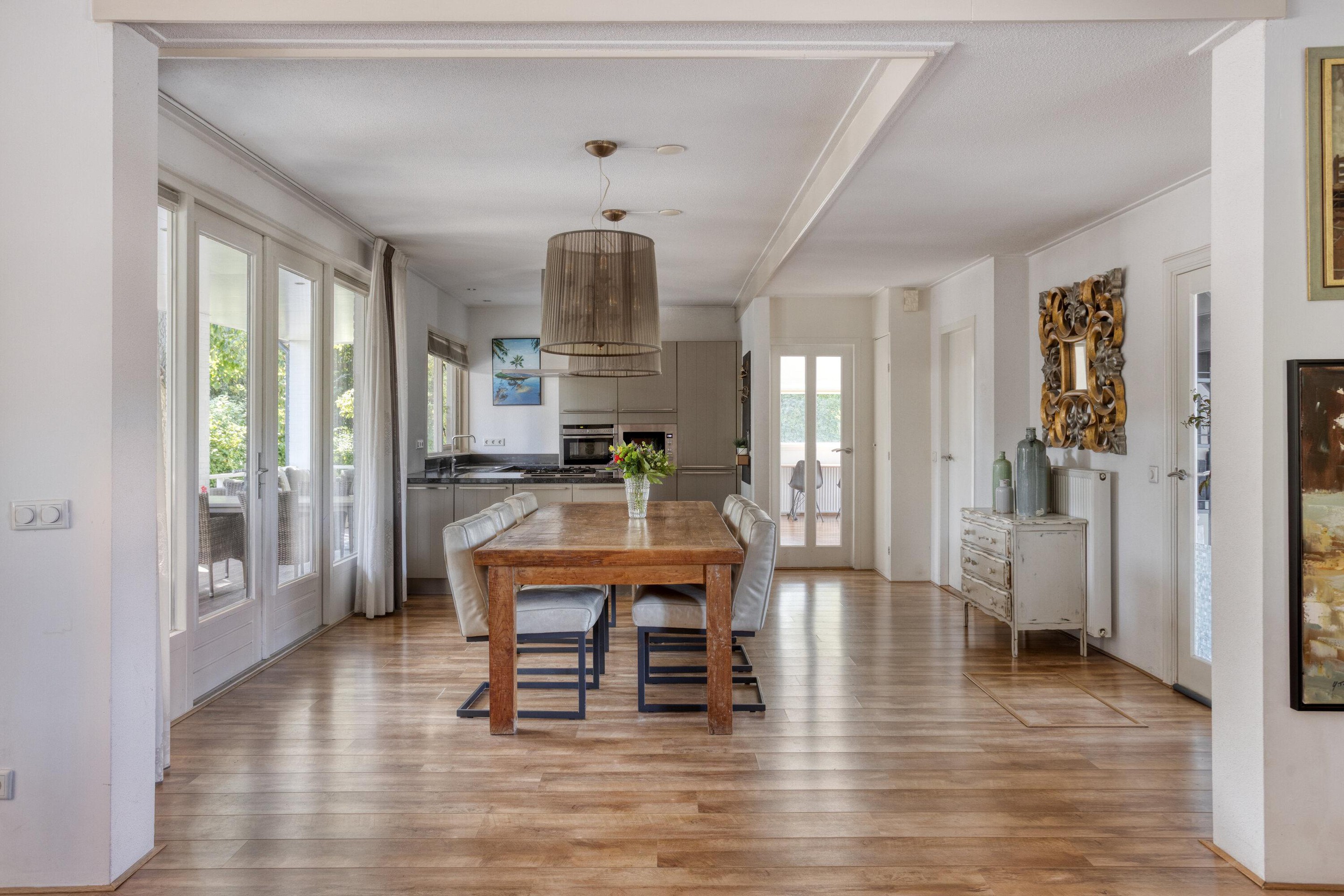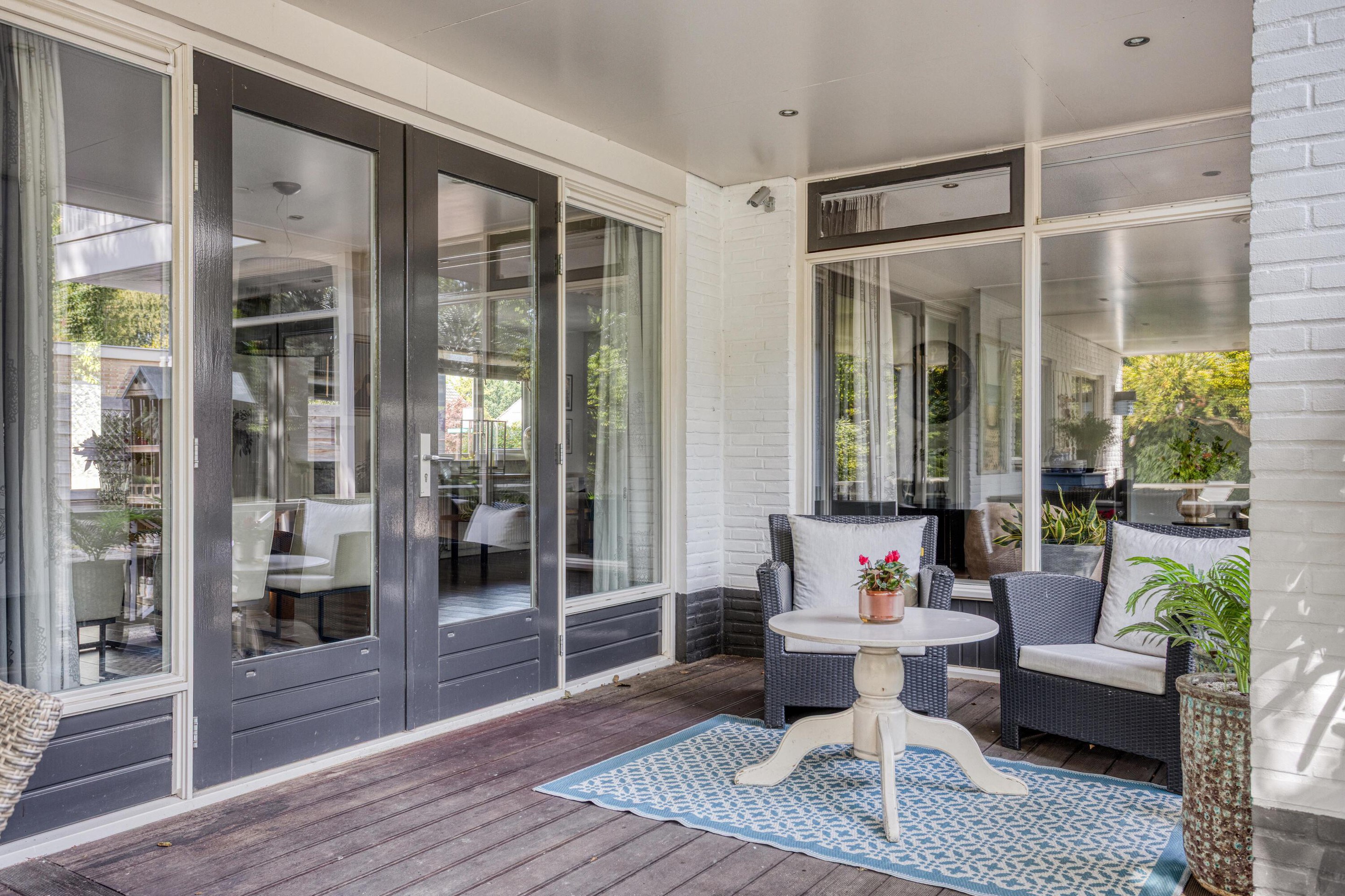 De tuin rondom de woning biedt volop privacy en groen, mede dankzij de gunstige hoekligging en lage bebouwing in de directe omgeving. Dankzij de verschillende terrassen – waaronder een overdekt terras direct grenzend aan de woonkamer – is er altijd een fijne plek om te zitten. De royale oprit biedt ruimte aan meerdere auto’s en de indeling van de woning zorgt ervoor dat je aan alle kanten verbonden bent met buiten.