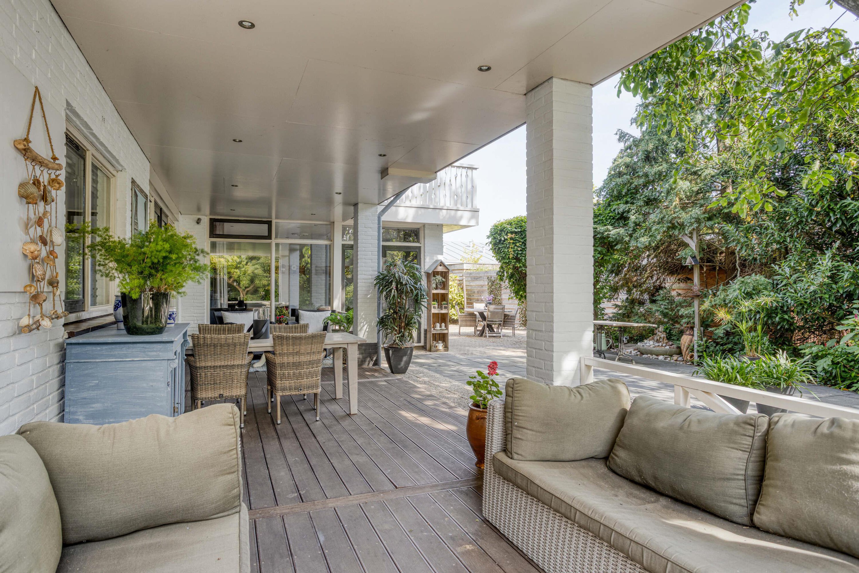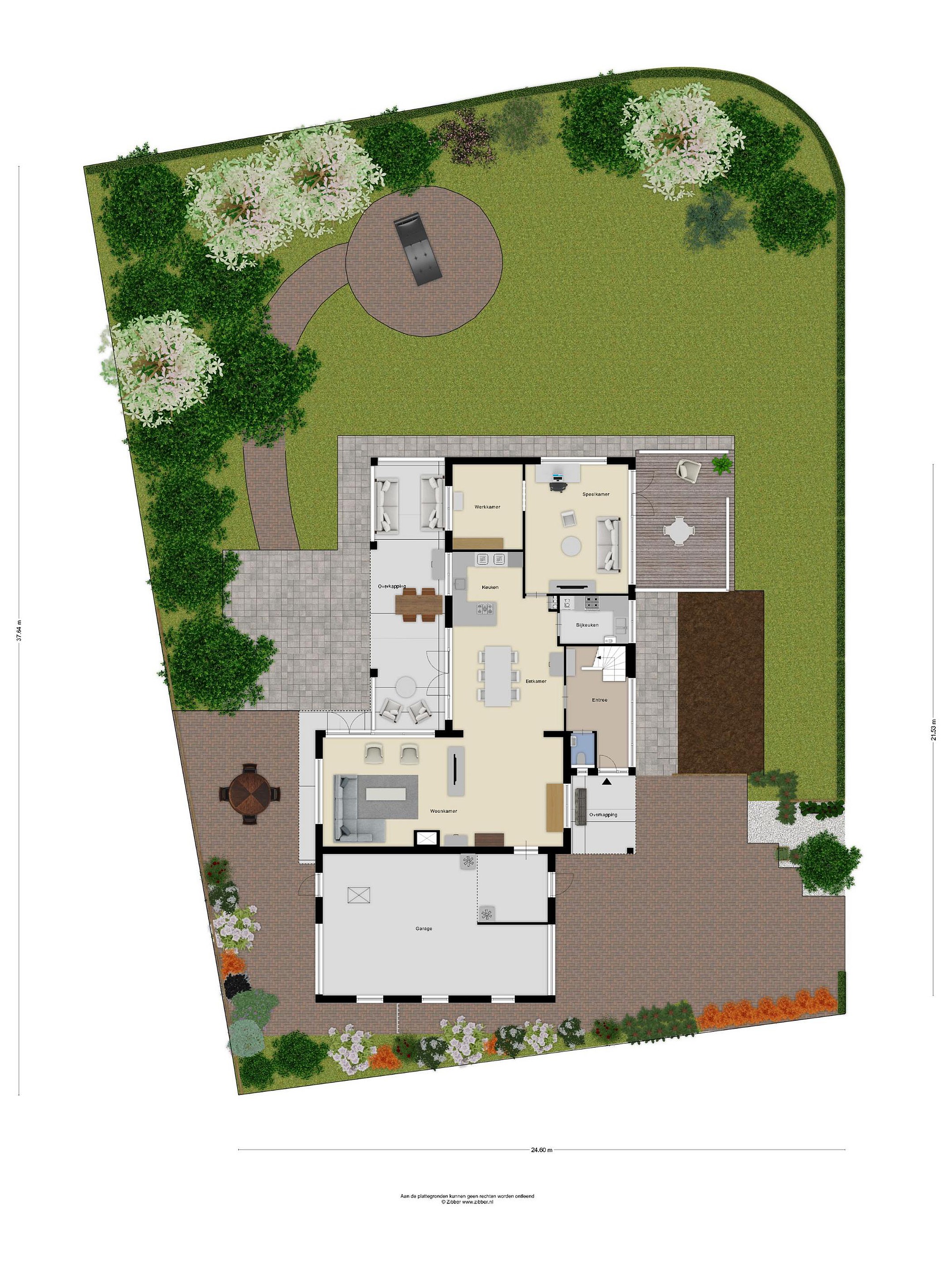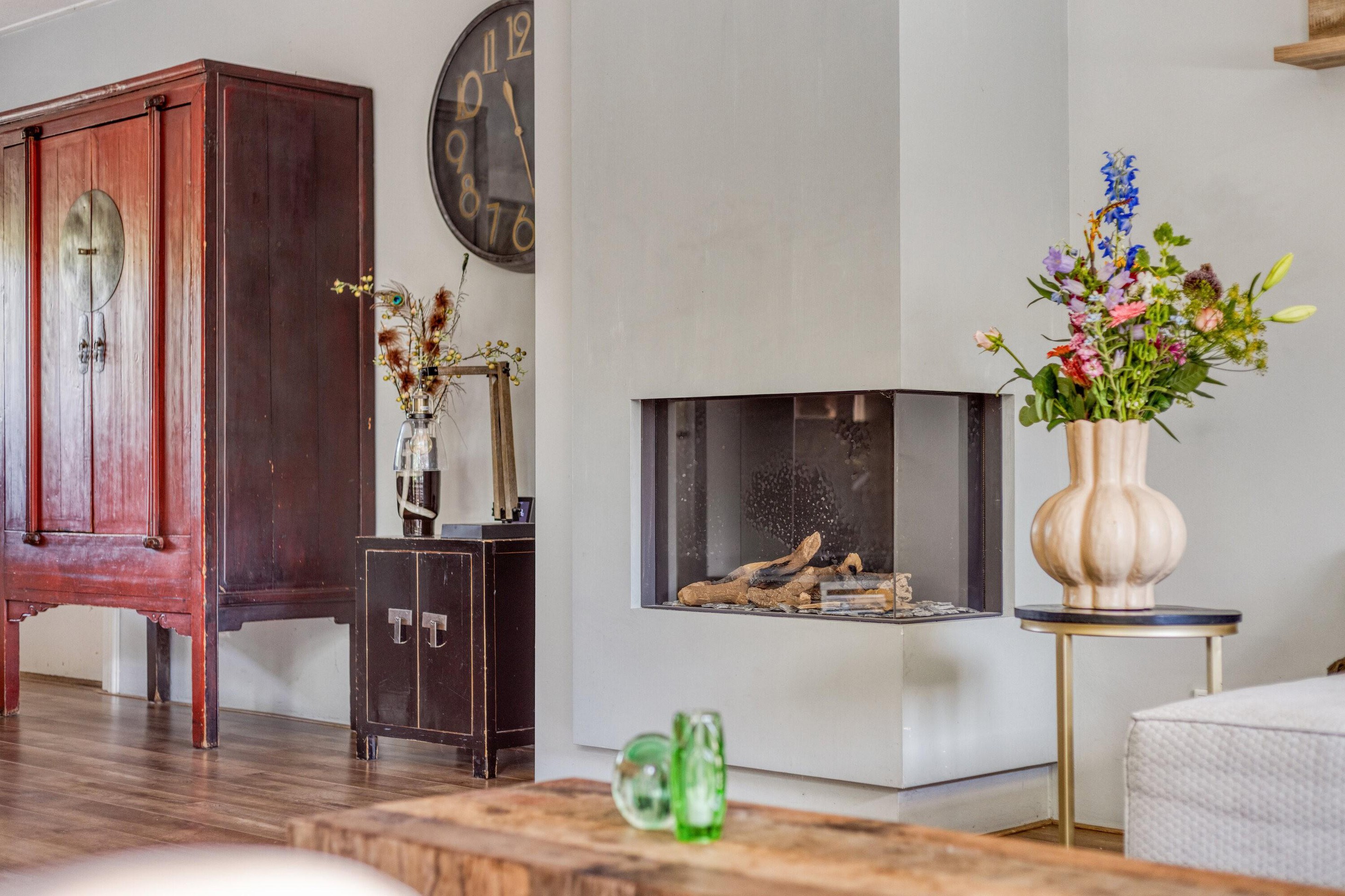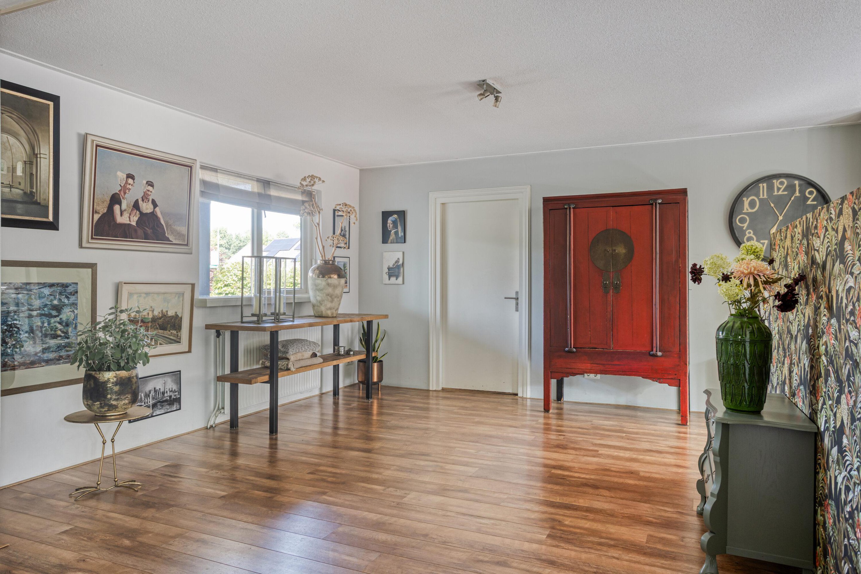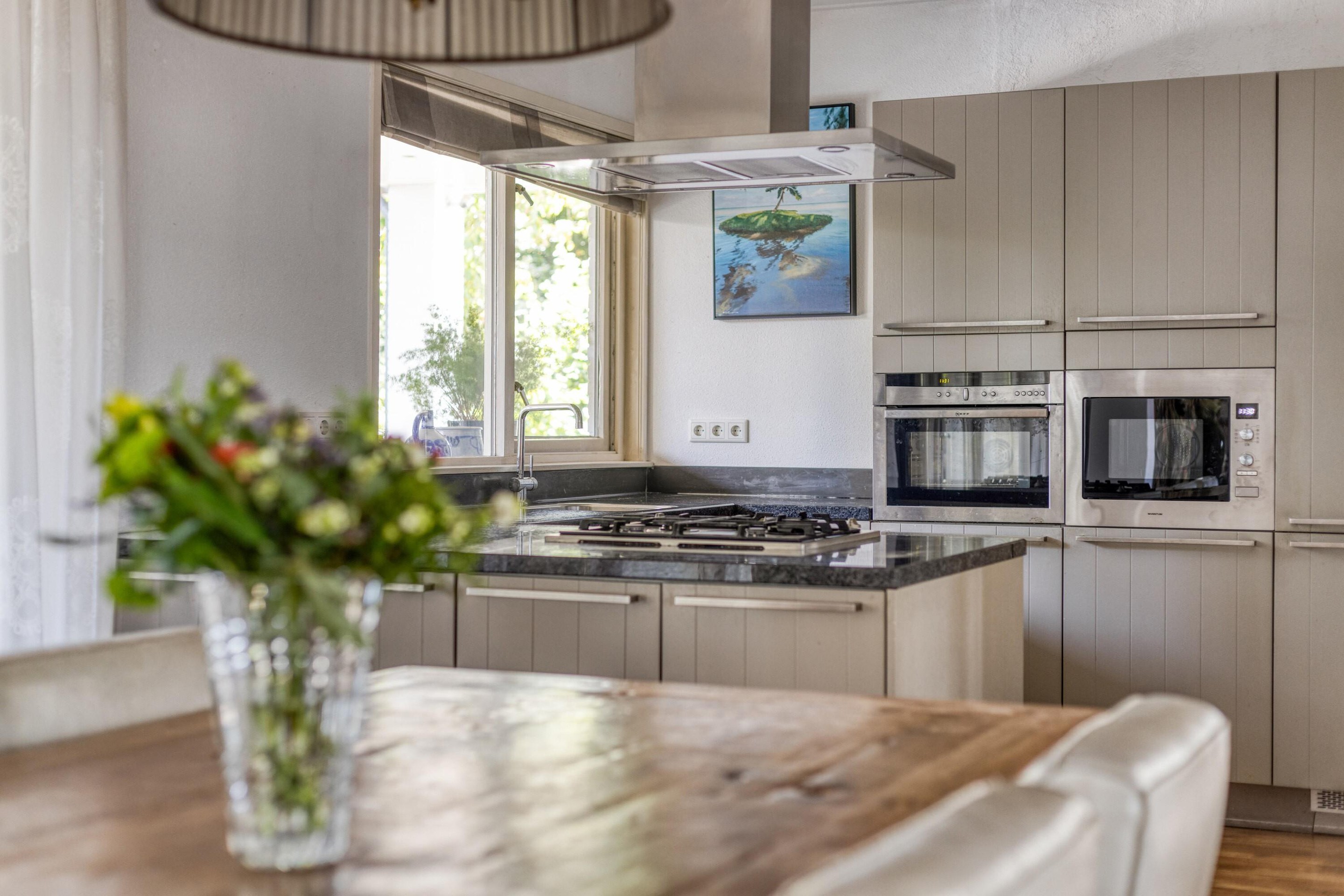 De tuin rondom de woning biedt volop privacy en groen, mede dankzij de gunstige hoekligging en lage bebouwing in de directe omgeving. Dankzij de verschillende terrassen – waaronder een overdekt terras direct grenzend aan de woonkamer – is er altijd een fijne plek om te zitten. De royale oprit biedt ruimte aan meerdere auto’s en de indeling van de woning zorgt ervoor dat je aan alle kanten verbonden bent met buiten.