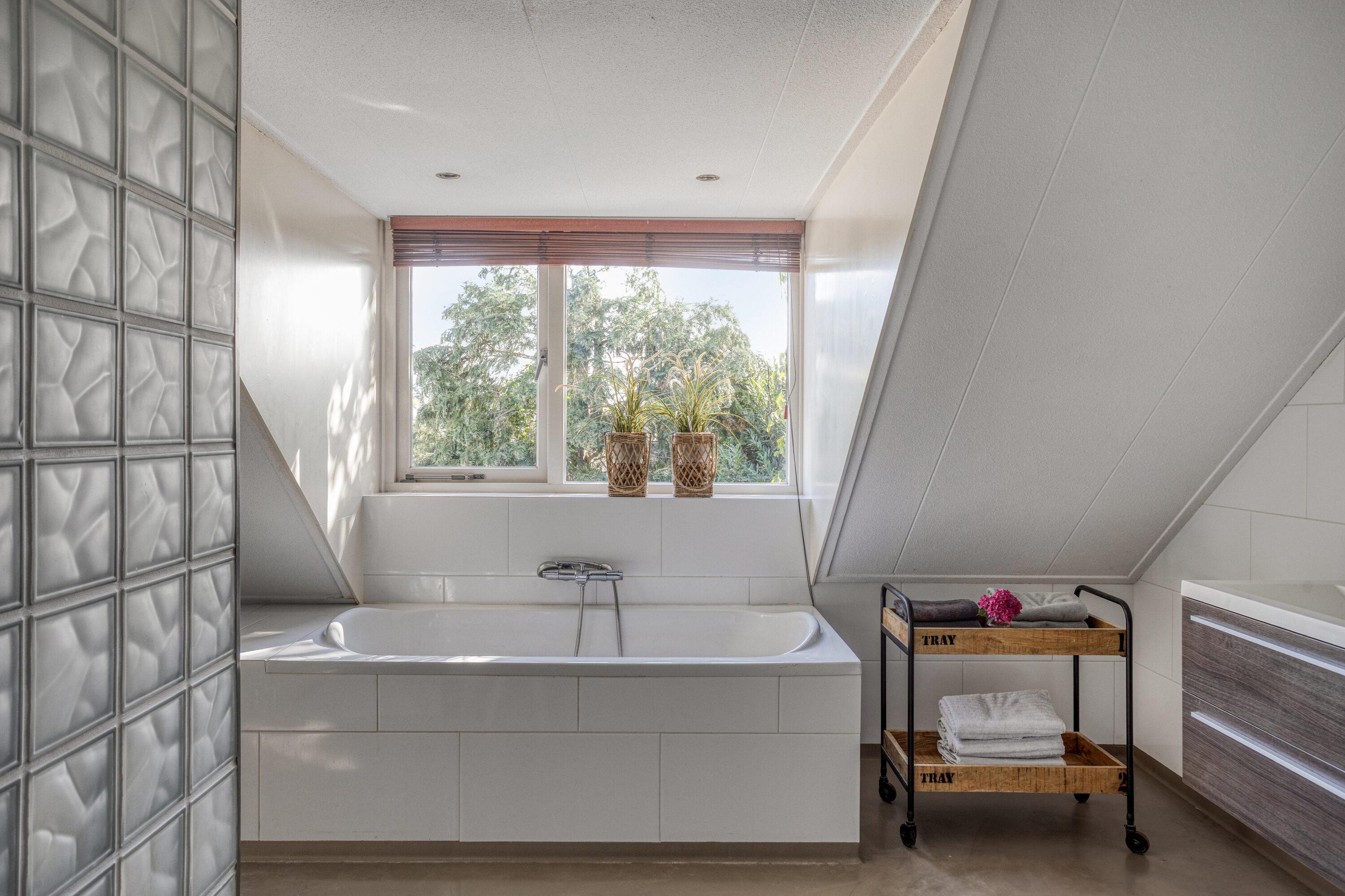 Via de vide bereik je de overloop met een tweede toilet. Er zijn maar liefst vier grote slaapkamers, allemaal met een dakkapel en volop lichtinval. Twee slaapkamers beschikken over een eigen walk-in-closet. De grootste slaapkamer is extra compleet met airco, openslaande deuren naar het balkon, een inbouwkast met de CV-ketel (dec. 2023) en een vlizotrap naar de bergzolder. Vanuit deze kamer heb je ook toegang tot de grote zolderkamer/bergruimte boven de garage. De badkamer is heerlijk ruim en is voorzien van een ligbad, dubbele inloopdouche en twee wastafelmeubels.