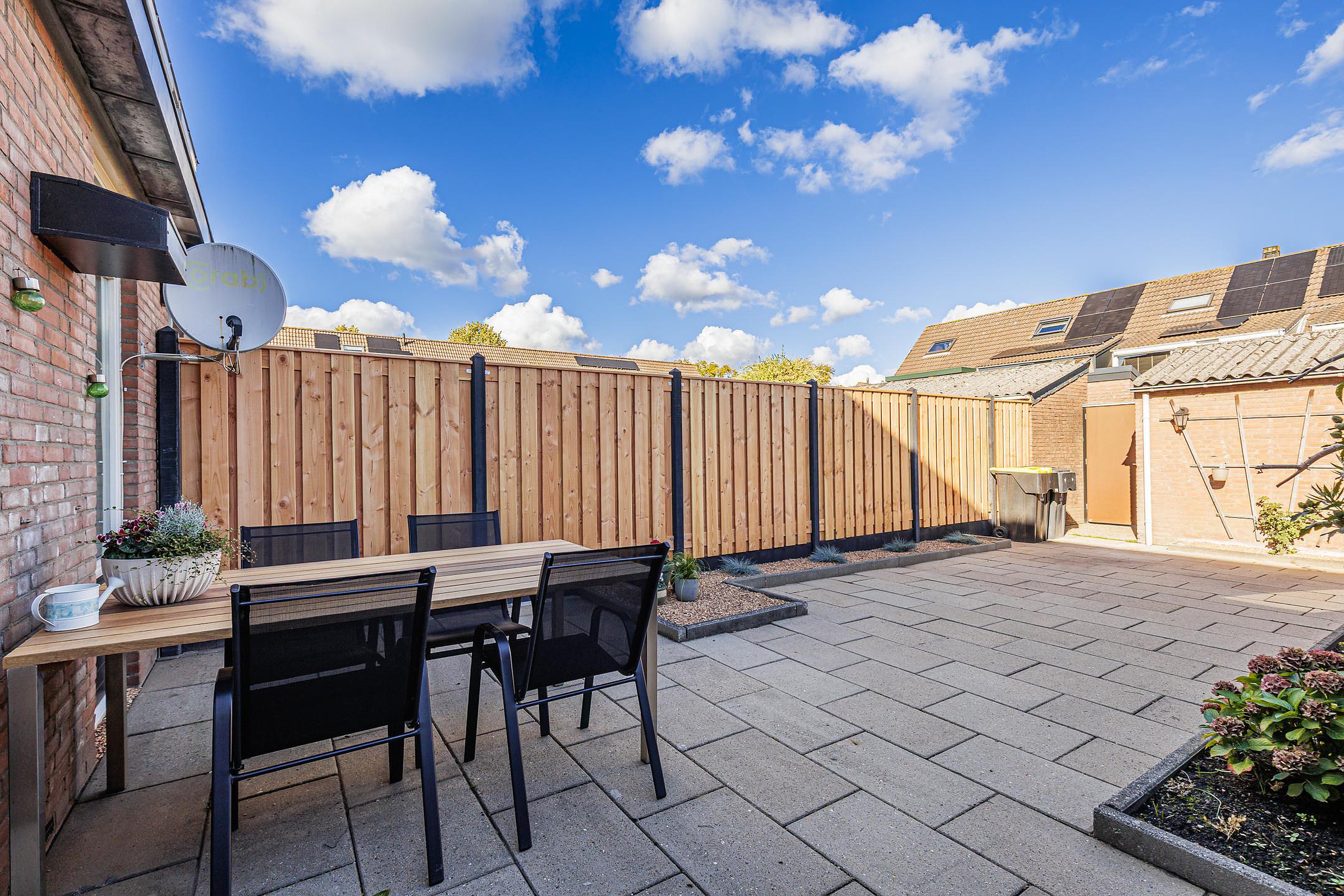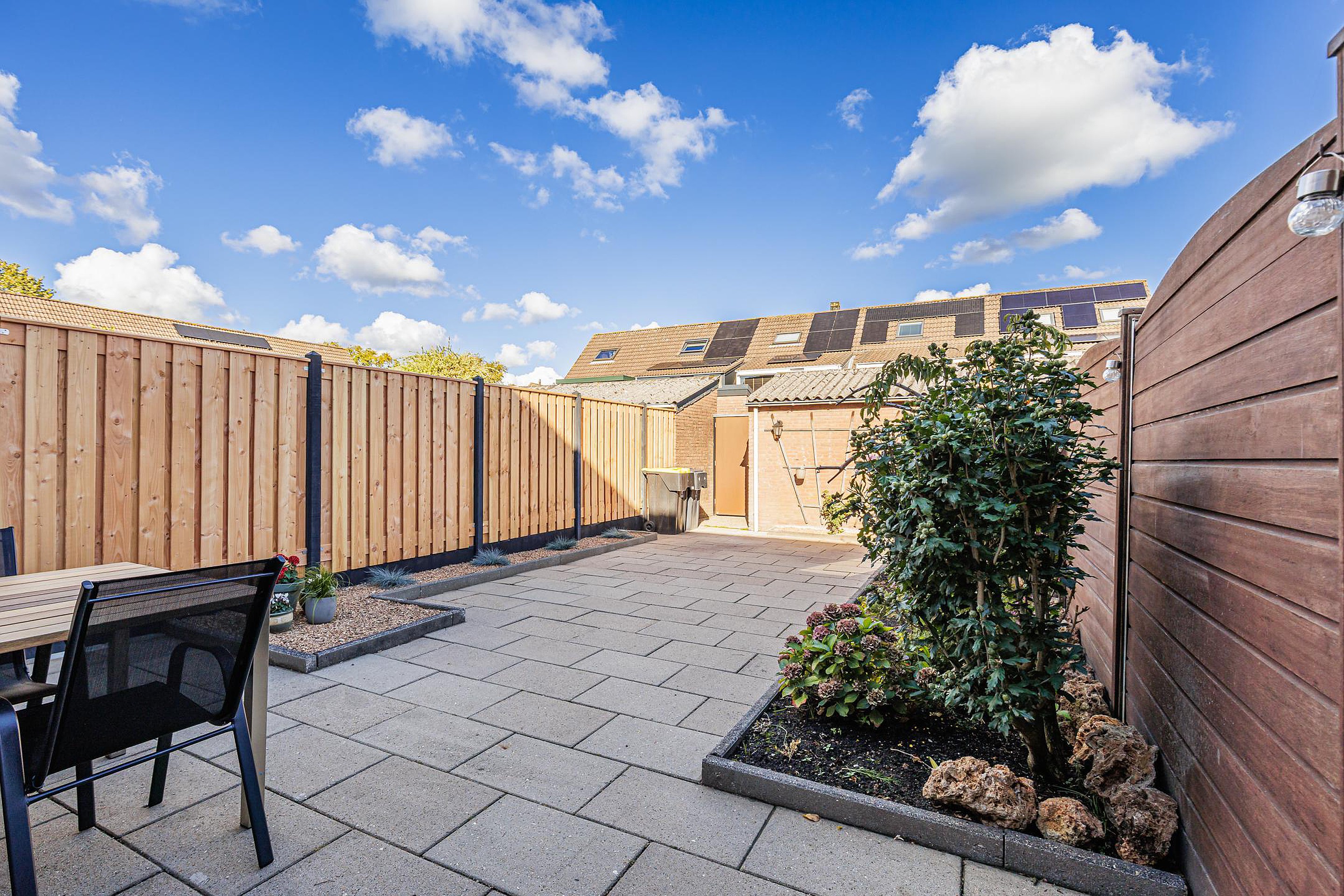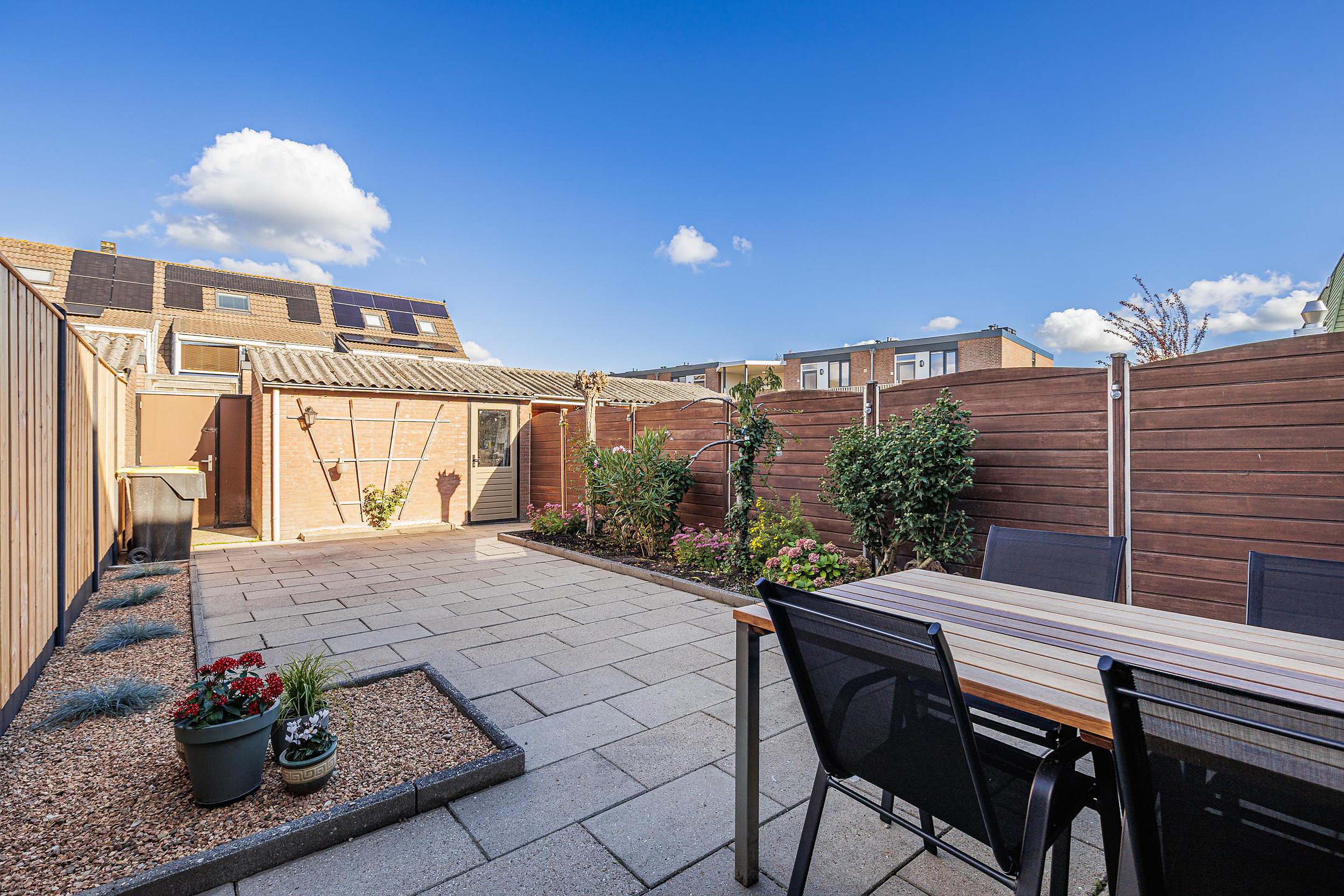 De tuin is verzorgd aangelegd en biedt volop mogelijkheden om buiten te genieten. Er is ruimte voor zowel een loungeset als een eettafel, zodat je in elk seizoen een fijn plekje hebt. De combinatie van groen en bestrating maakt de tuin onderhoudsvriendelijk, terwijl er toch voldoende speelruimte is. Aan de achterzijde bevindt zich bovendien een praktische berging voor fietsen en tuingereedschap.