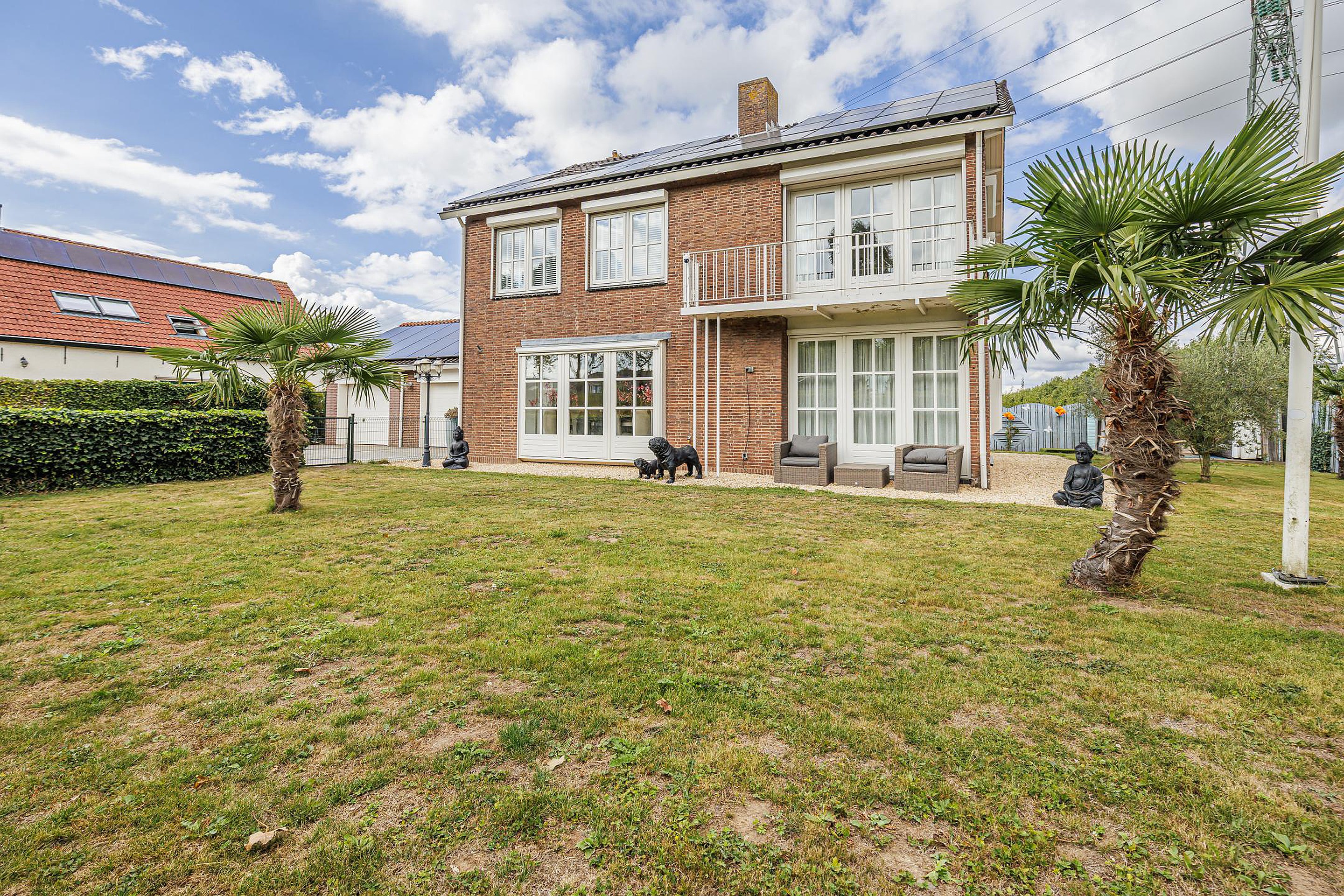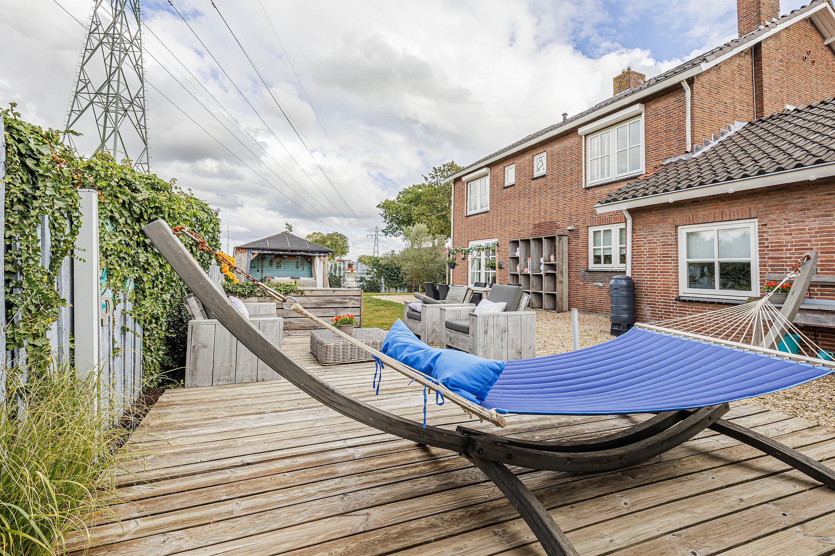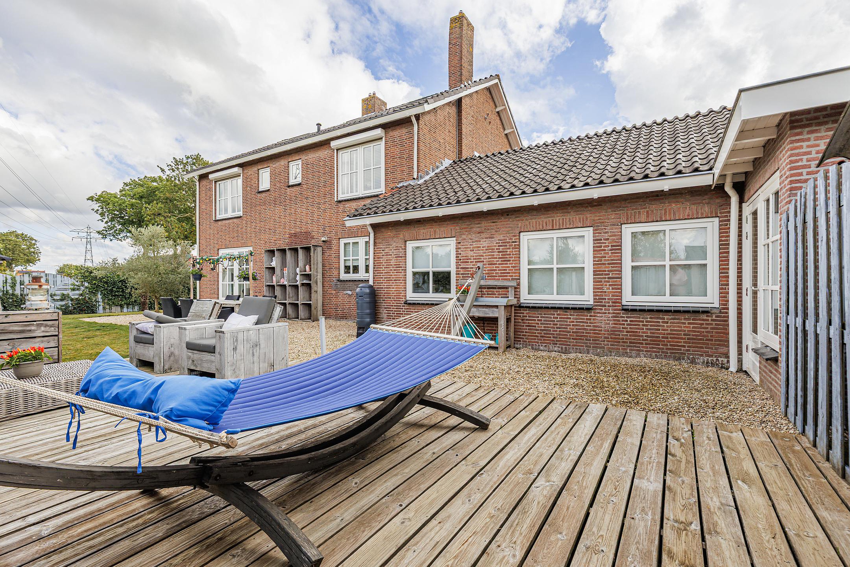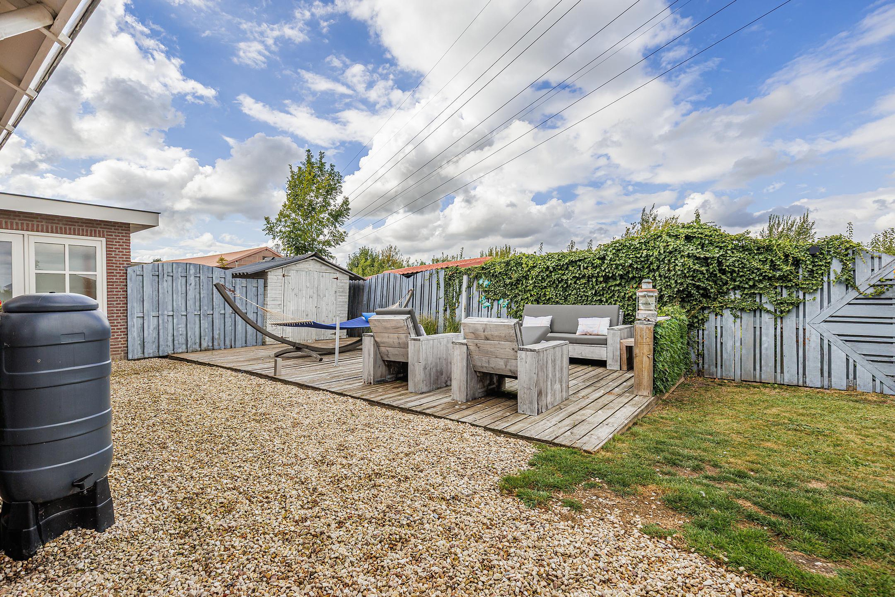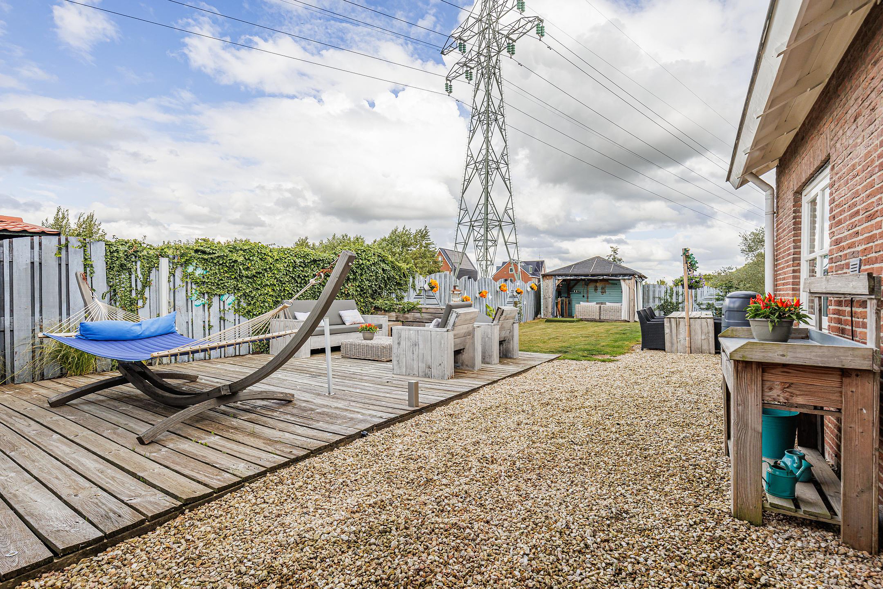 Rondom de woning ligt een fraai aangelegde en onderhoudsvriendelijke tuin. Meerdere terrassen en zitjes bieden altijd een plekje in de zon of schaduw. Onder de overkapping geniet je van lange zomeravonden, terwijl kinderen volop speelruimte hebben op het grote grasveld.