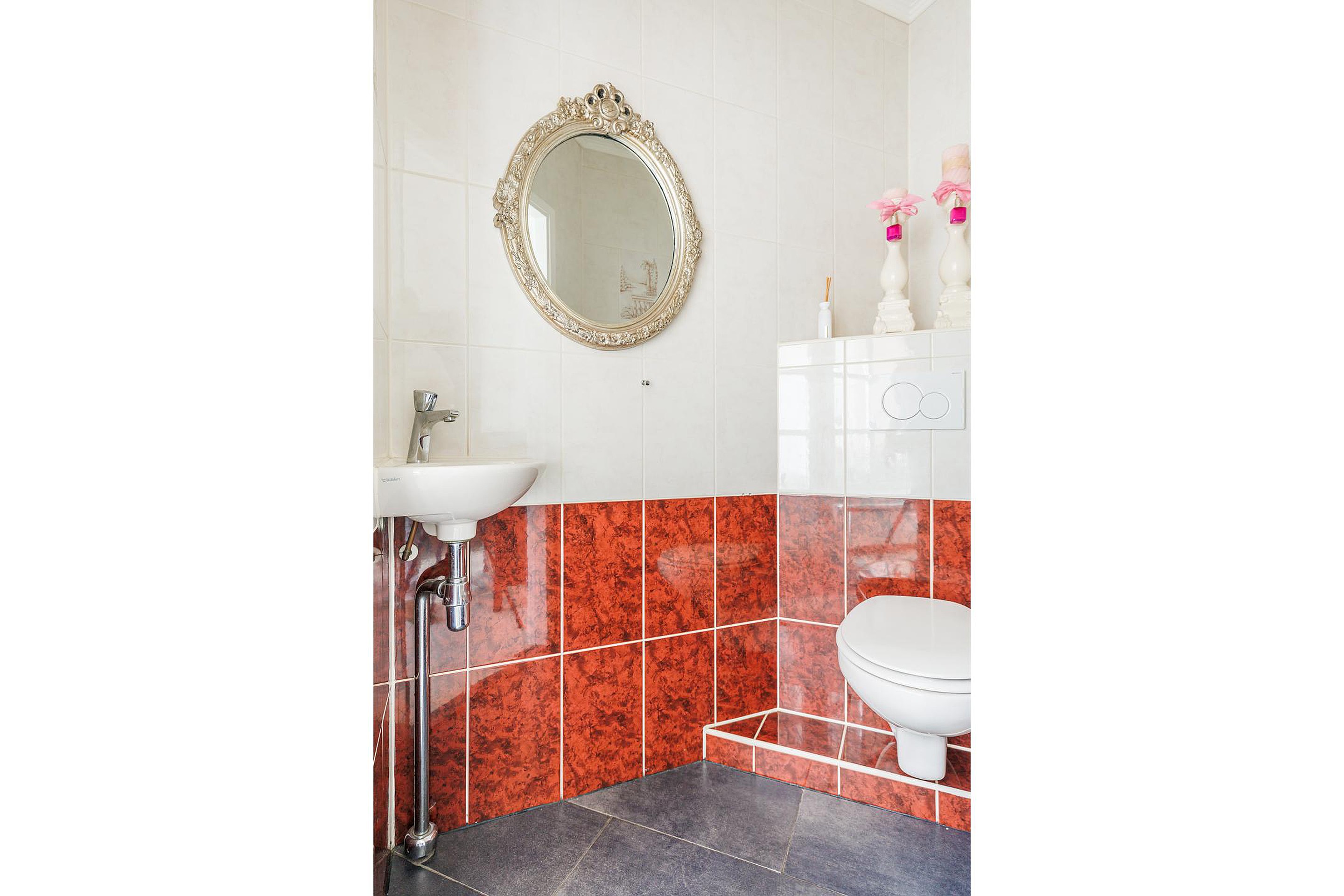 Op de eerste verdieping zijn twee grote slaapkamers aan de voorzijde van de woning, waarvan één met balkon. De derde slaapkamer ligt aan de achterzijde. Alle kamers zijn afgewerkt met strak stucwerk en laminaatvloeren die mooi zijn doorgelegd. De badkamer is royaal en luxe: een hoekligbad, aparte douche, dubbele wastafel met meubel, tweede toilet en designradiator maken dit een complete ruimte.