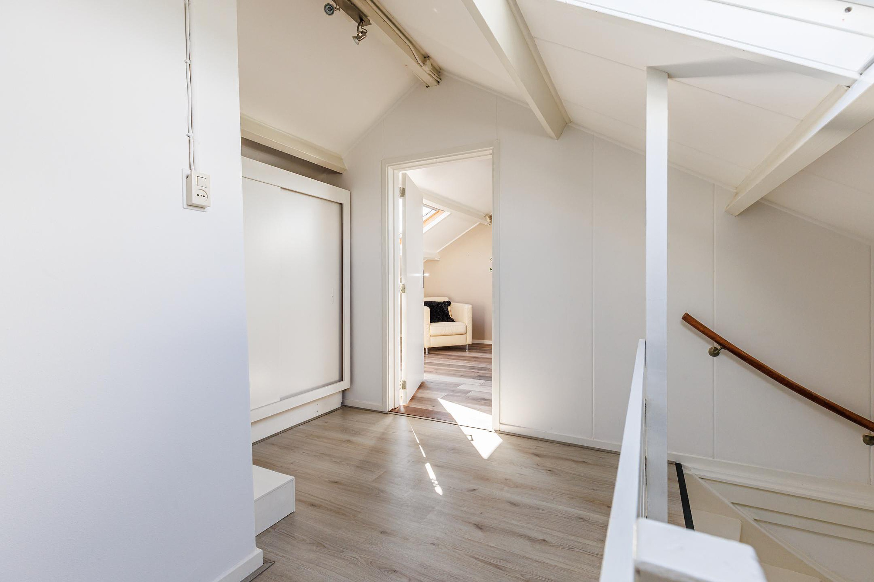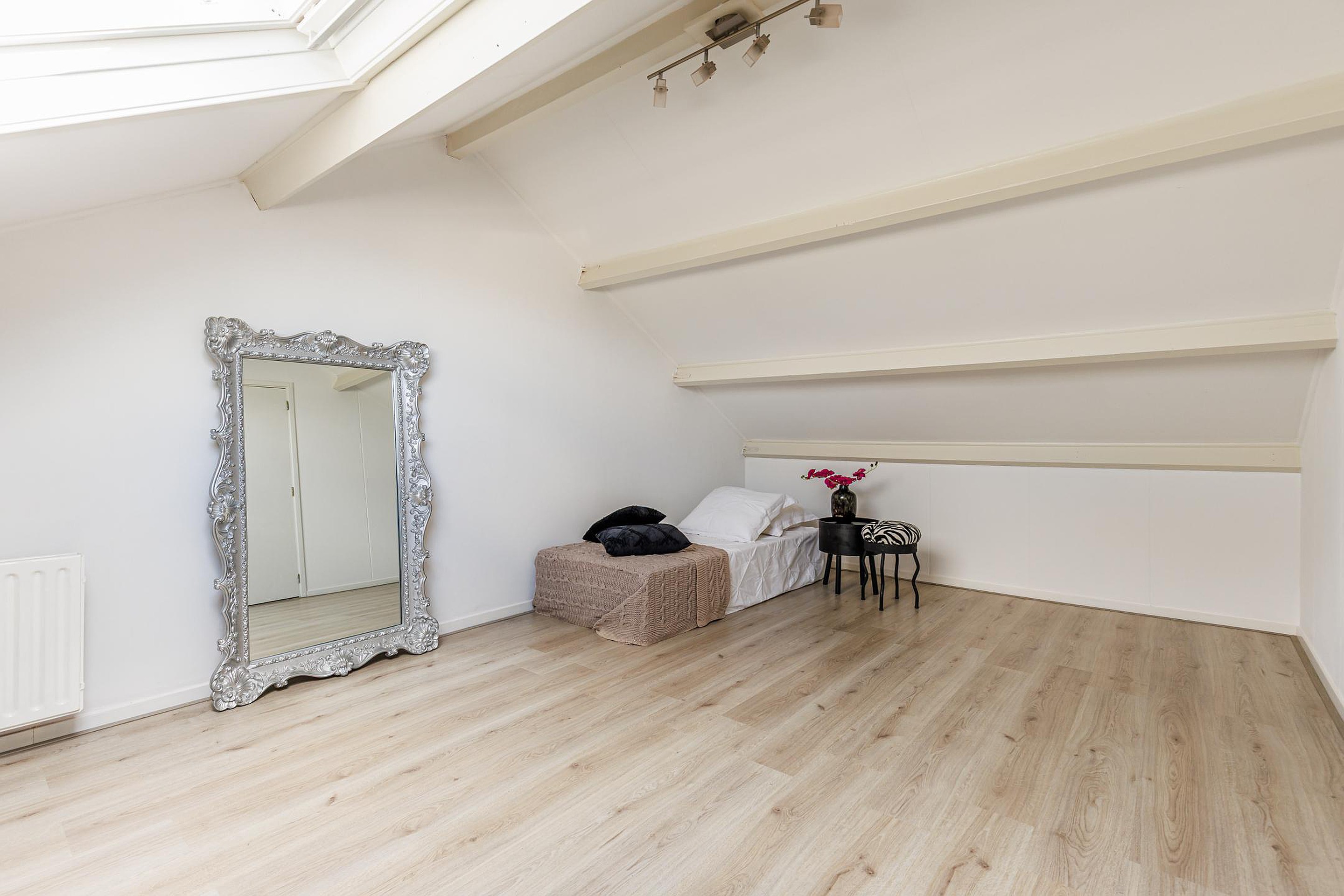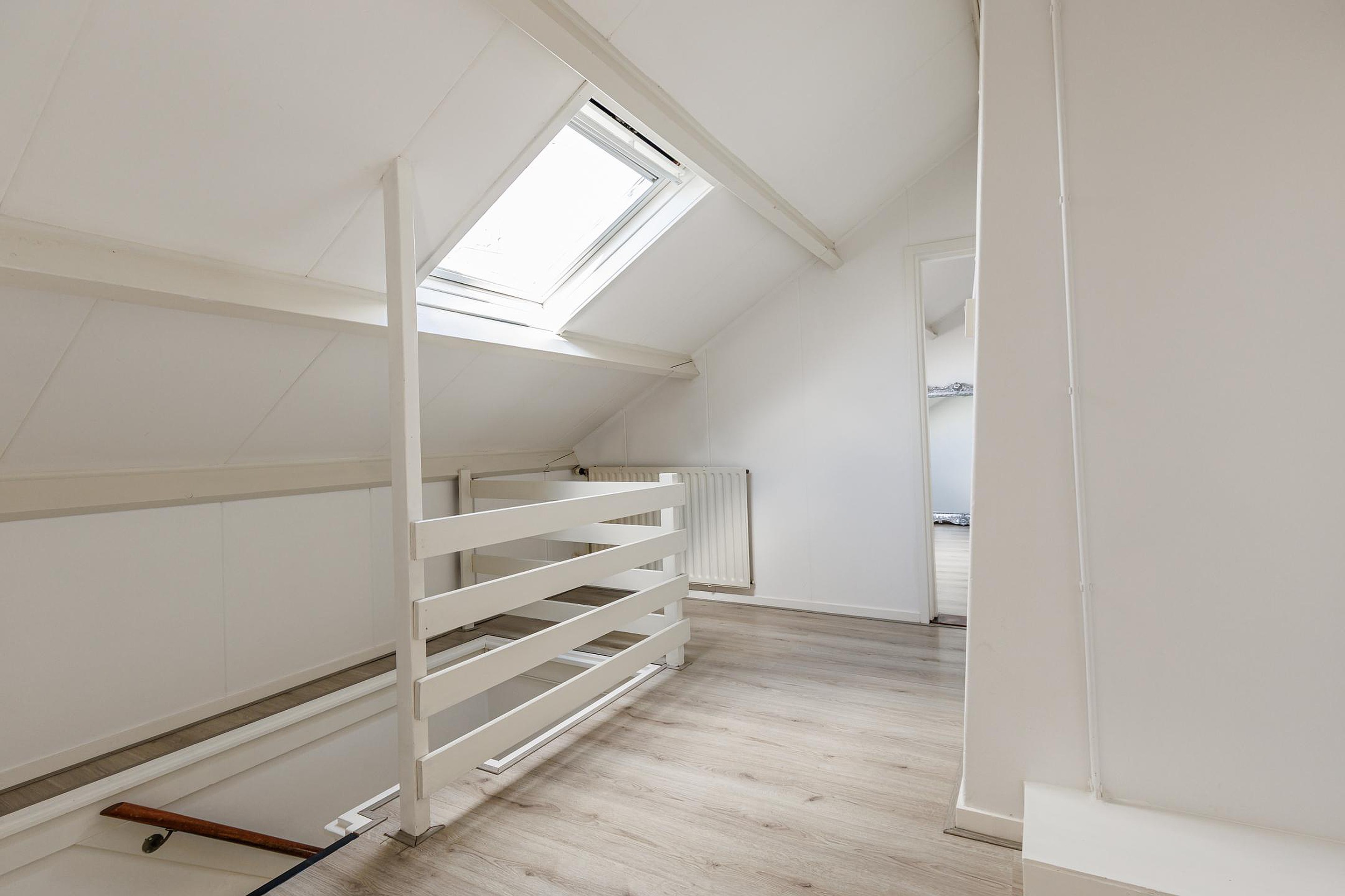 De tweede verdieping beschikt over nog eens twee ruime slaapkamers, beide met dakramen. De overloop biedt toegang tot een praktische opbergkast. Daarmee zijn er in totaal maar liefst vijf volwaardige slaapkamers aanwezig.