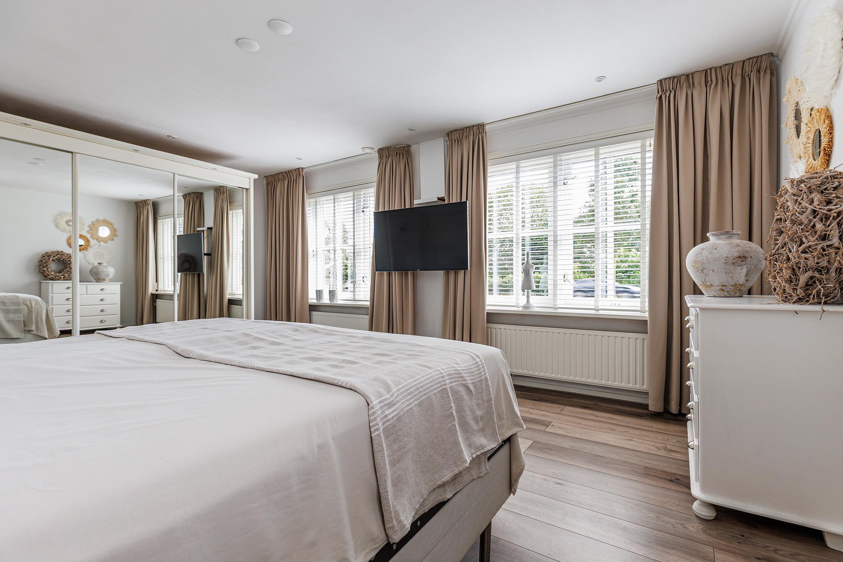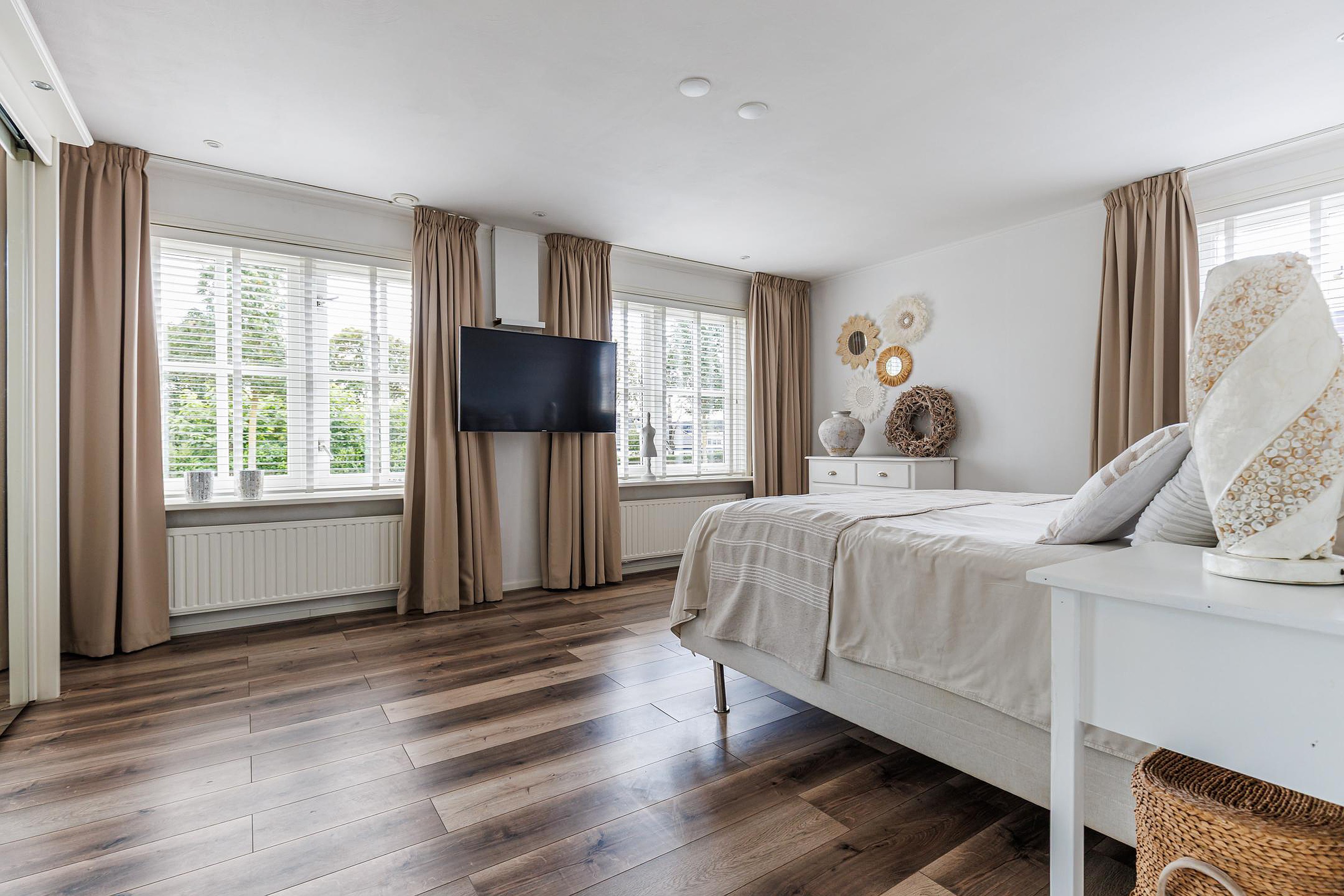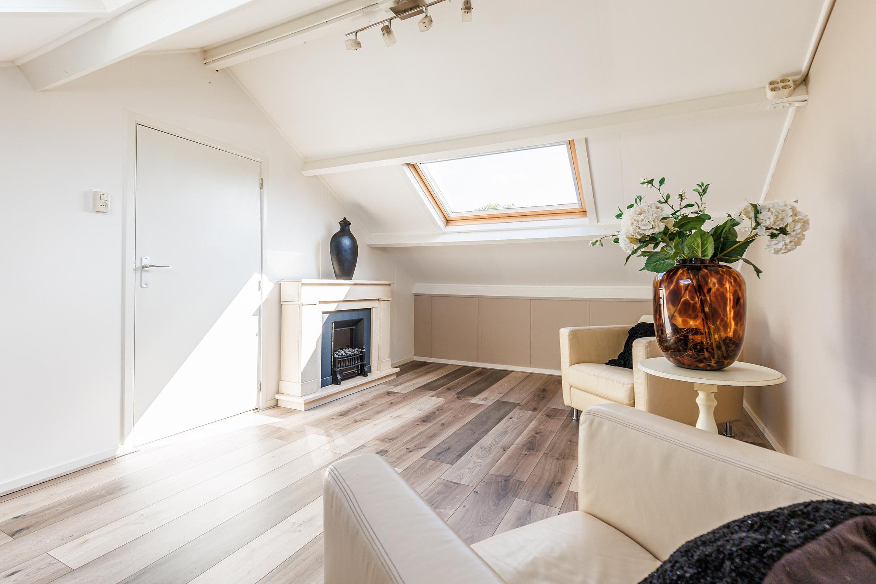 De tweede verdieping beschikt over nog eens twee ruime slaapkamers, beide met dakramen. De overloop biedt toegang tot een praktische opbergkast. Daarmee zijn er in totaal maar liefst vijf volwaardige slaapkamers aanwezig.