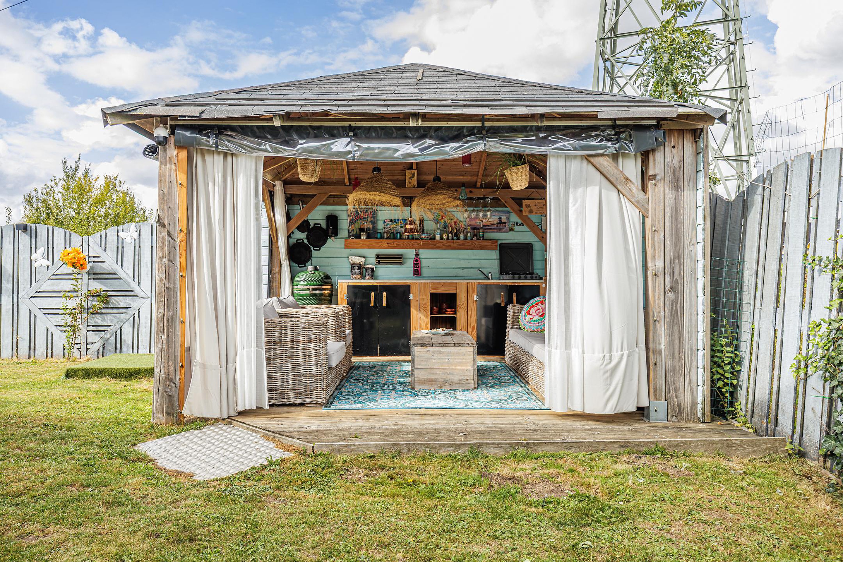 -Fraaie, onderhoudsvriendelijke tuin met overkapping en meerdere terrassen