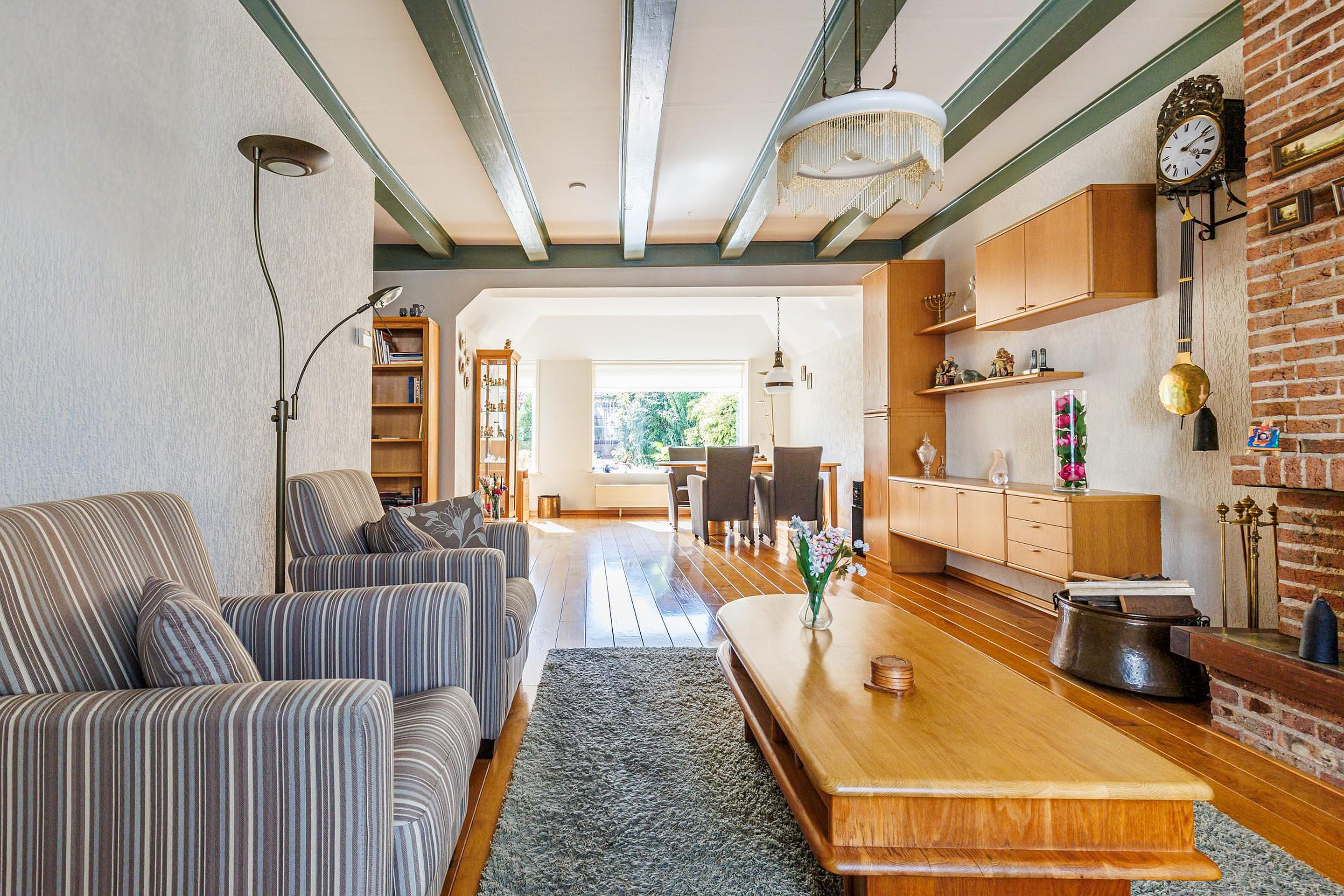 * Doorzonwoonkamer met houtkachel en balkenplafond