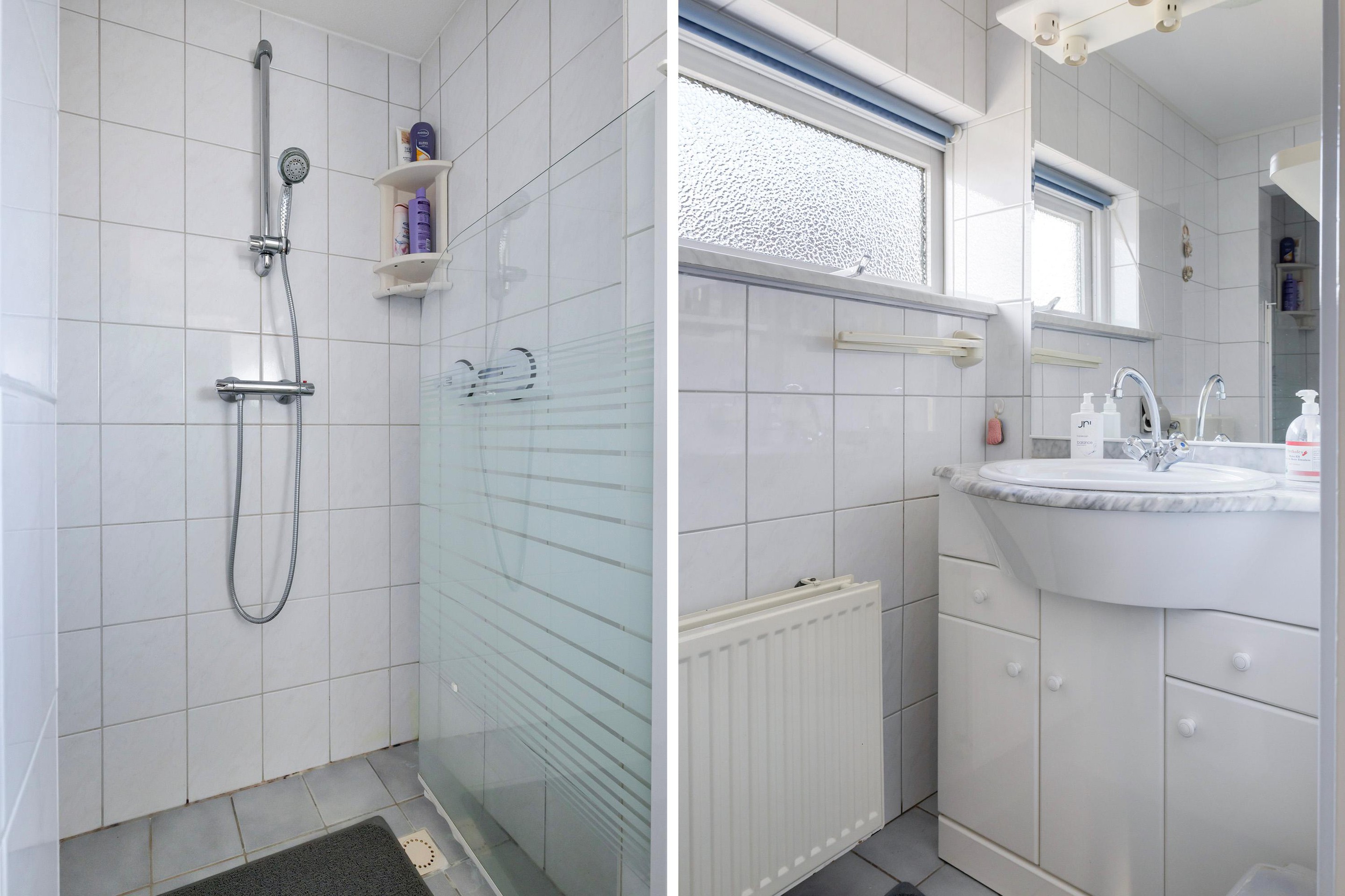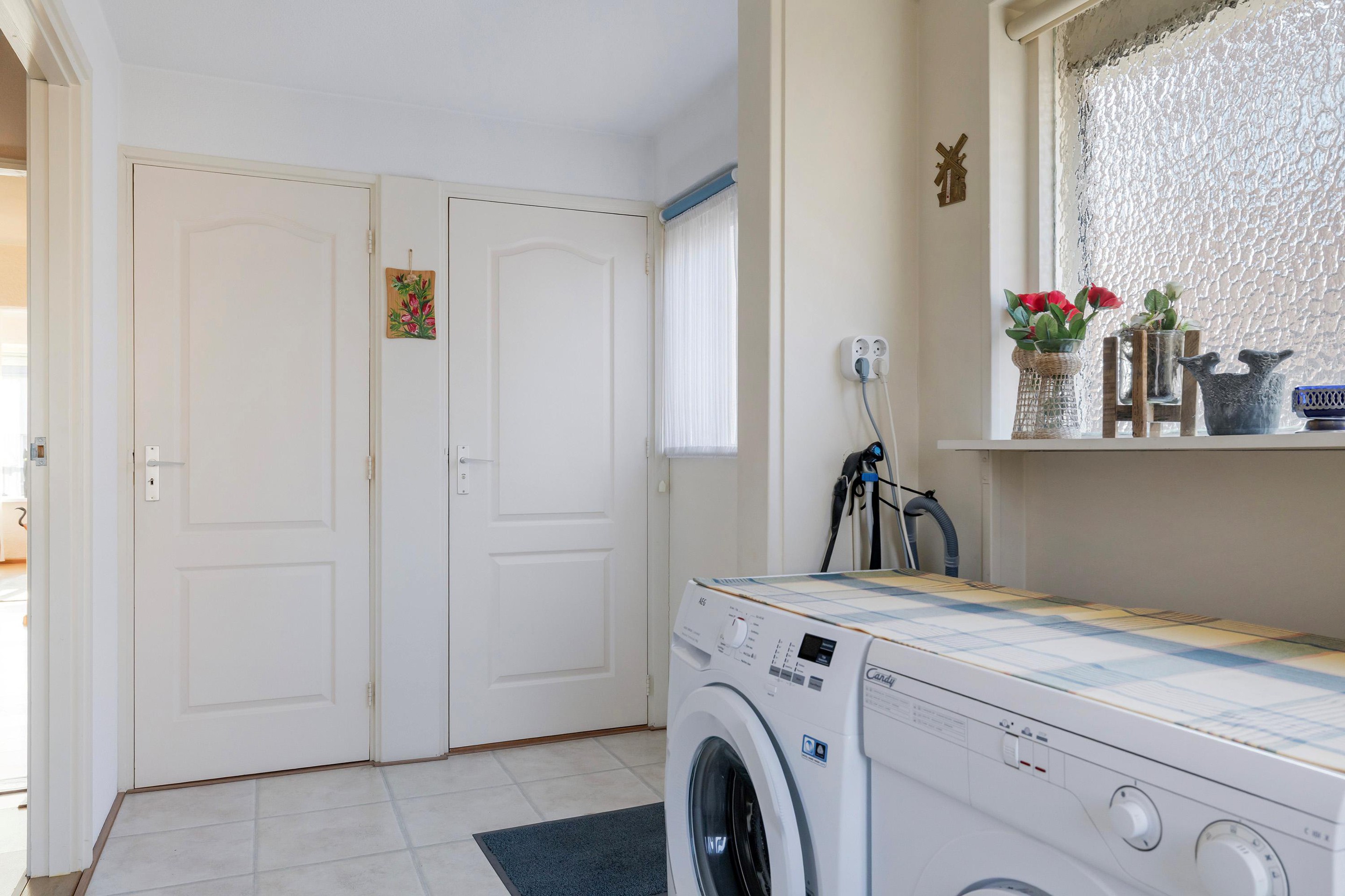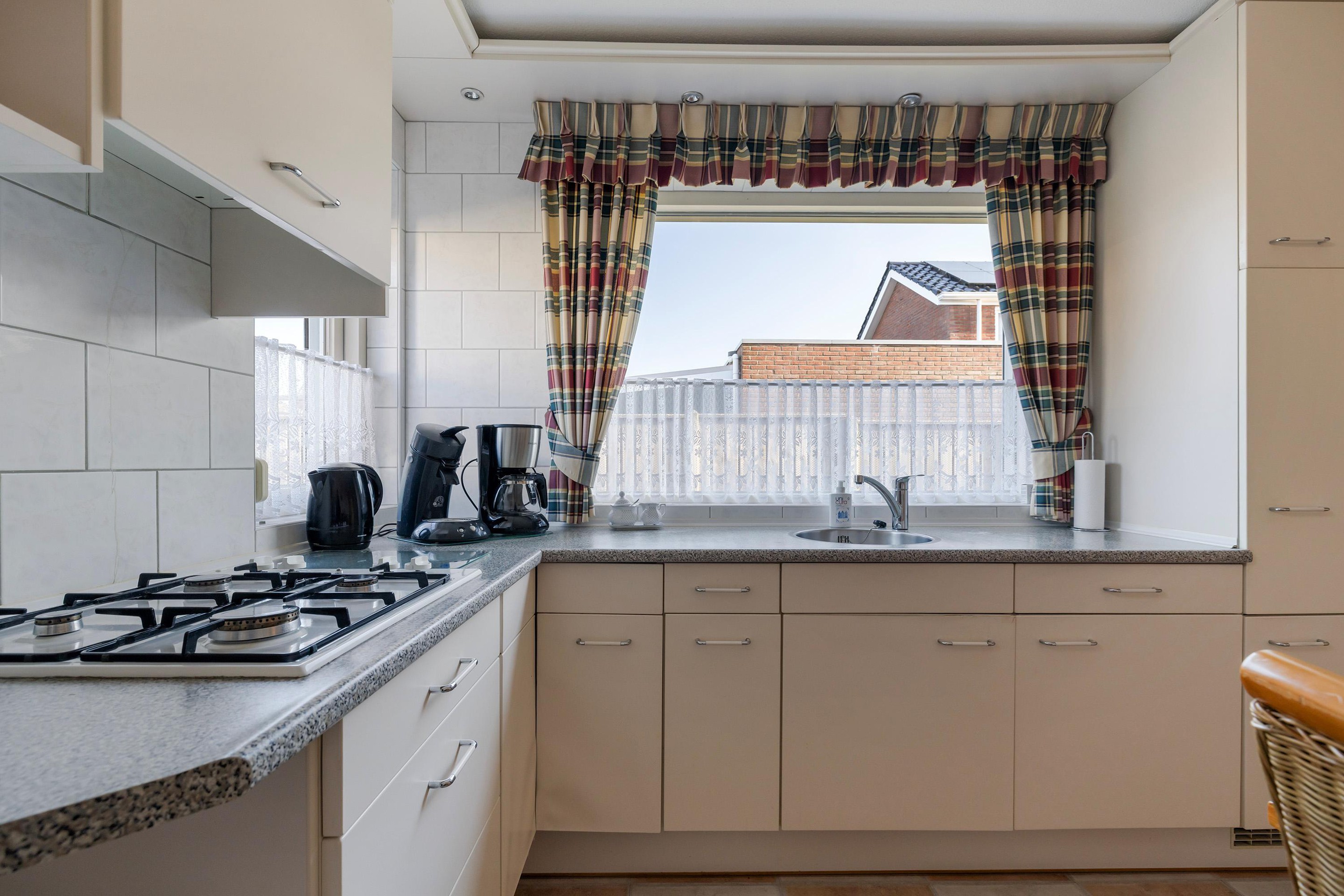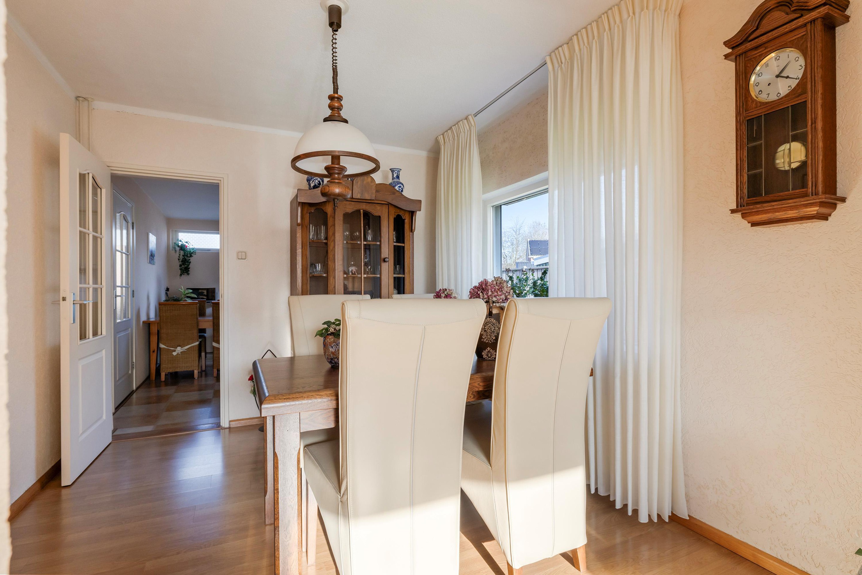 Hal met toilet en trapopgang, lichte woonkamer en eetkamer. De praktische keuken en de bijkeuken met cv-opstelling maken het geheel compleet.