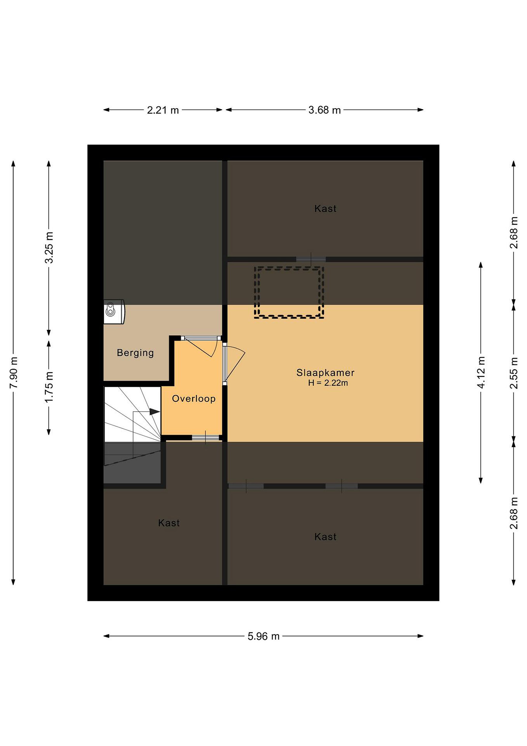 Tweede verdieping Via een vaste trap bereik je de tweede verdieping met de vierde slaapkamer – ideaal als extra slaapkamer, werkruimte of hobbykamer. Hier bevindt zich tevens de opstelling van de cv-ketel (2014).