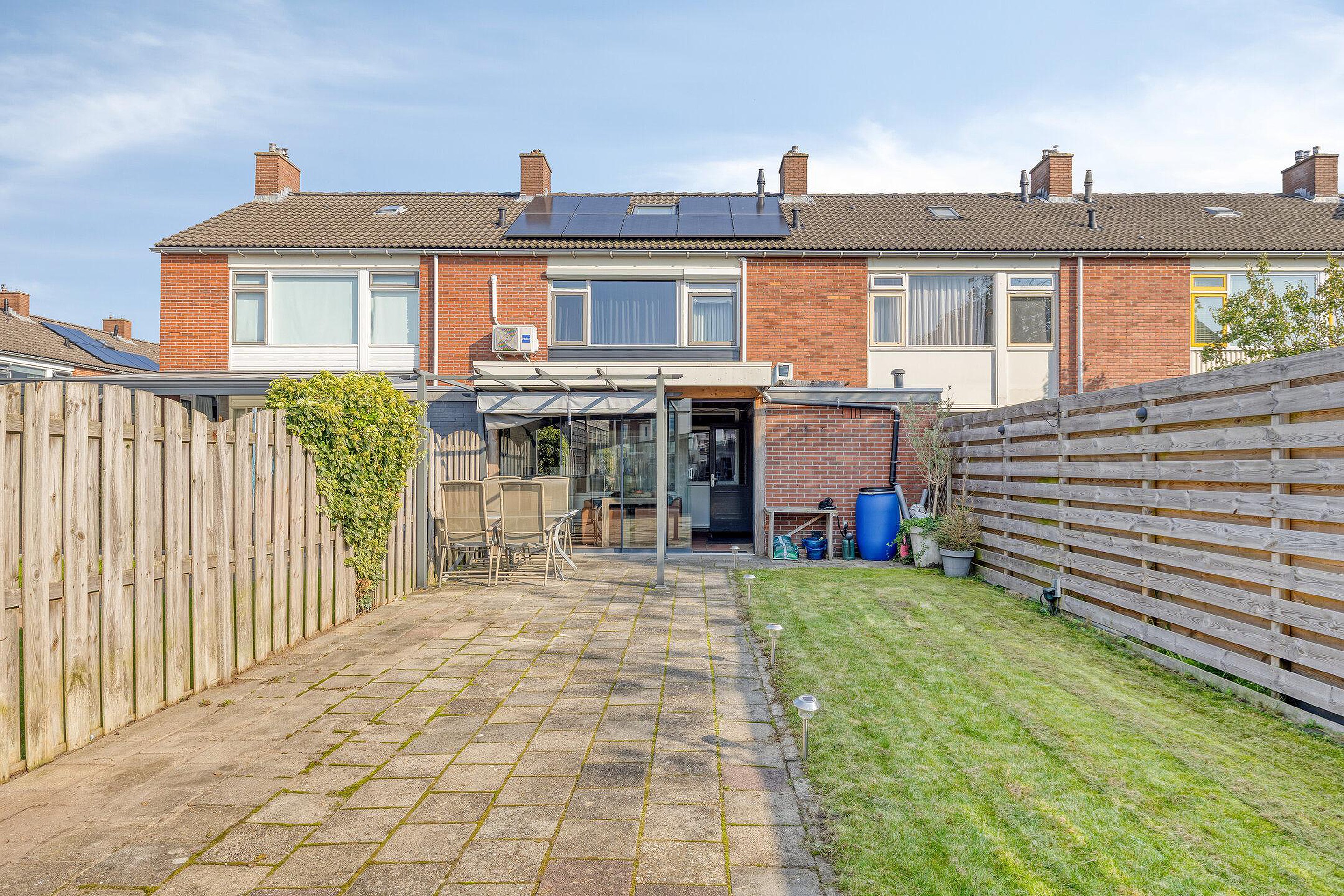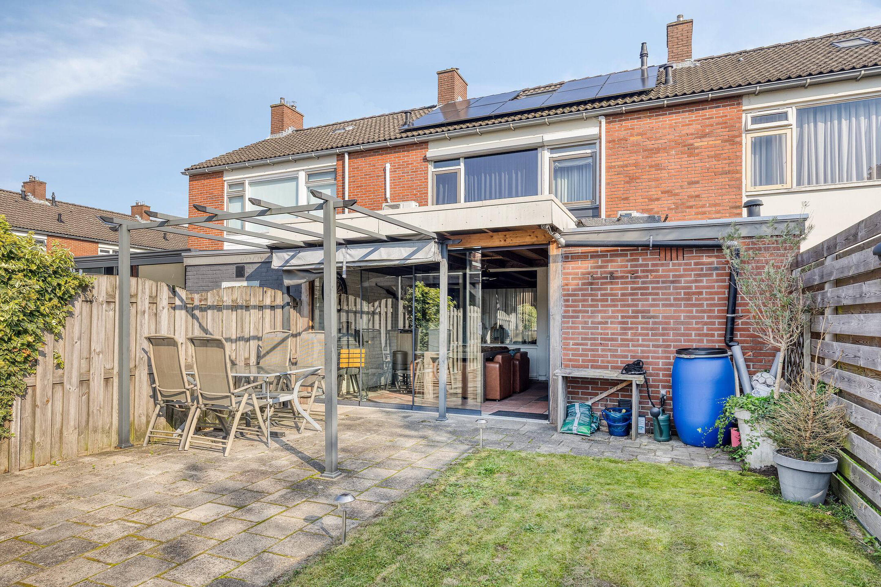 Op een perceel van 198 m2 heb je lekker veel ruimte rondom het huis, met een fijne achtertuin. Dankzij de serre heb je zelfs bij minder mooi weer altijd een plekje ‘buiten’, zonder nat te worden. En ja, de tuin ligt gunstig zodat je eigenlijk het hele jaar door wel ergens een zonnestraal vindt.