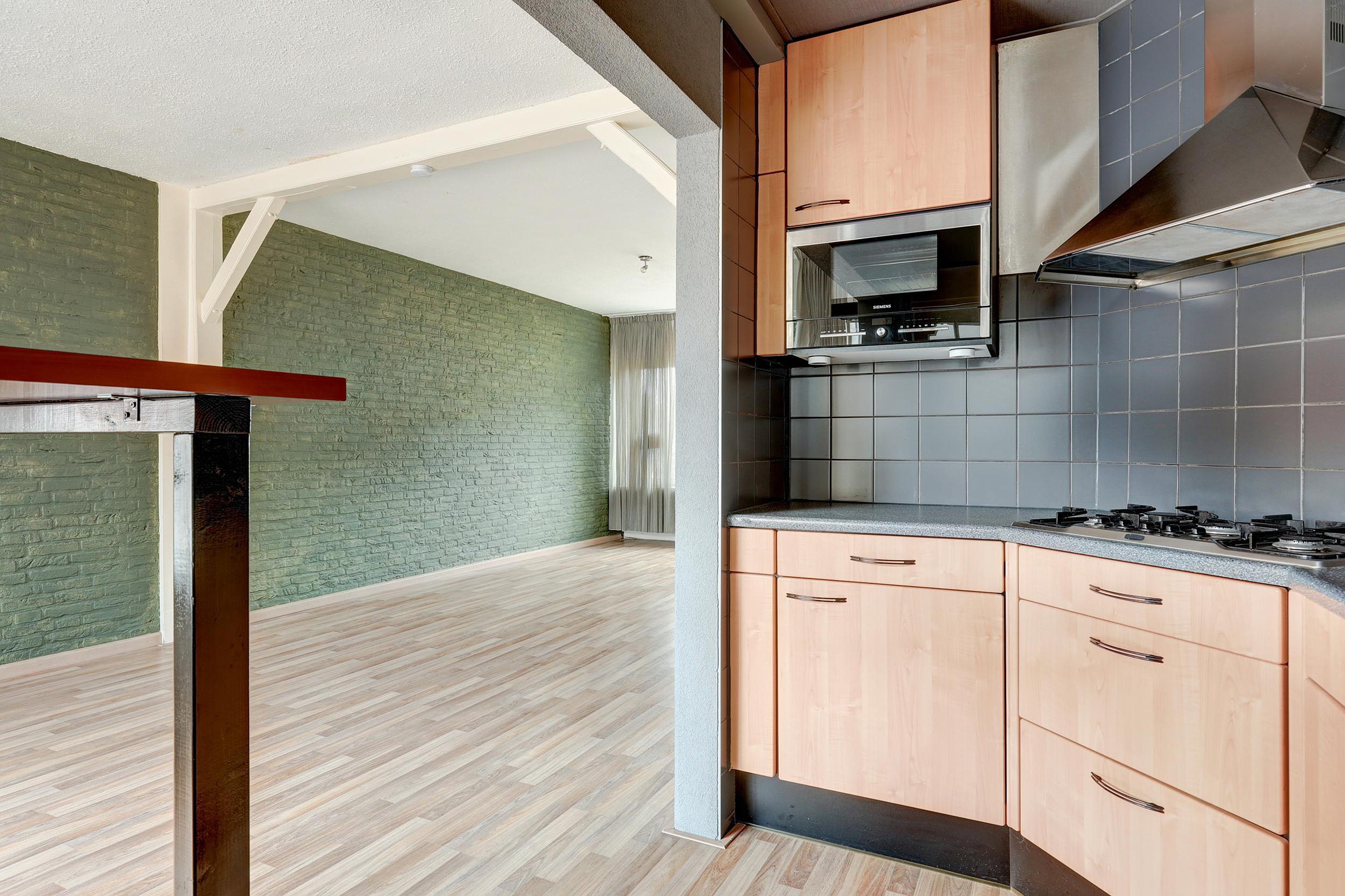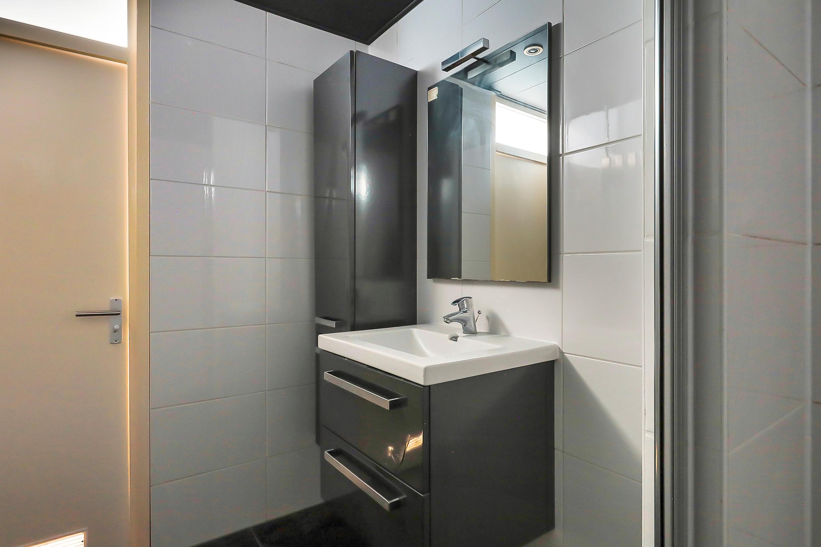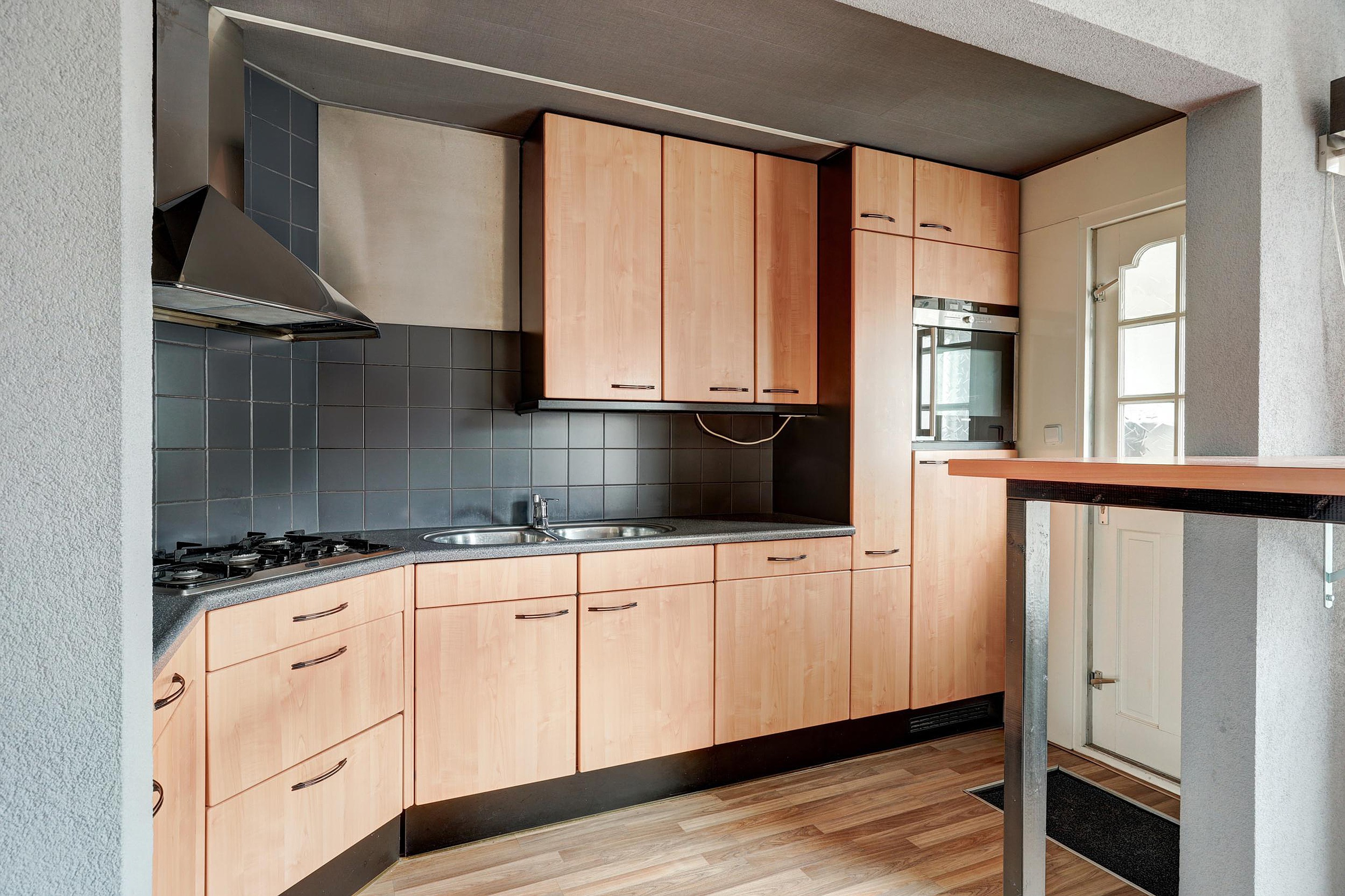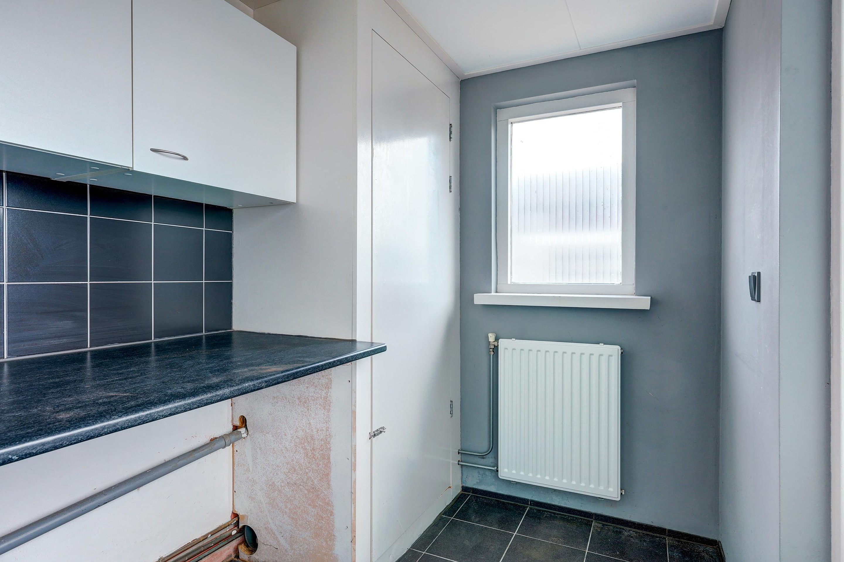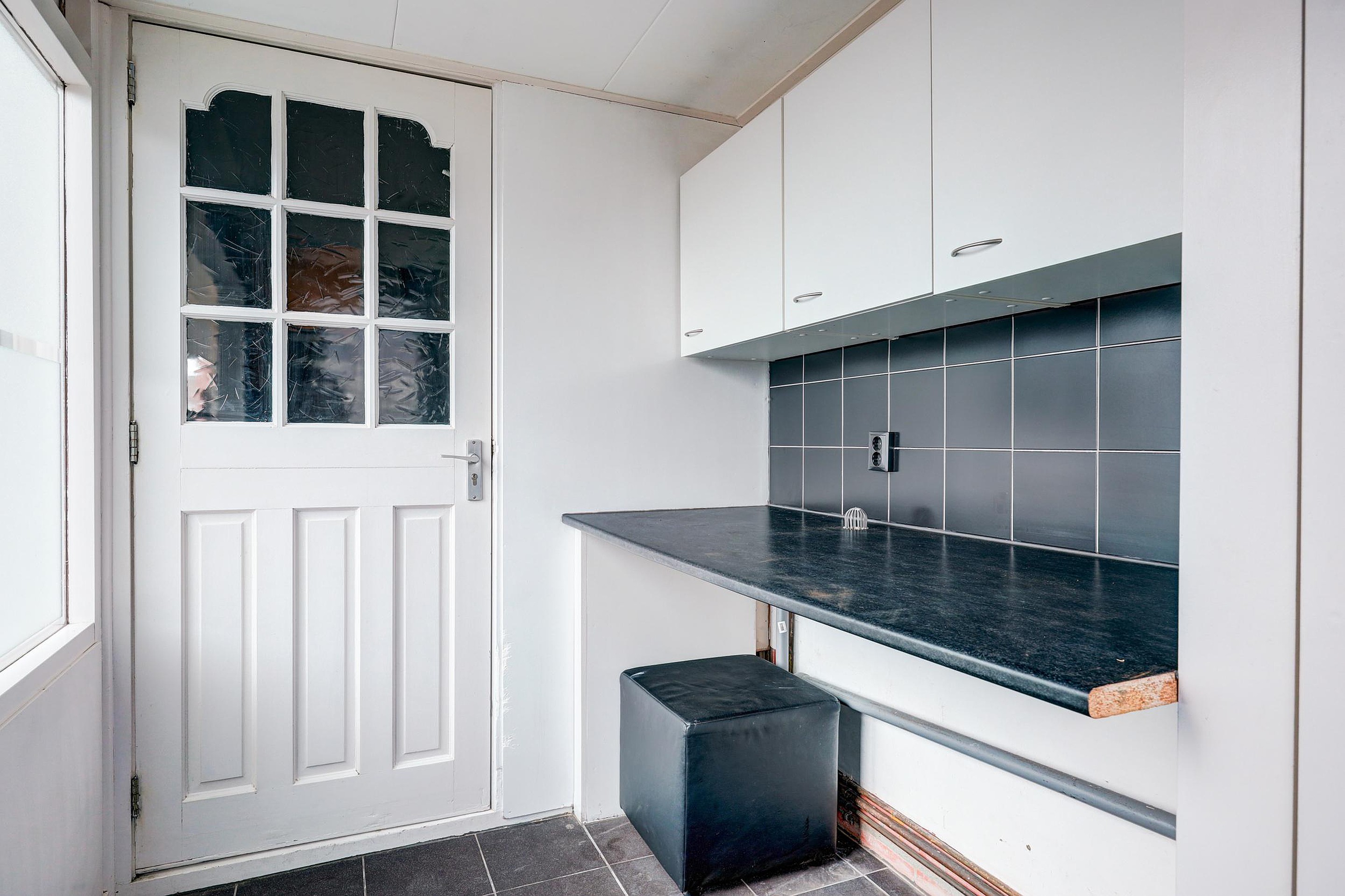Bij binnenkomst komt u in de hal met meterkast en een modern toilet met fontein. De lichte doorzonwoonkamer valt direct op door de grote raampartijen aan zowel de voor- als achterzijde, die zorgen voor een prettige lichtinval. De open keuken sluit hier mooi op aan en is voorzien van een vaatwasser, magnetron, oven en afzuigkap. Aangrenzend bevindt zich de praktische bijkeuken met witgoedaansluiting en opstelling van de cv-ketel.