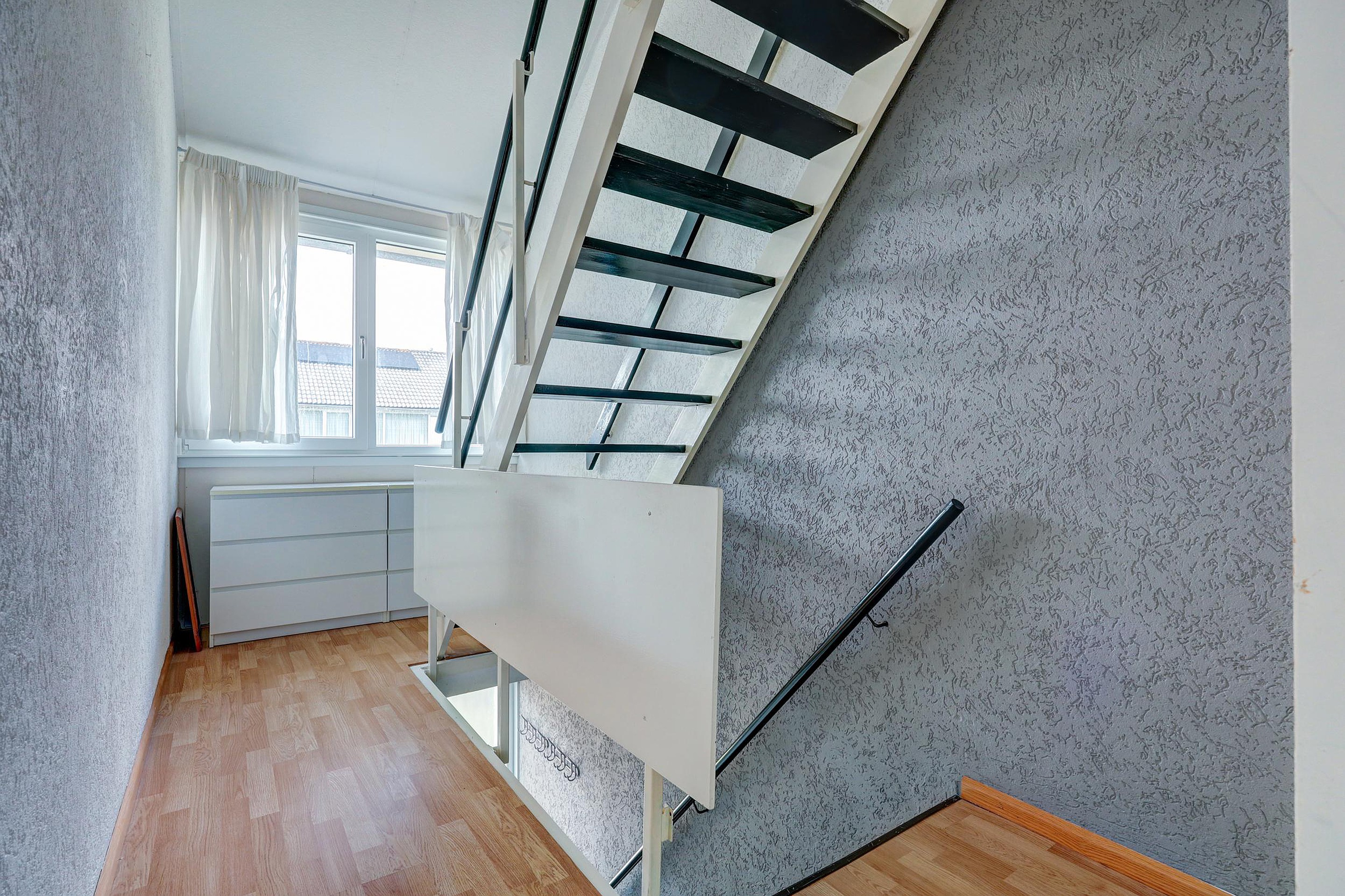 De tweede verdieping biedt via de overloop toegang tot de vierde slaapkamer, waarmee deze woning maar liefst vier slaapkamers telt en volop ruimte biedt voor werken aan huis, hobby’s of een groter gezin.