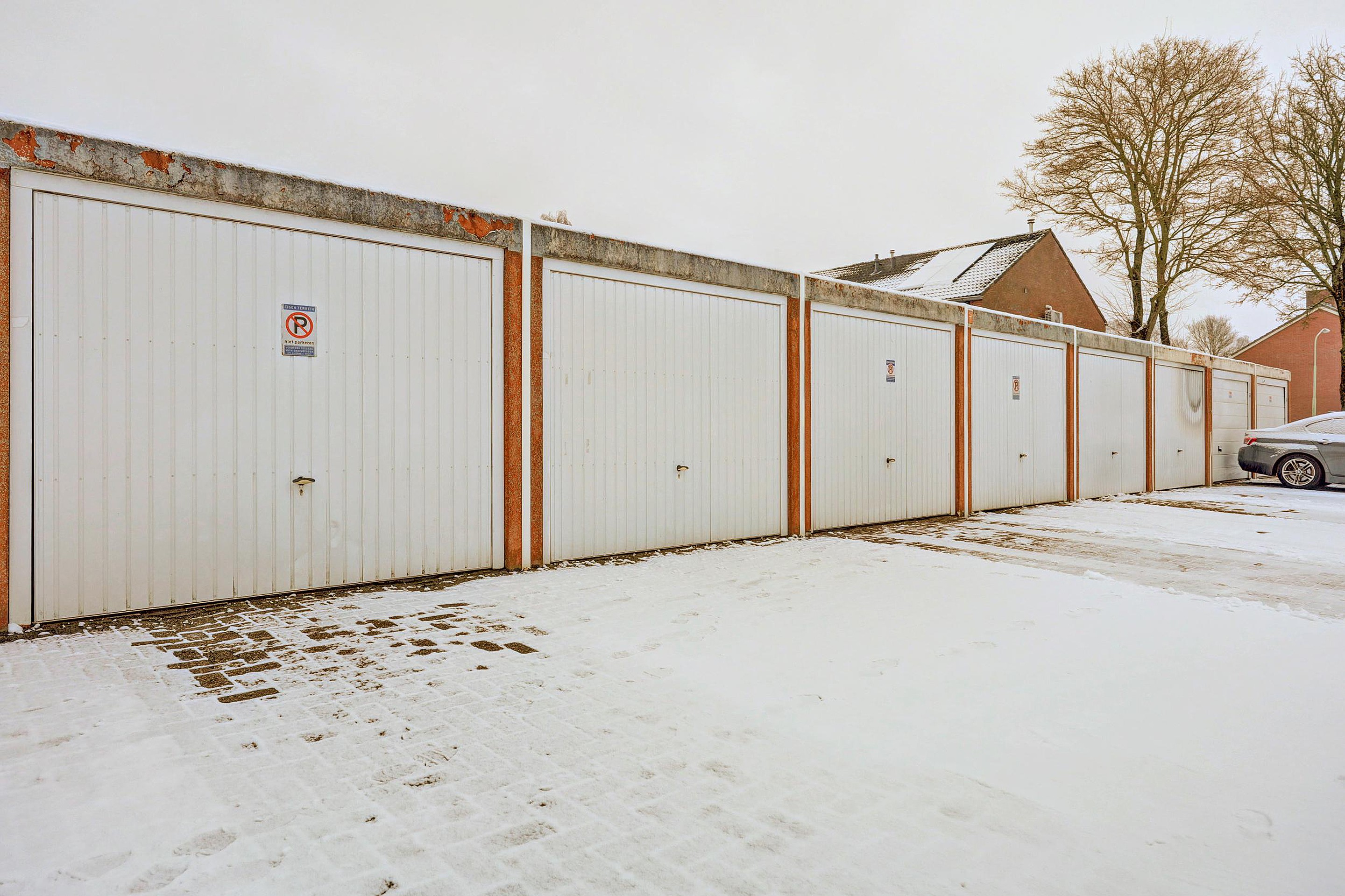 -Stenen garage, voorzien van elektra en kanteldeur;