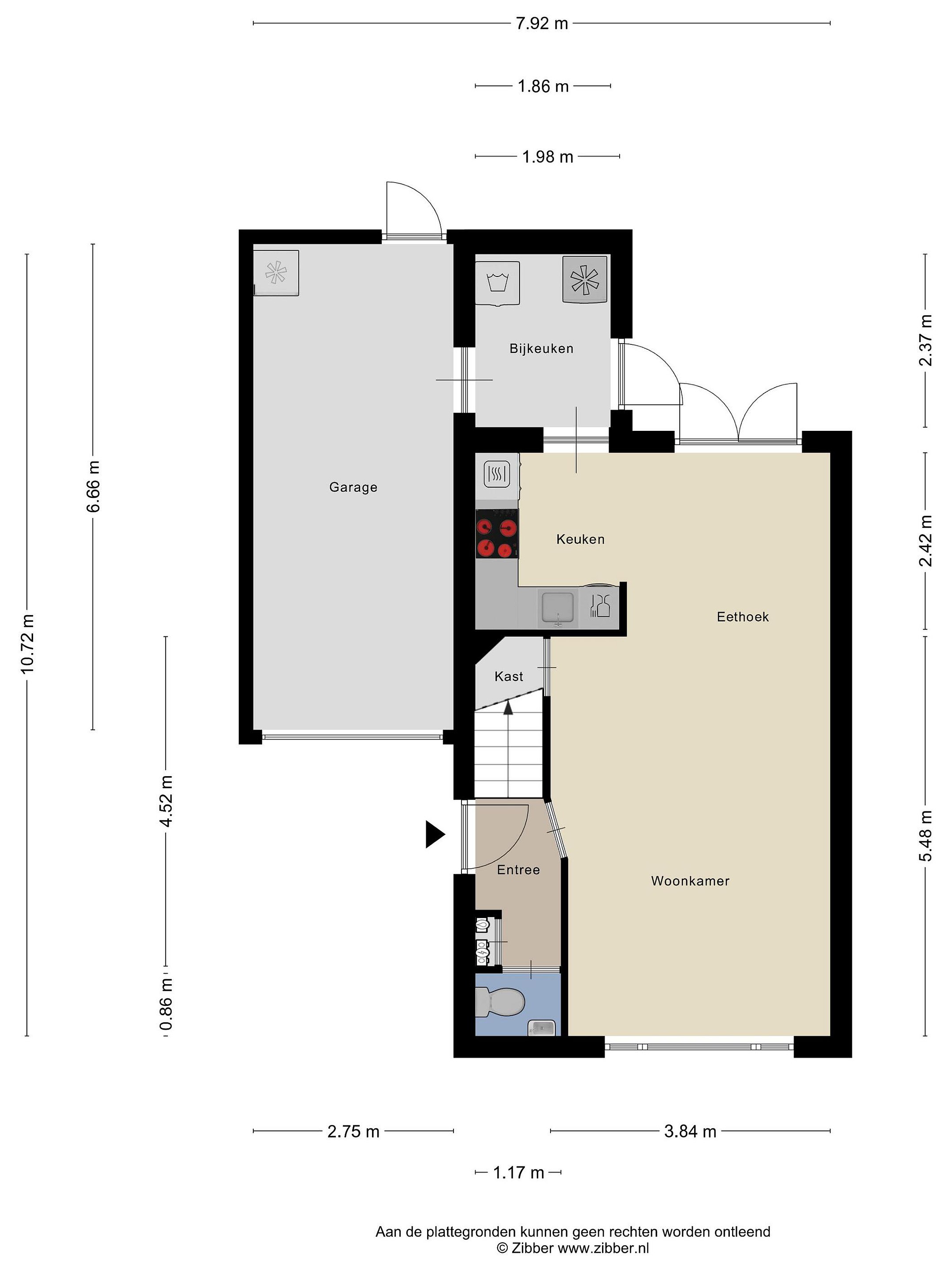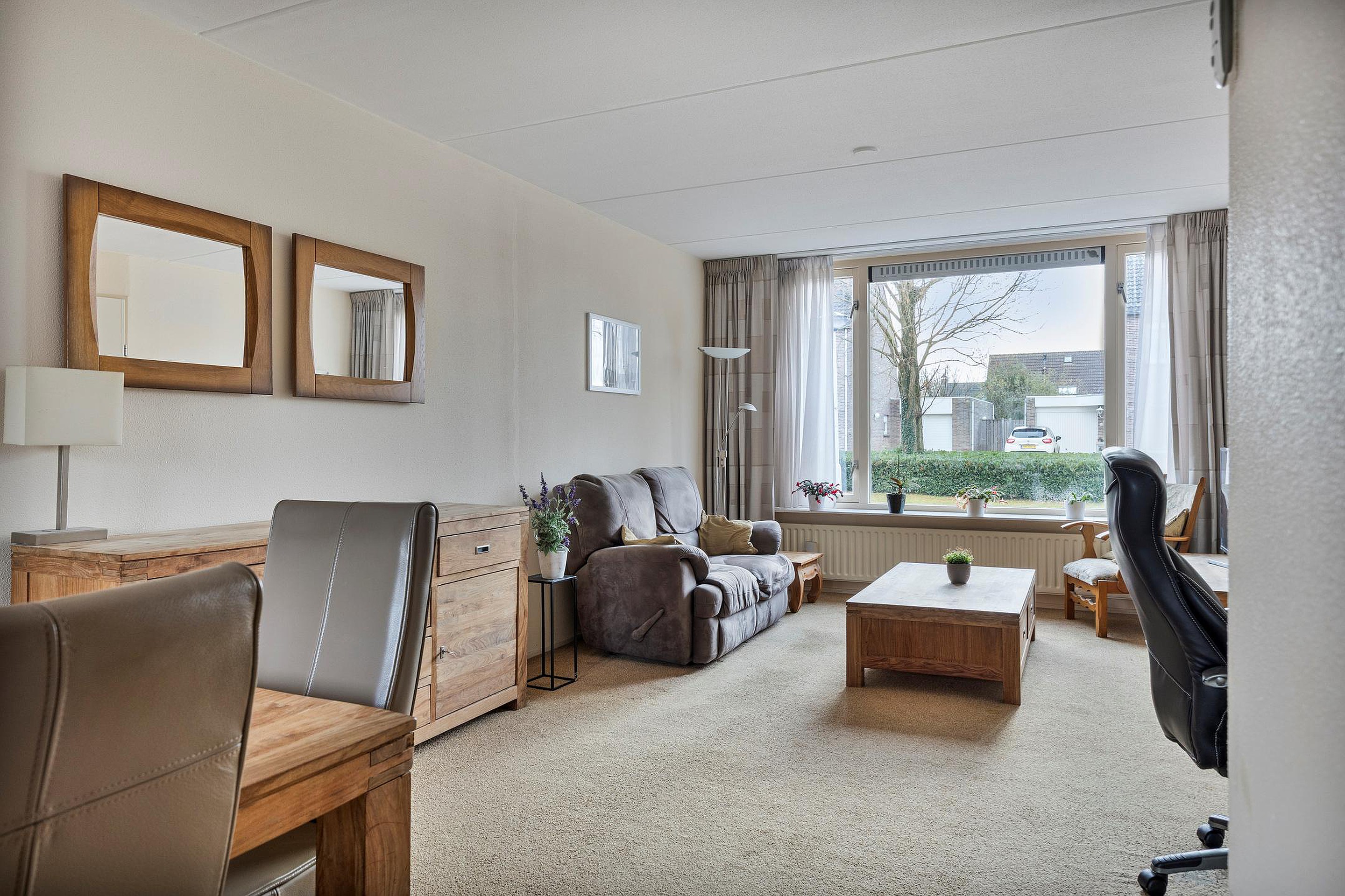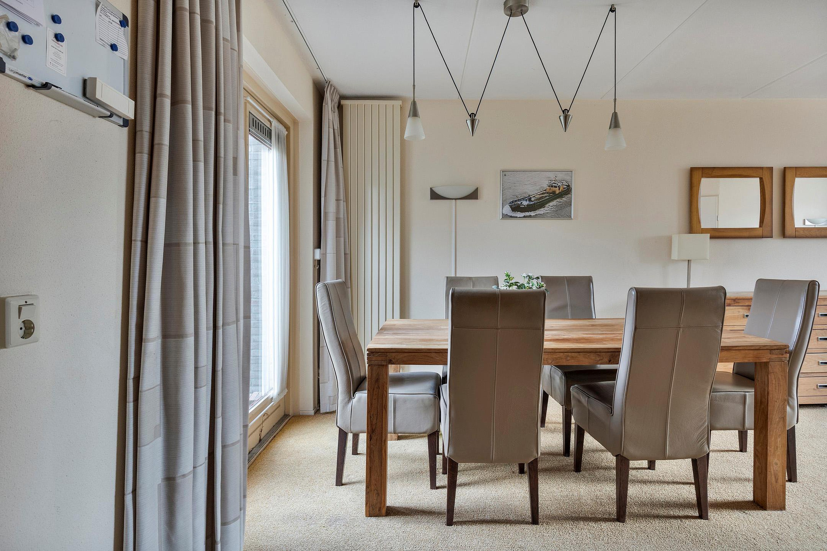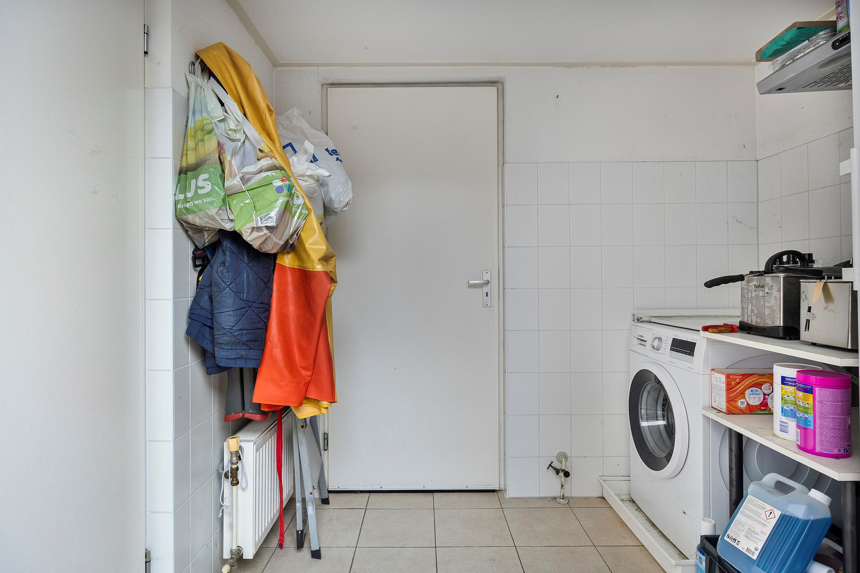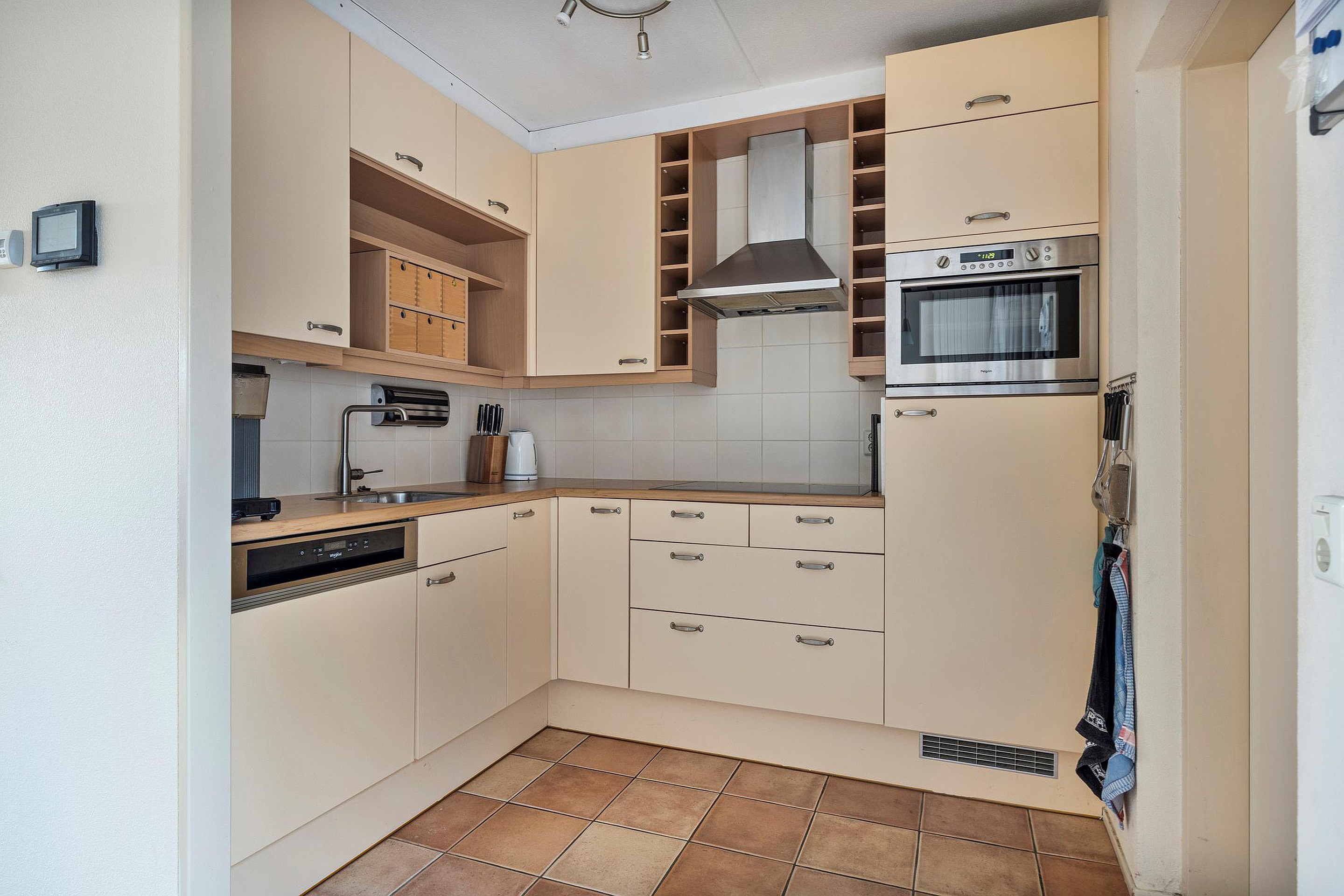 Bij binnenkomst tref je een lichte woonkamer met prettig uitzicht op de groene omgeving. De moderne keuken is compleet uitgerust met een vaatwasser, inductiekookplaat, afzuigkap, koelkast en combi-oven. Aansluitend bevindt zich de praktische bijkeuken, voorzien van een wasmachine-aansluiting en directe toegang tot de inpandige garage.